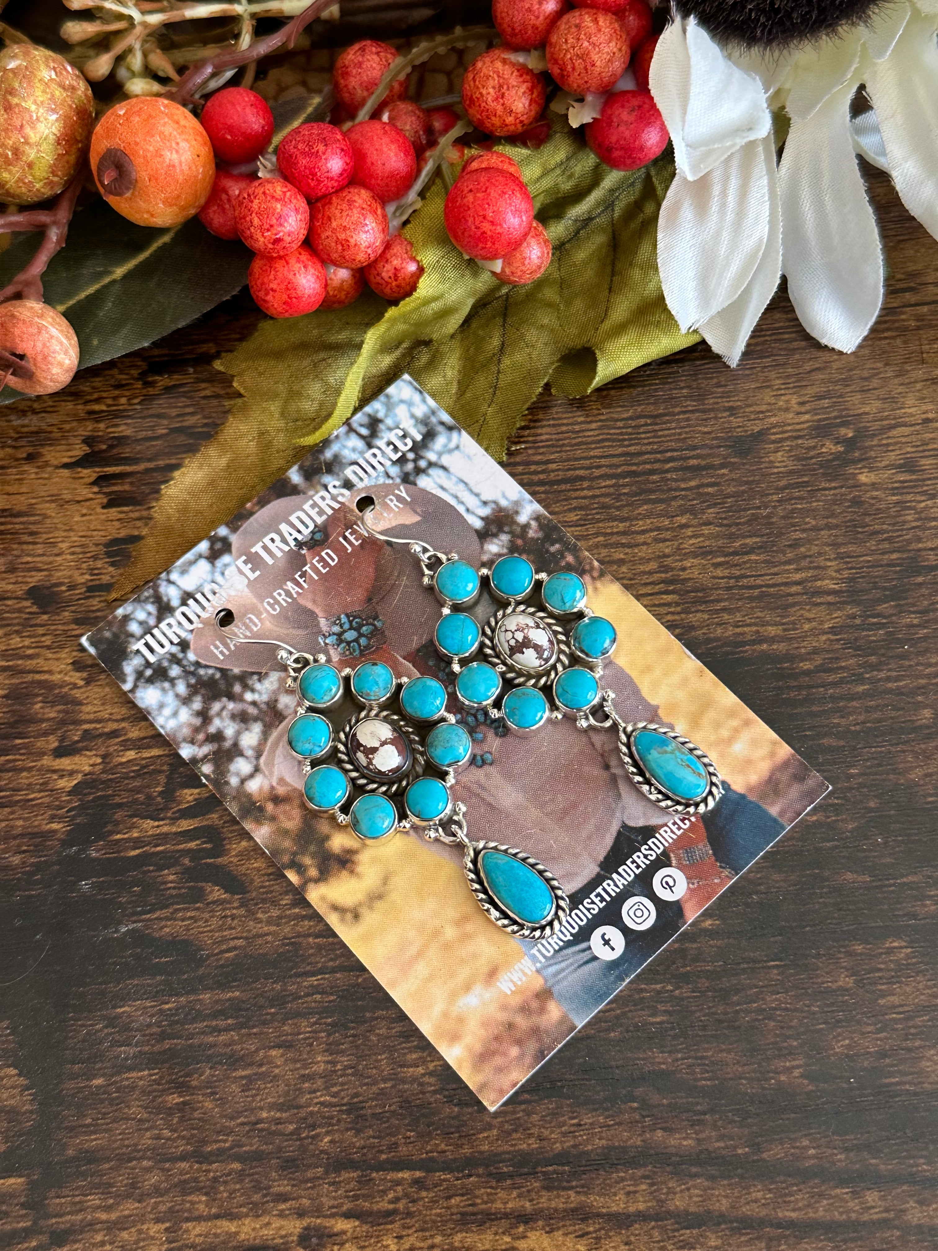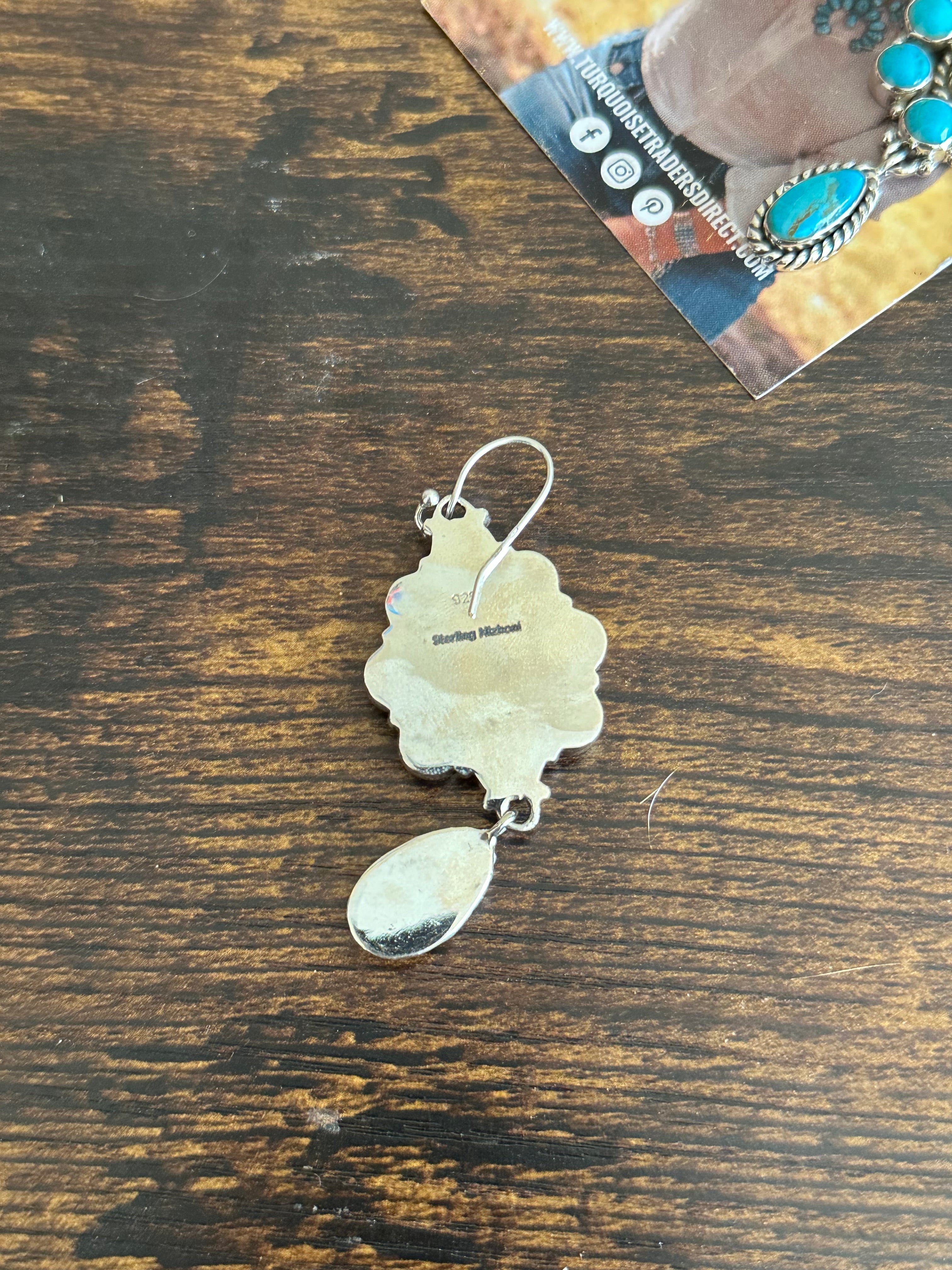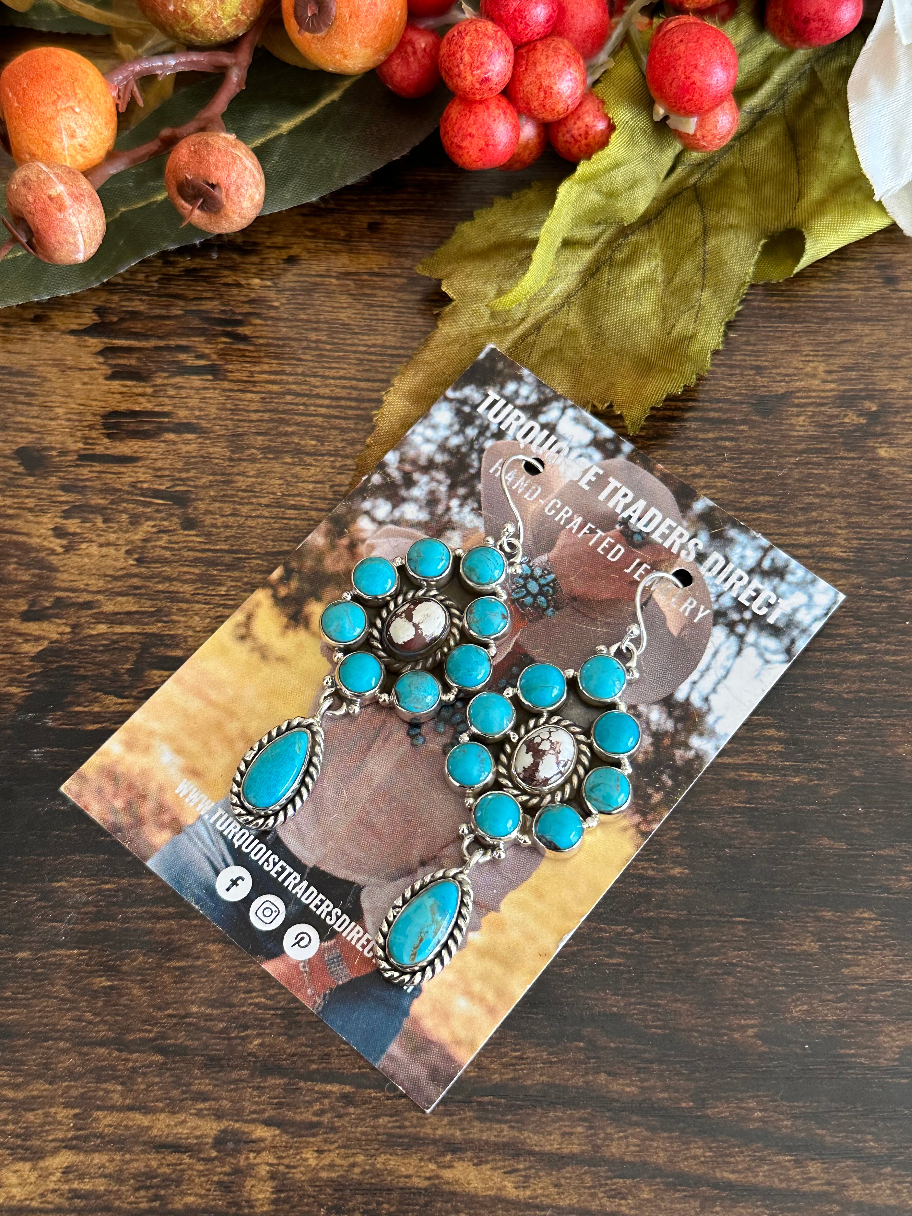 Southwest Handmade Multi Stone & Sterling Silver Dangle Cluster Earrings