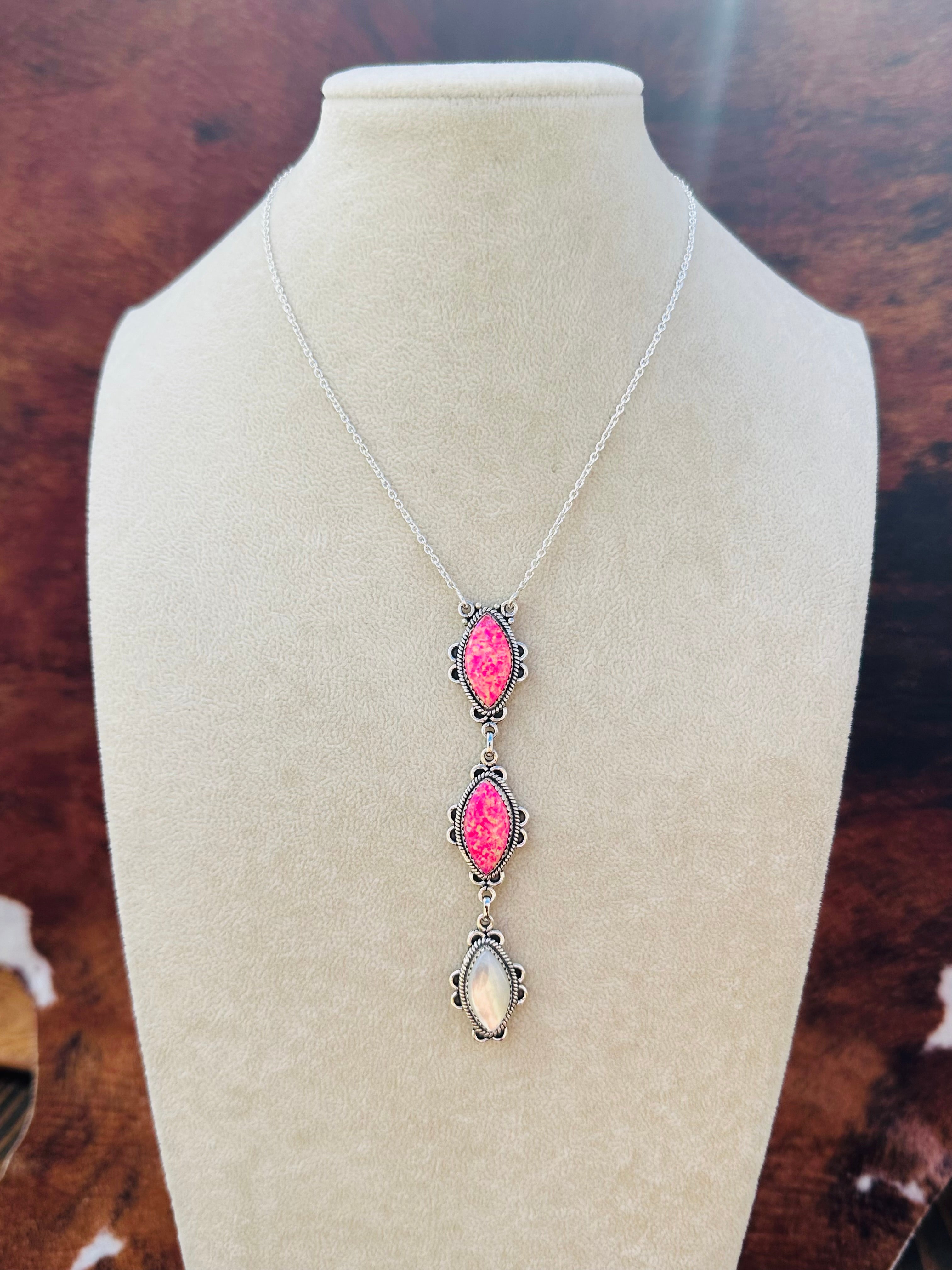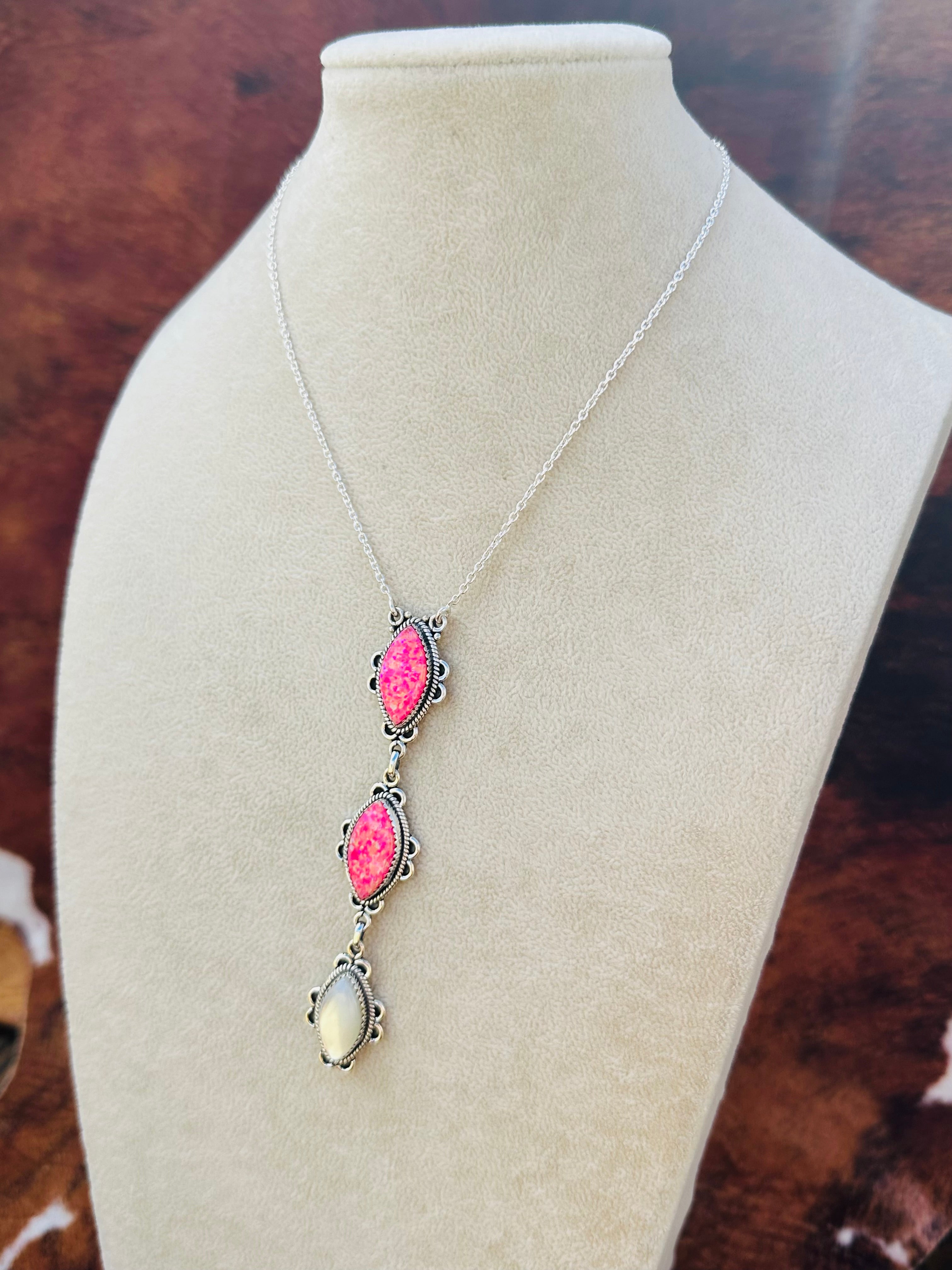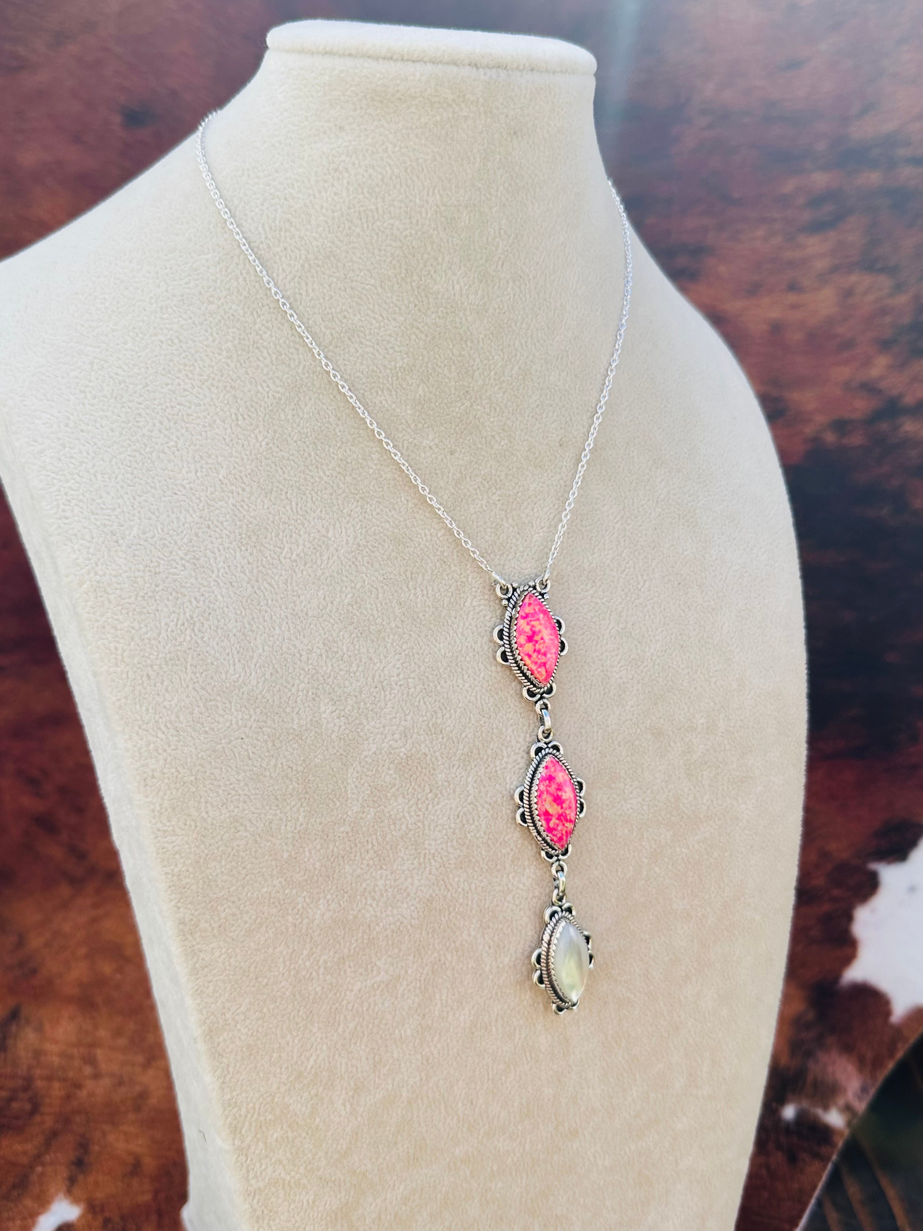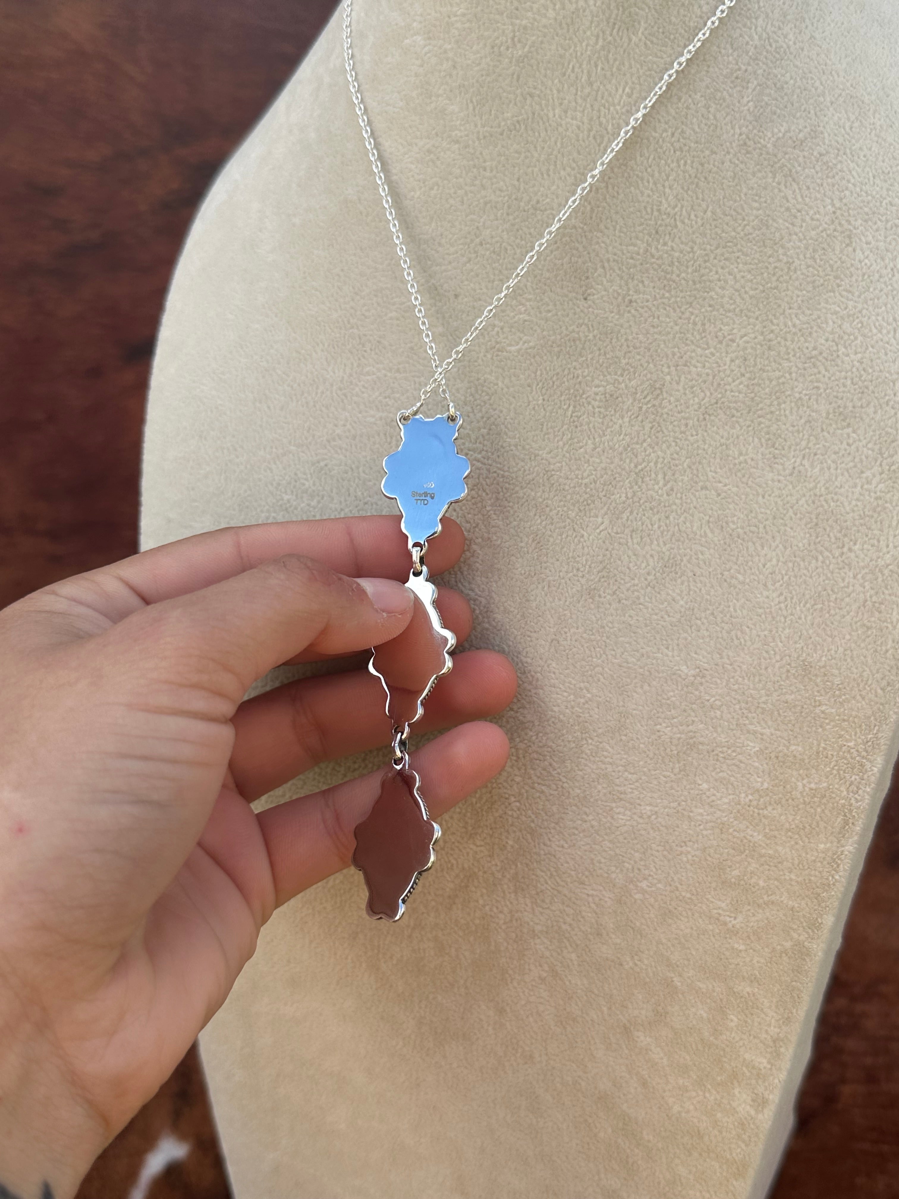Beautiful necklace. Southwest Handmade Multi Stone & Sterling Silver Necklace. It measures 23 inches long with hang while the chain by itself measures 15 inches long but can be adjusted down. Signed by the artist and stamped sterling silver.