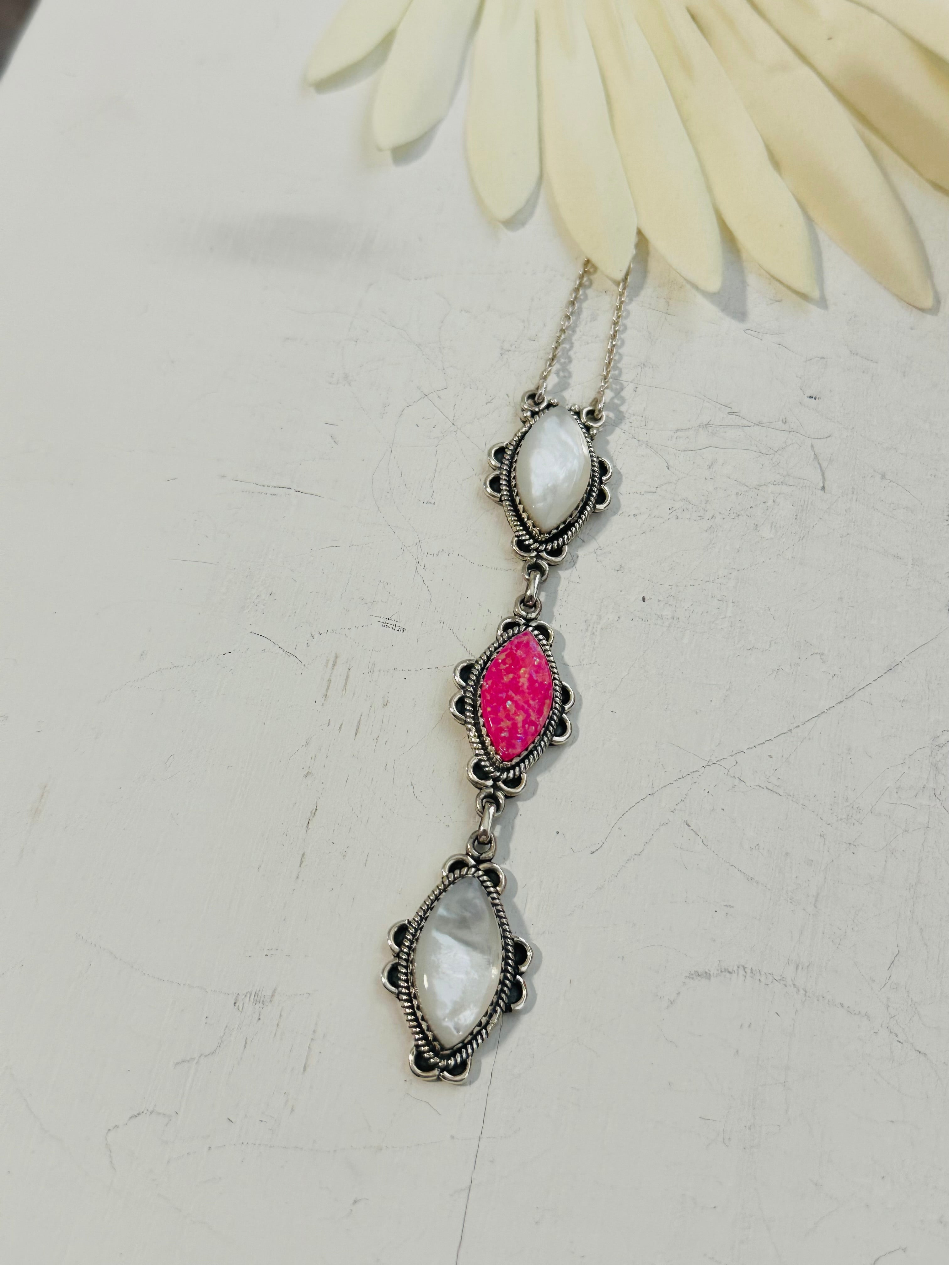 Beautiful necklace. Southwest Handmade Multi Stone & Sterling Silver Necklace. It measures 23 inches long with hang while the chain by itself measures 15 inches long but can be adjusted down. Signed by the artist and stamped sterling silver.
