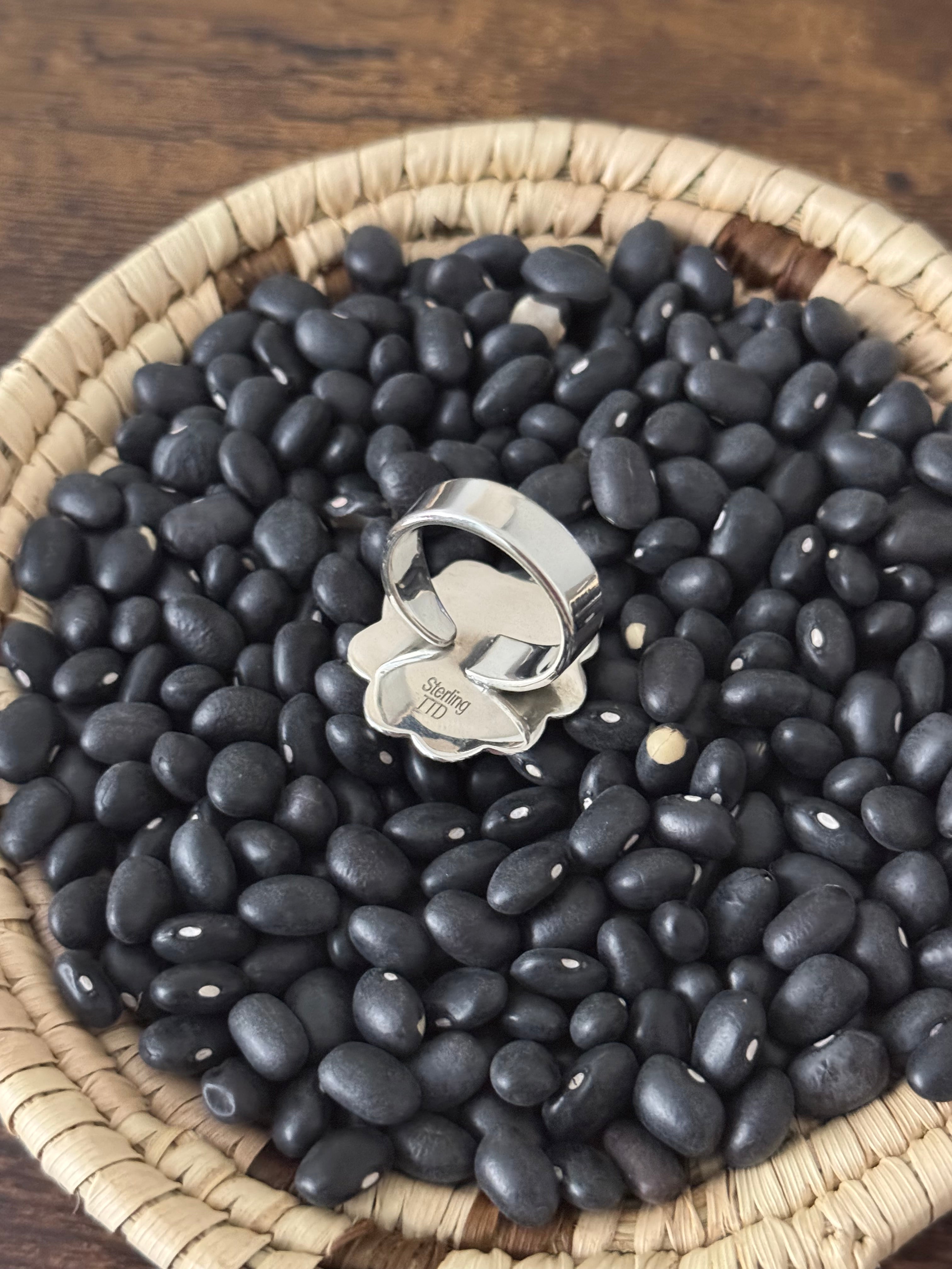 Beautiful ring. Southwest Handmade New Lander Variscite & Sterling Silver Adjustable Ring. It measures 1 1/8 inches long and 1 inch wide. Signed by the artist and stamped sterling silver.
