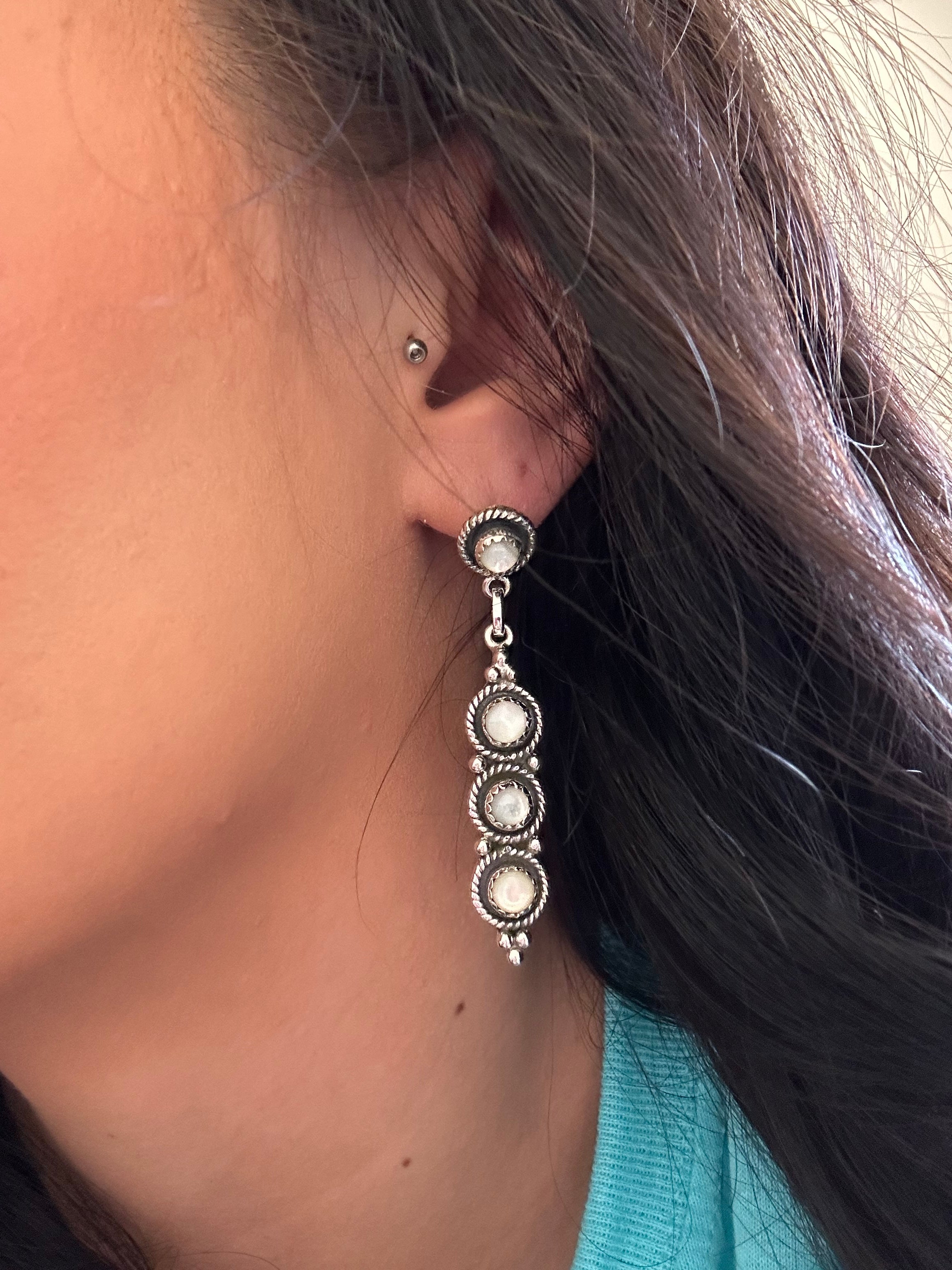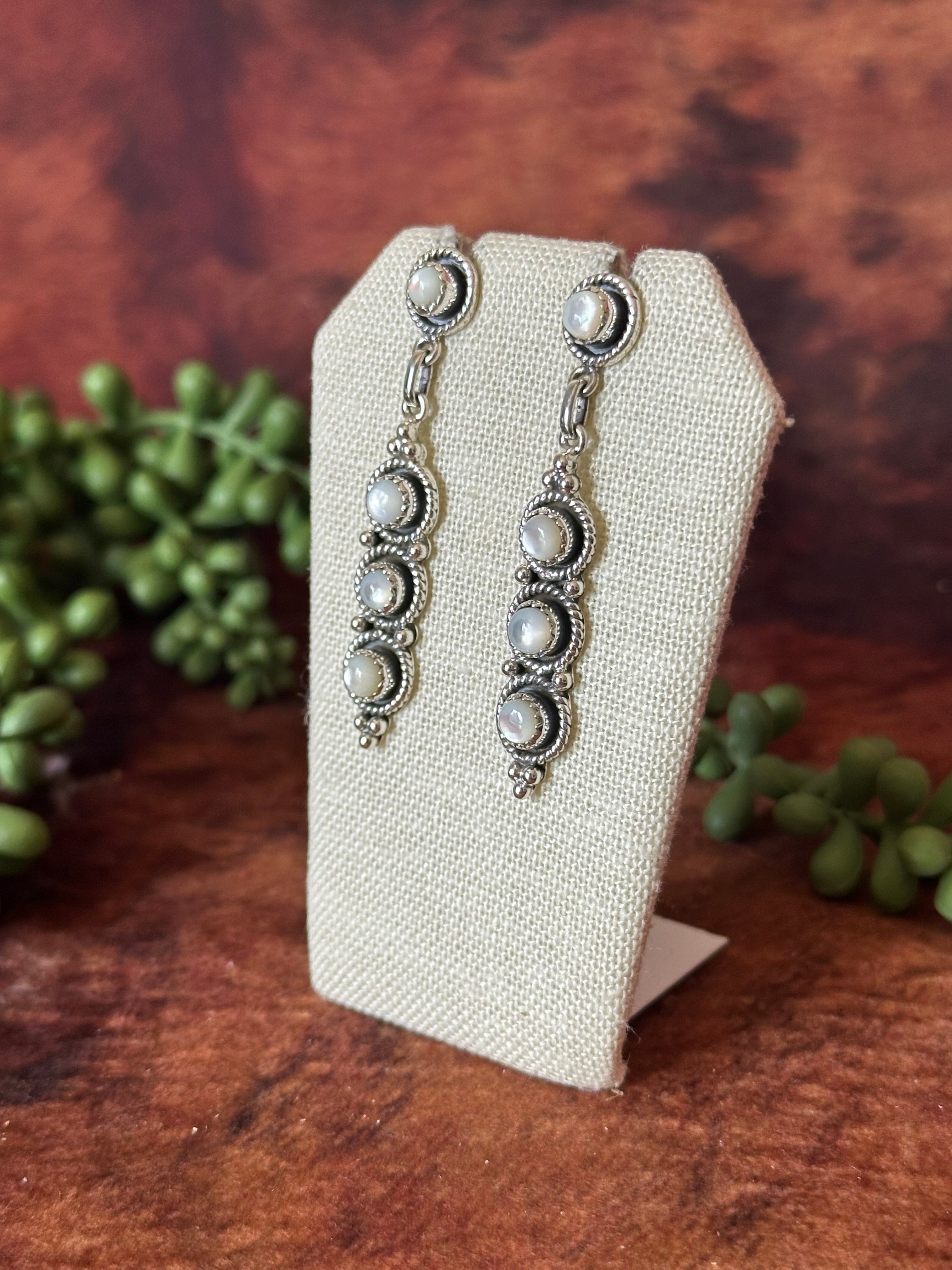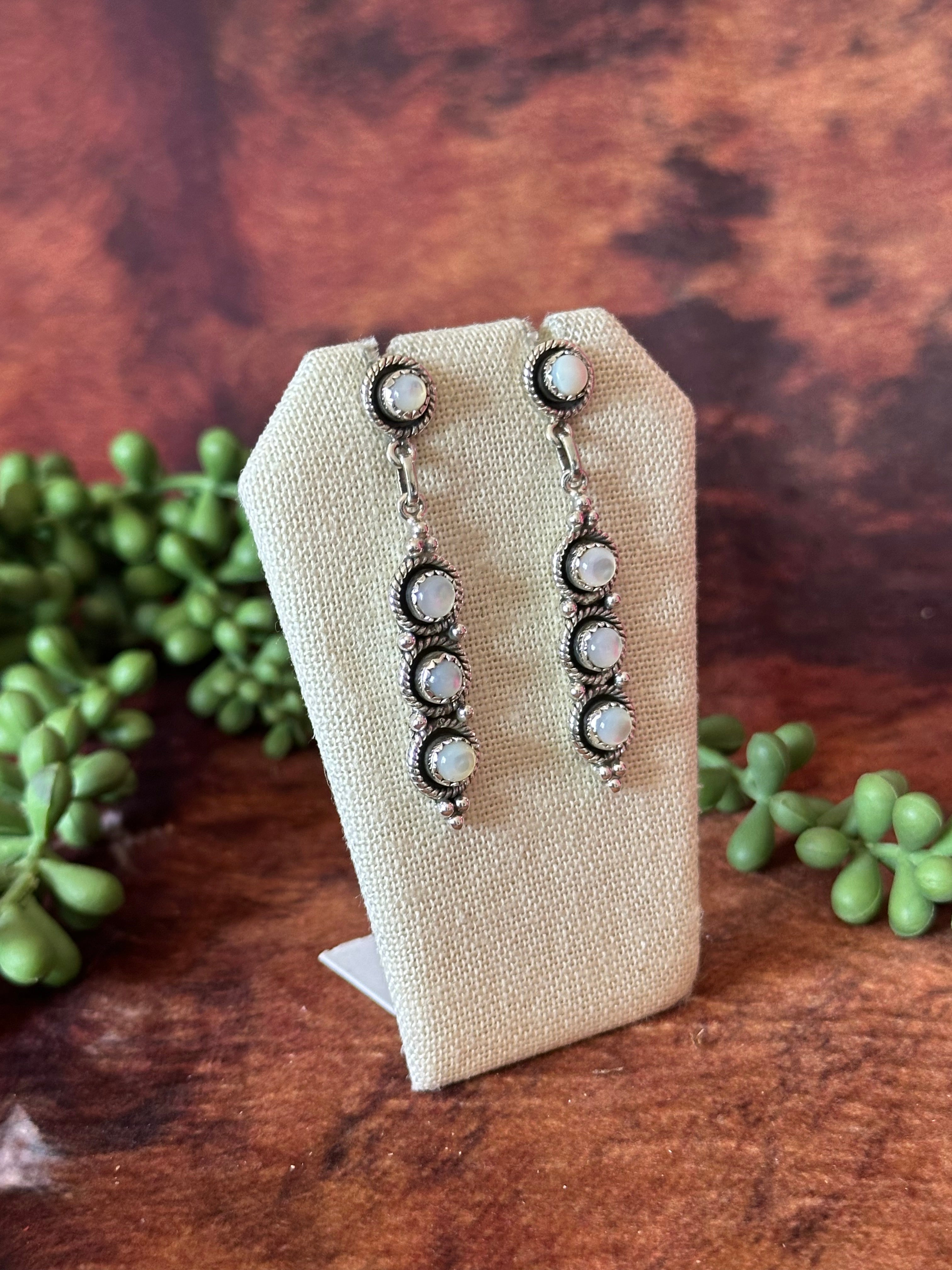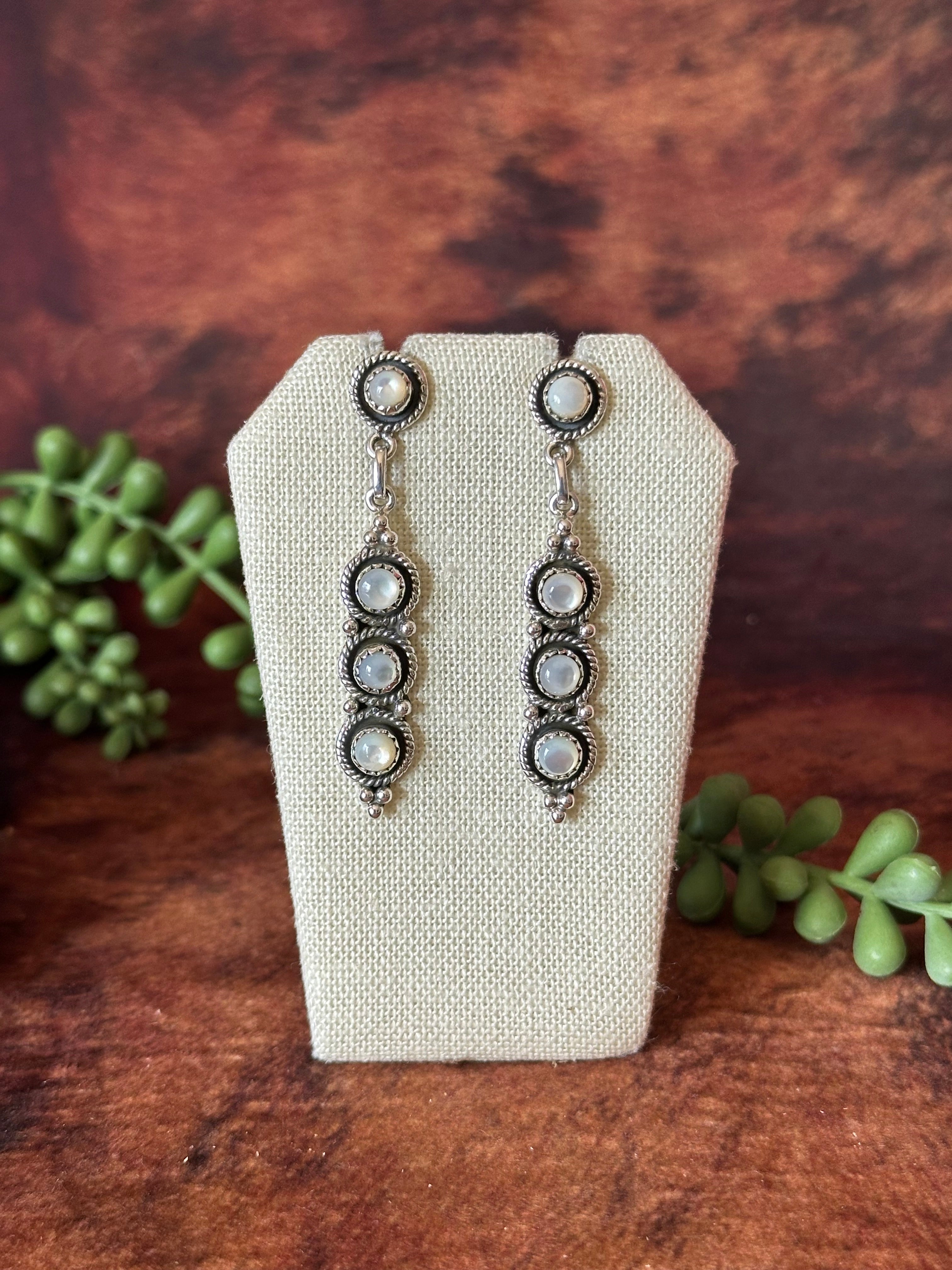 Southwest Handmade Mother of Pearl & Sterling Silver Post Dangle Earrings