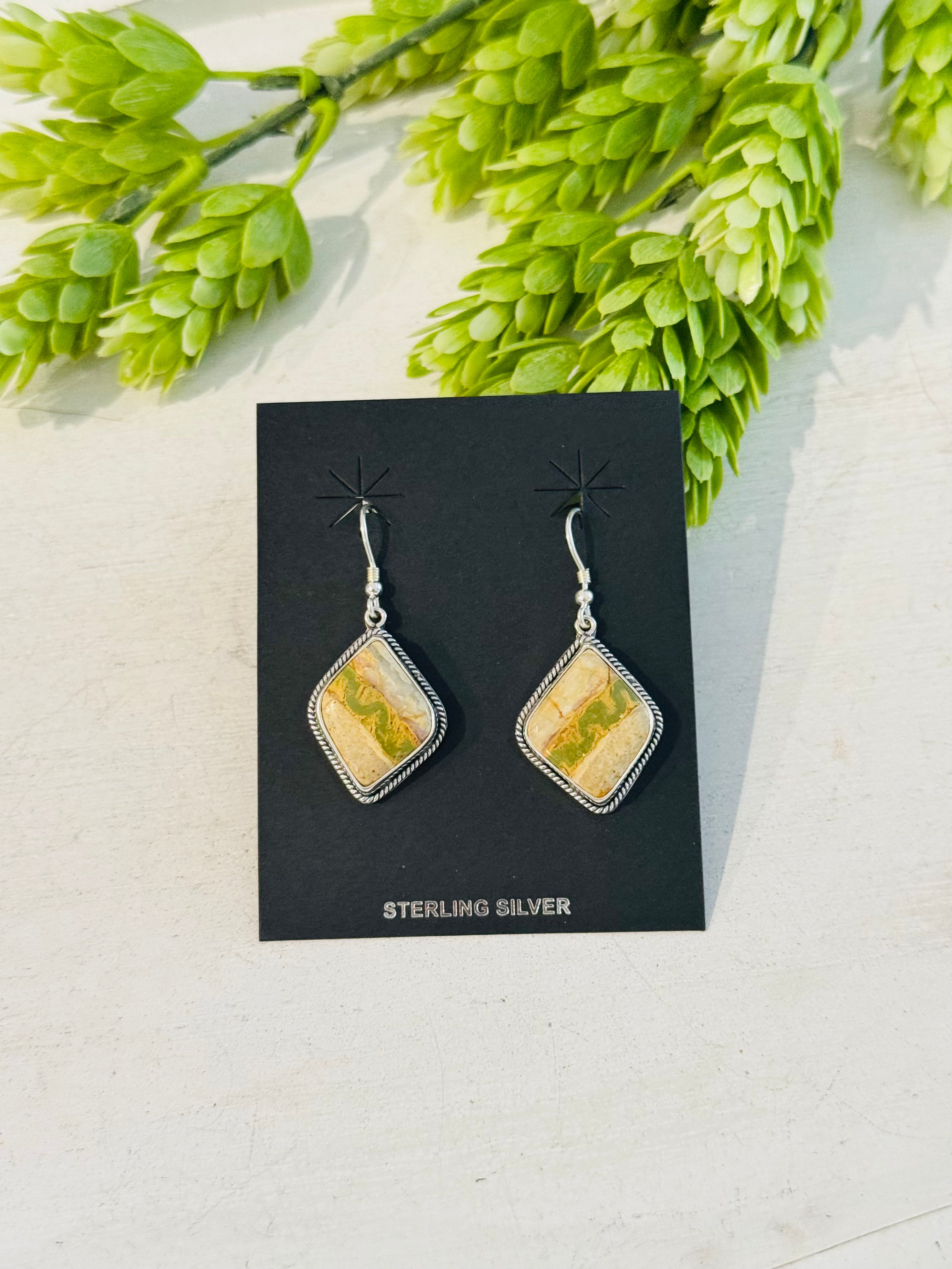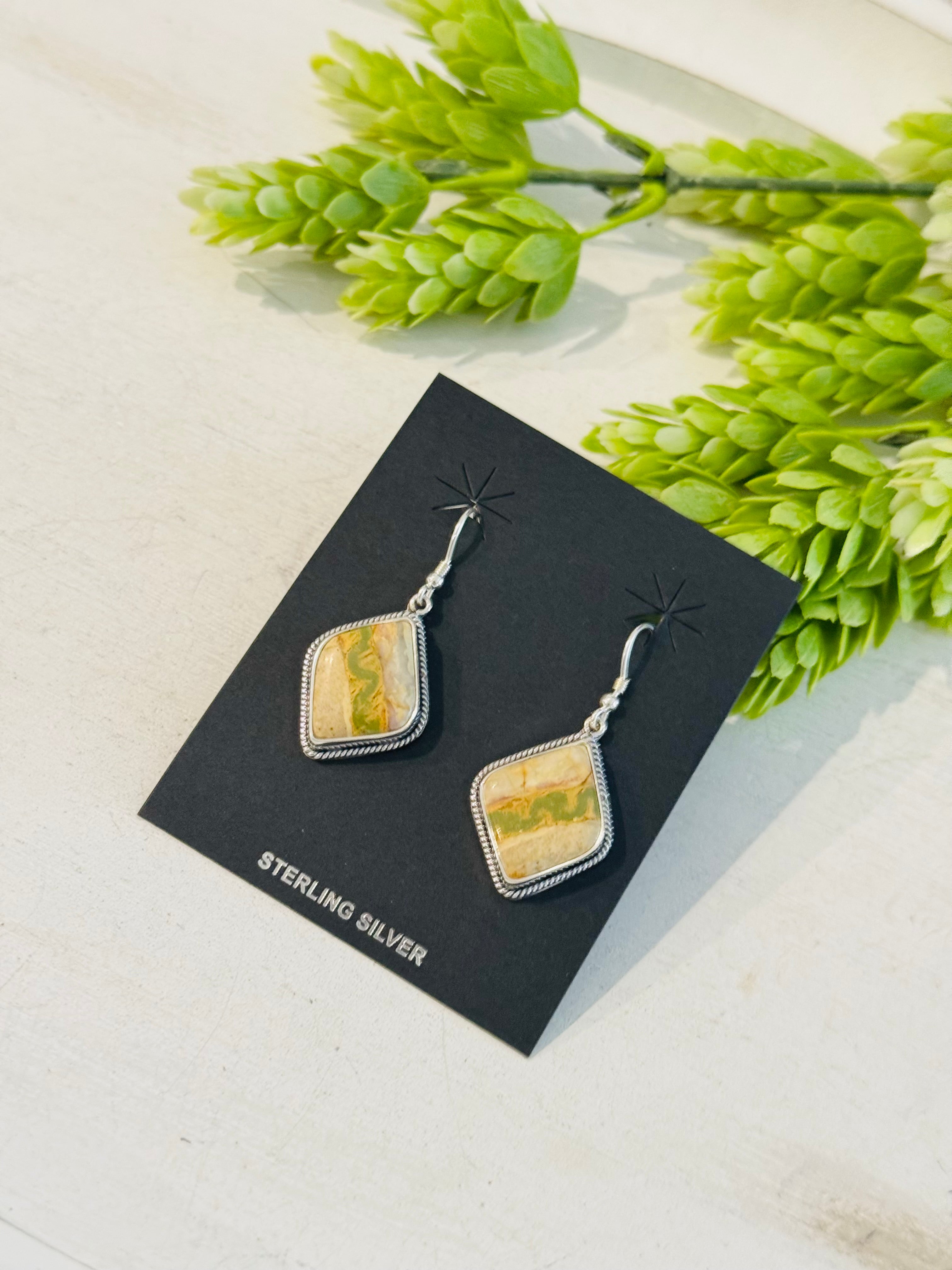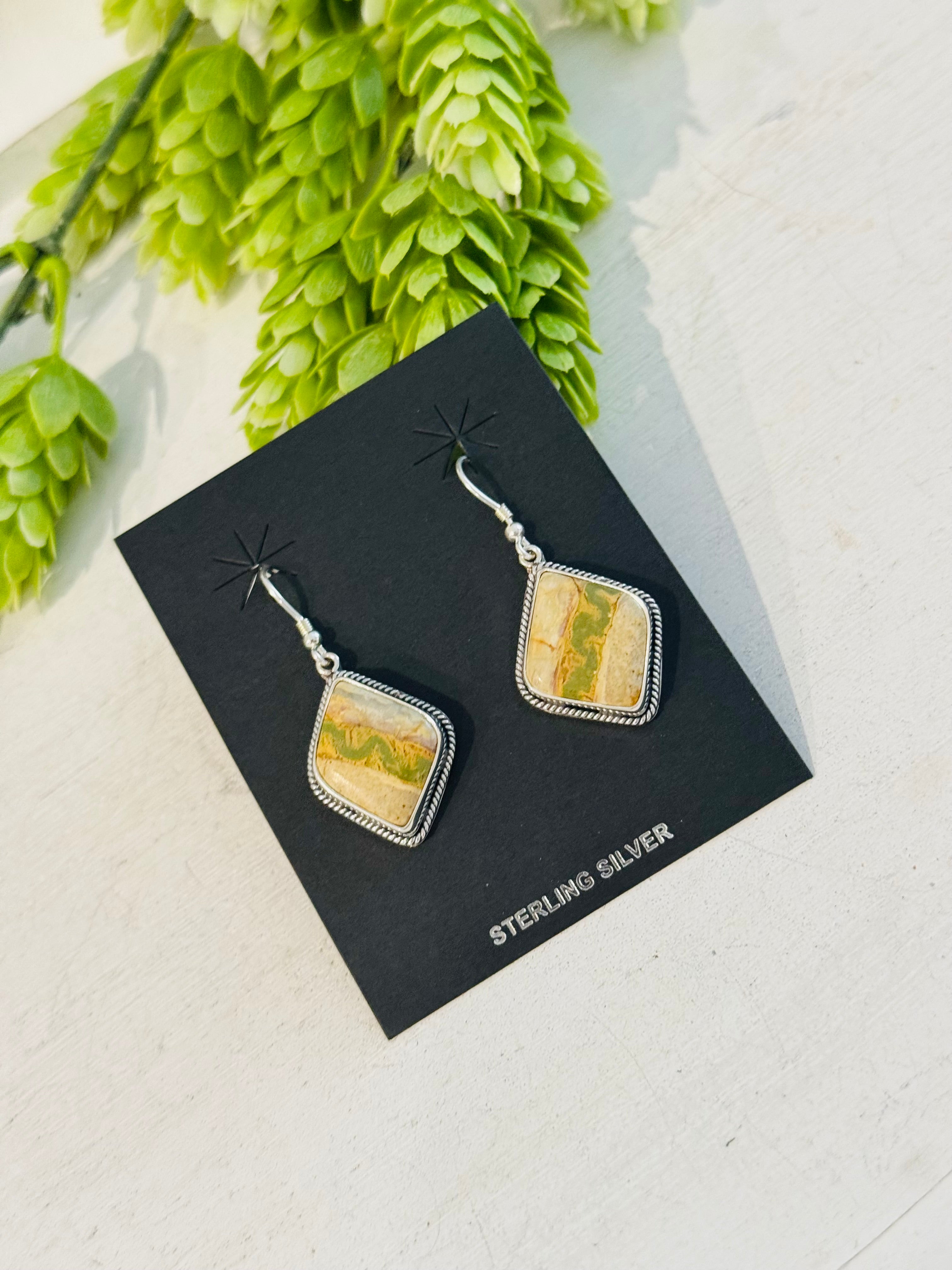 Southwest Handmade Ribbon Royston Turquoise & Sterling Silver Dangle Earrings