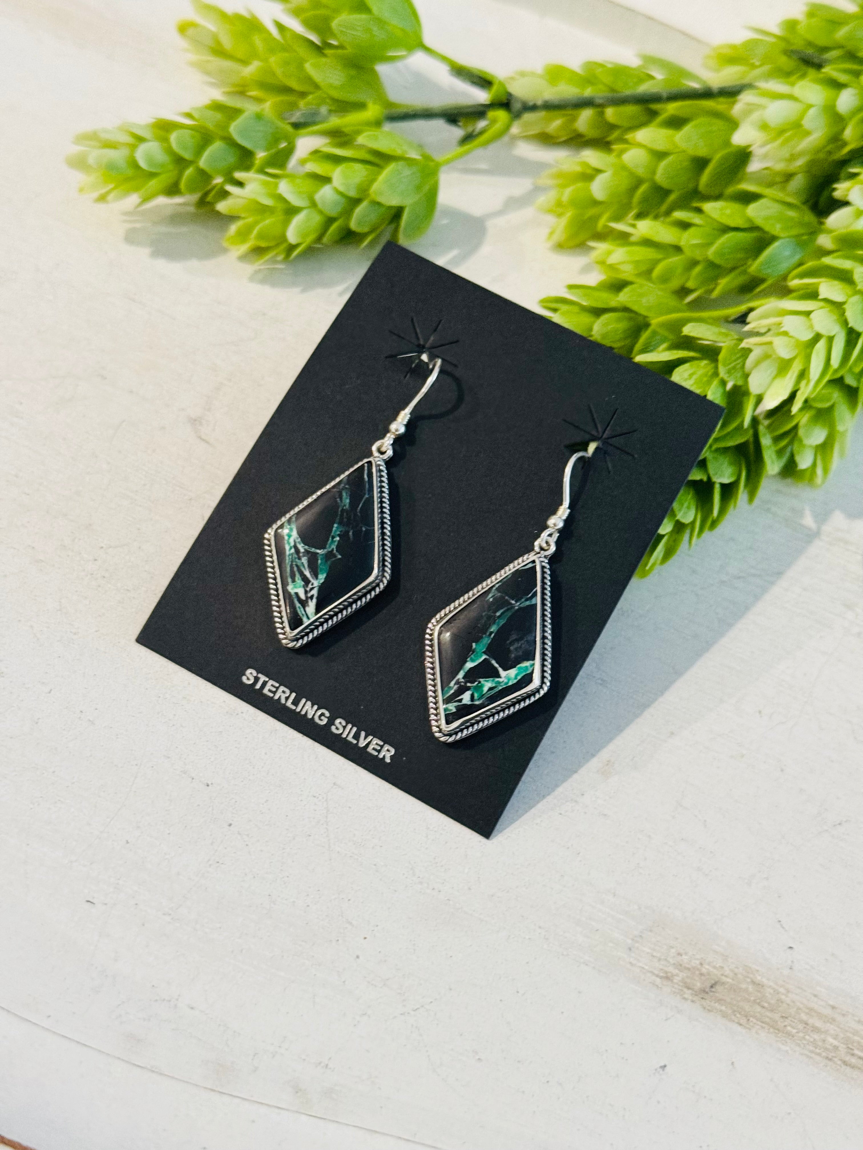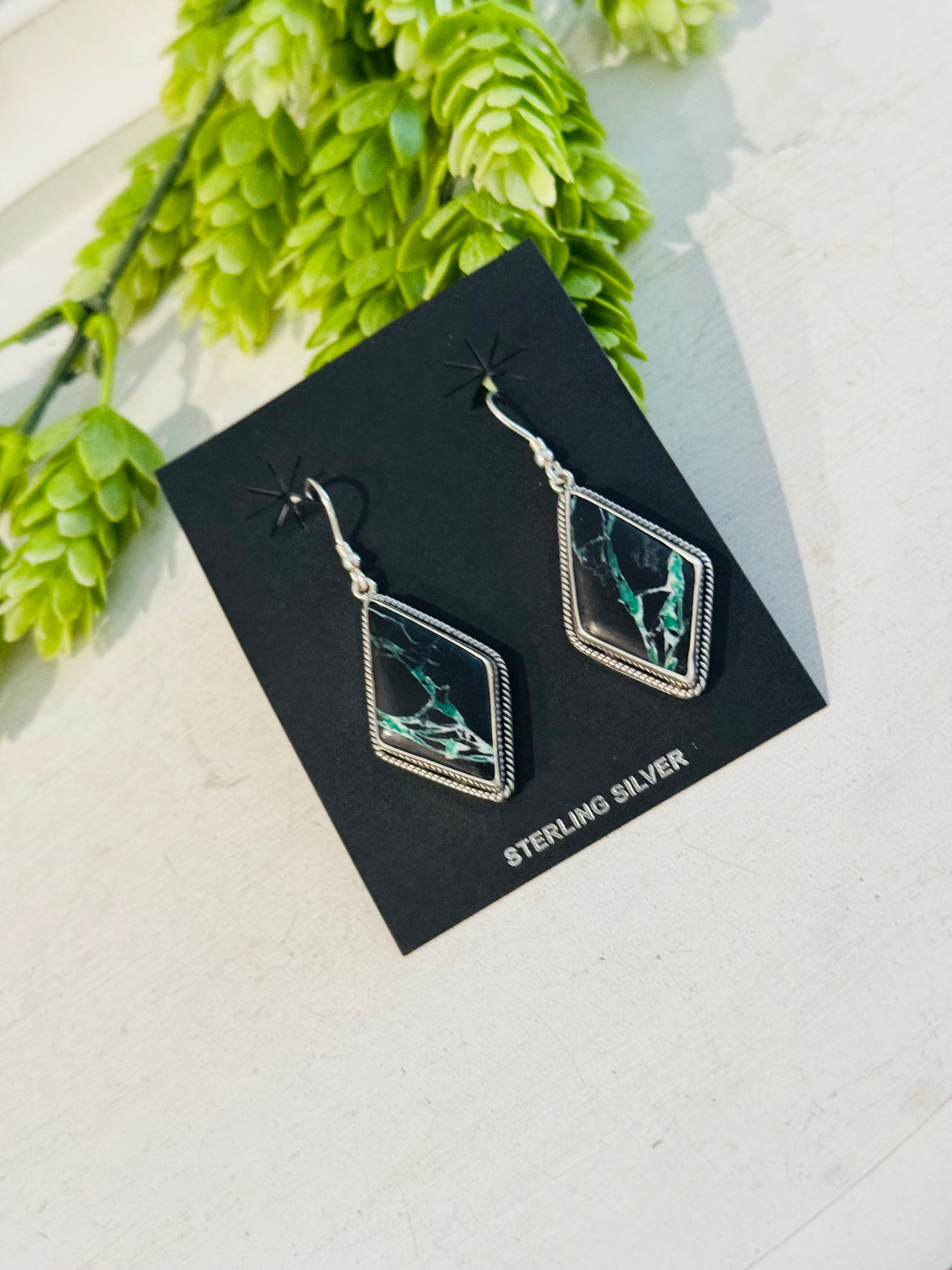 Southwest Handmade Black Jack Turquoise & Sterling Silver Dangle Earrings