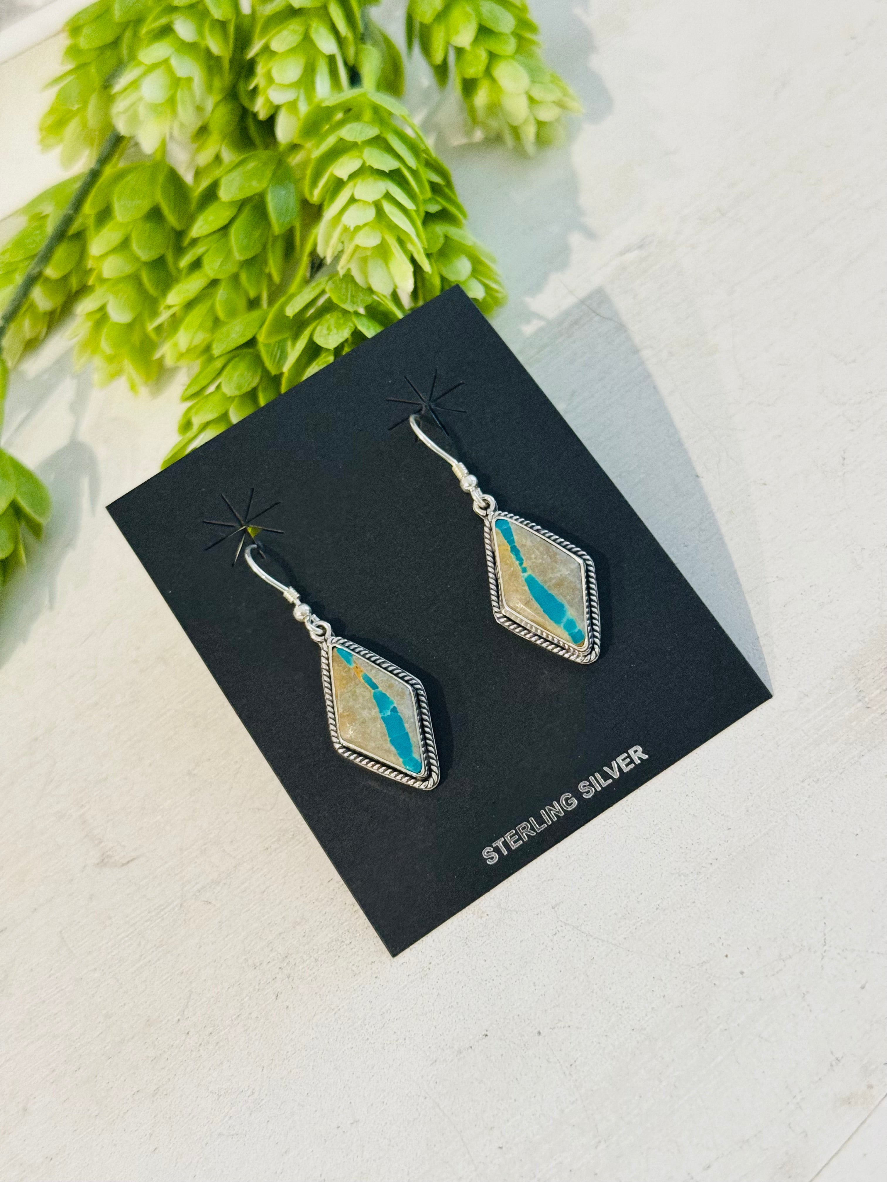 Southwest Handmade Ribbon Royston Turquoise & Sterling Silver Dangle Earrings