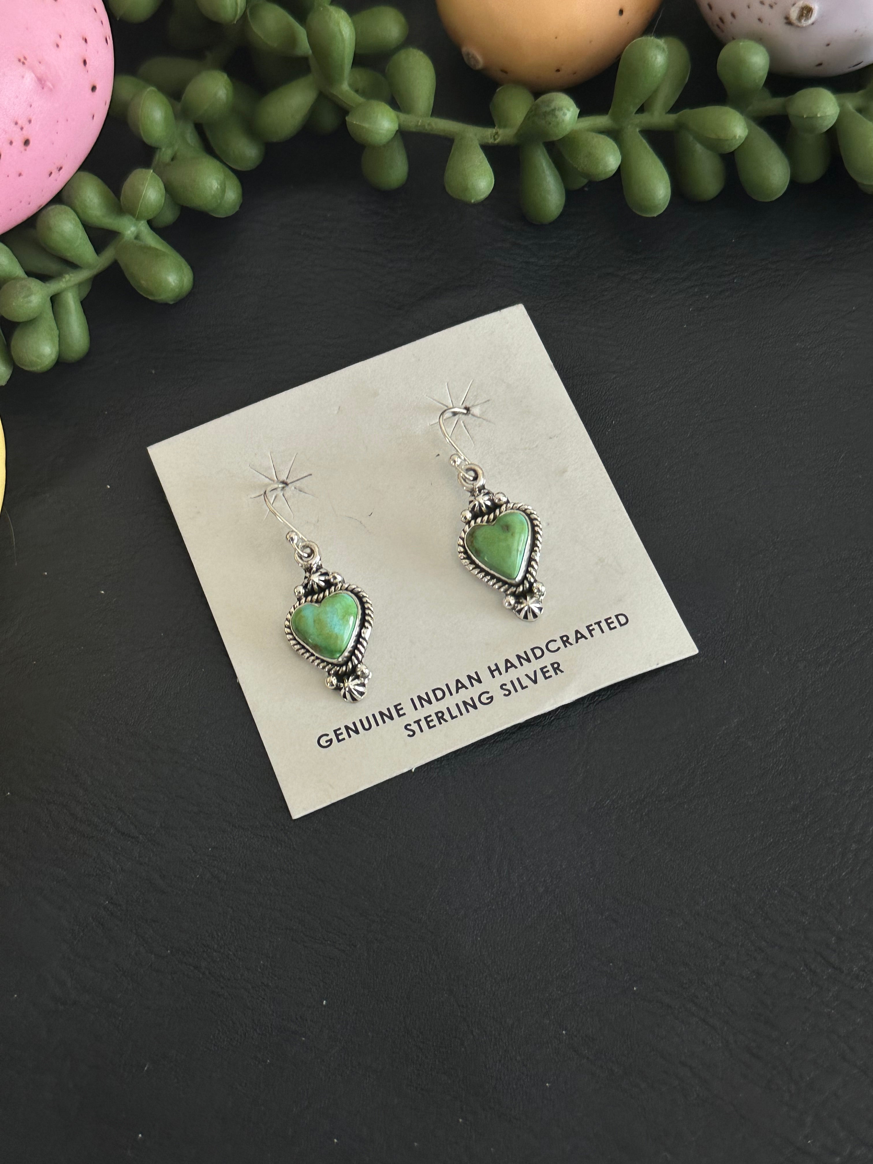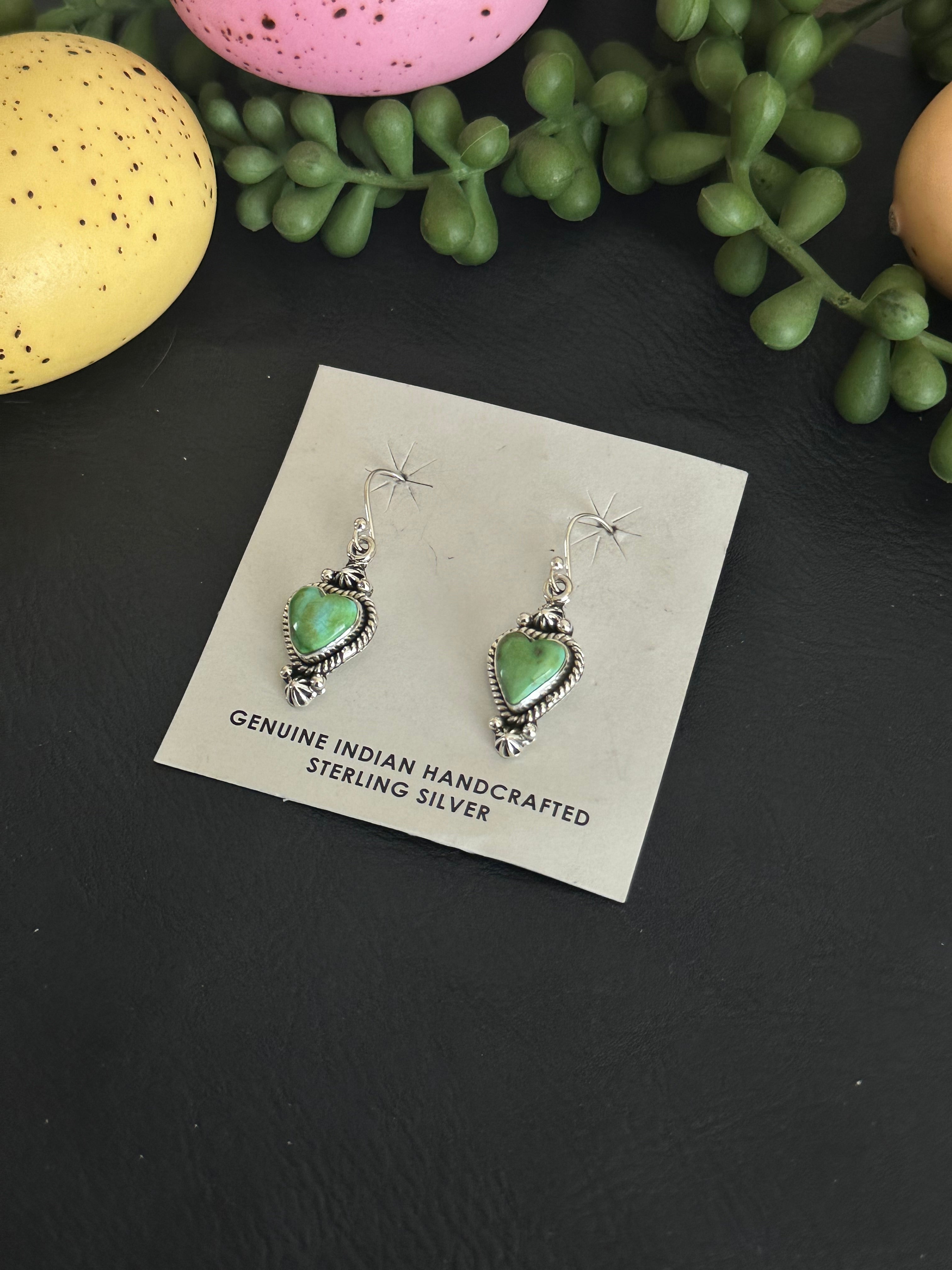 Southwest Handmade Sonoran Gold Turquoise & Sterling Silver Dangle Earrings