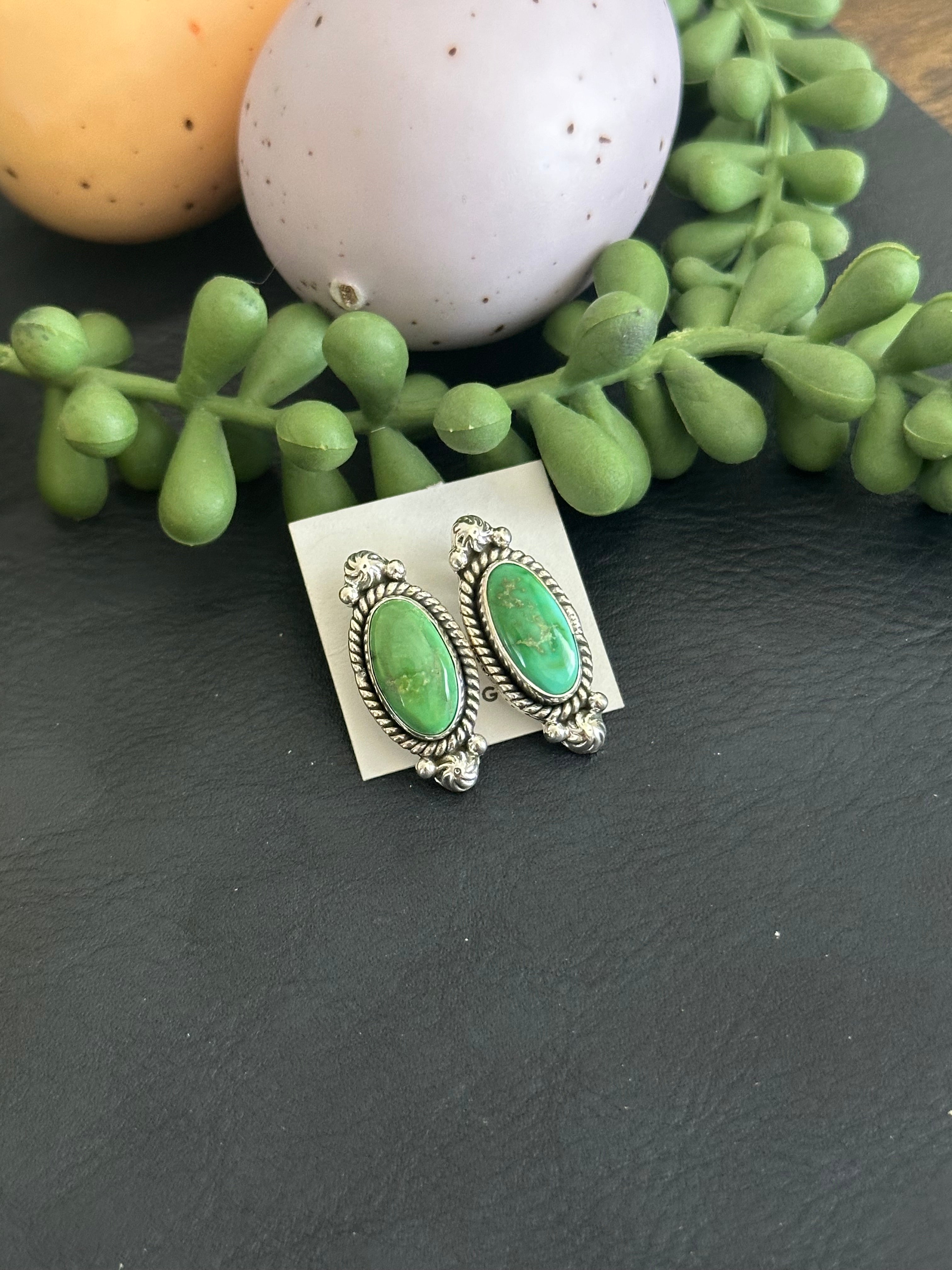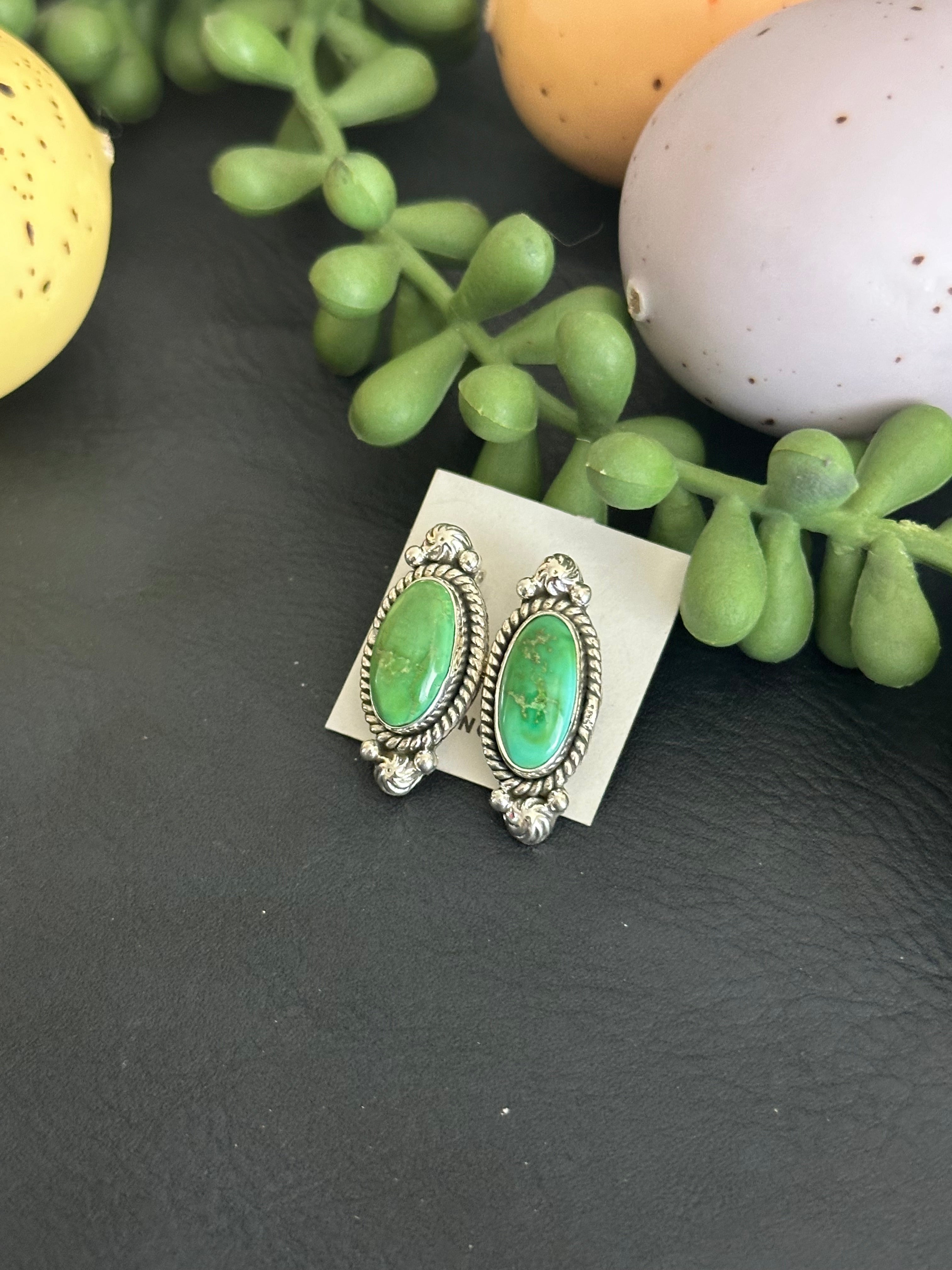Southwest Handmade Sonoran Gold Turquoise & Sterling Silver Post Earrings