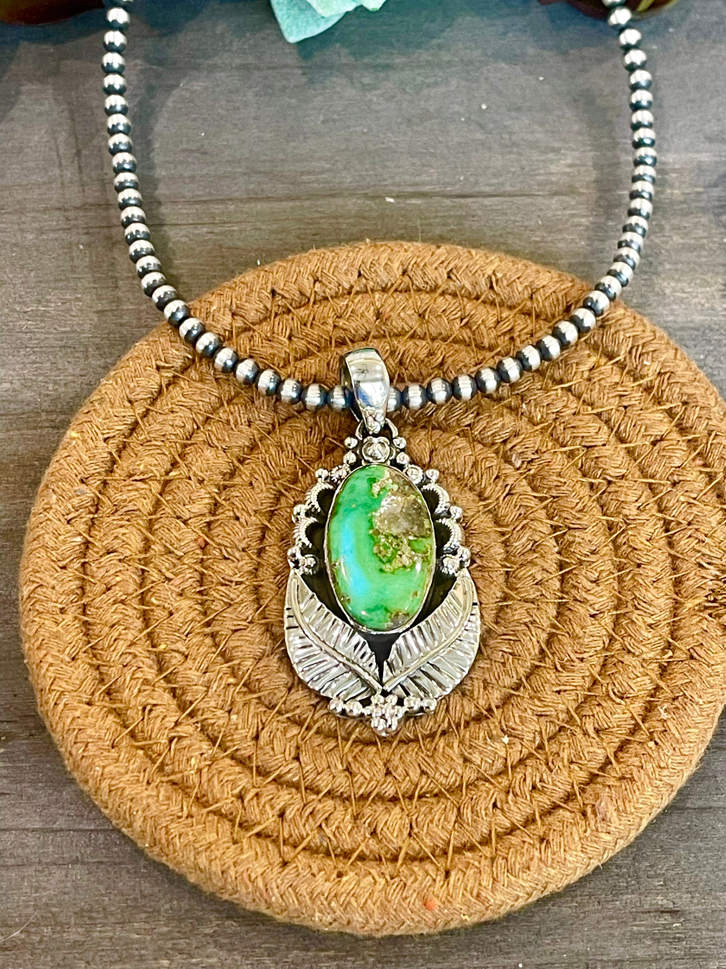 Southwest Handmade Sonoran Mountain Turquoise & Sterling Silver Pendant