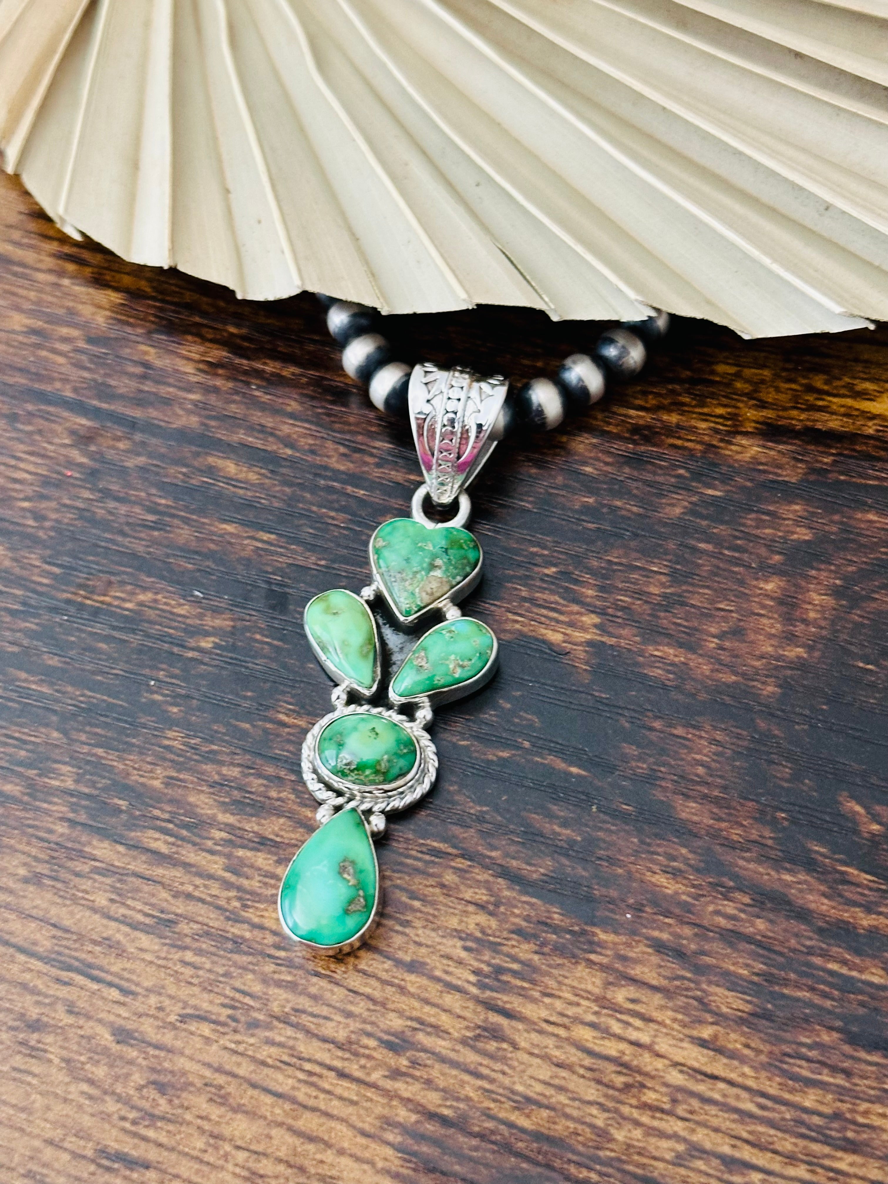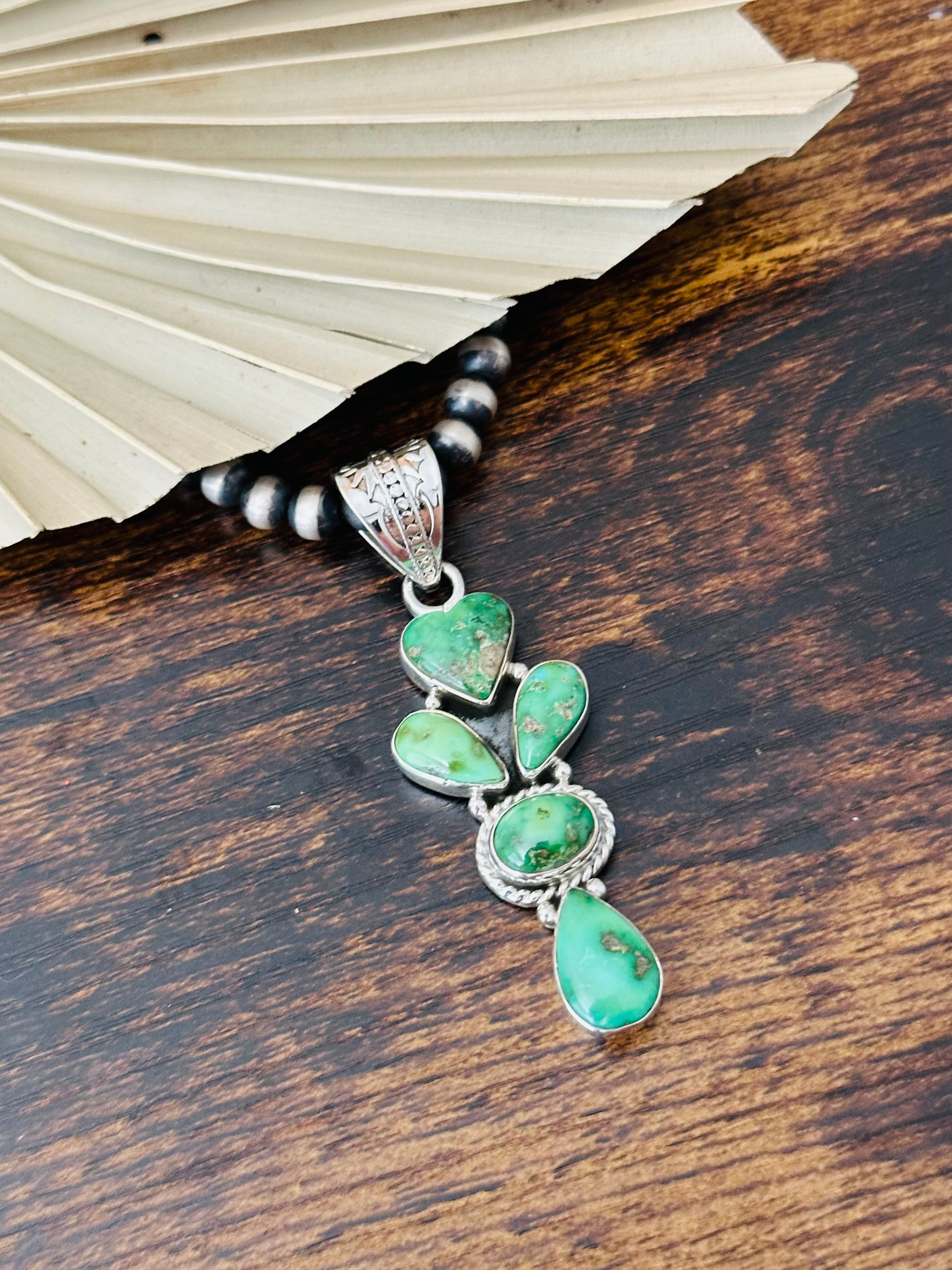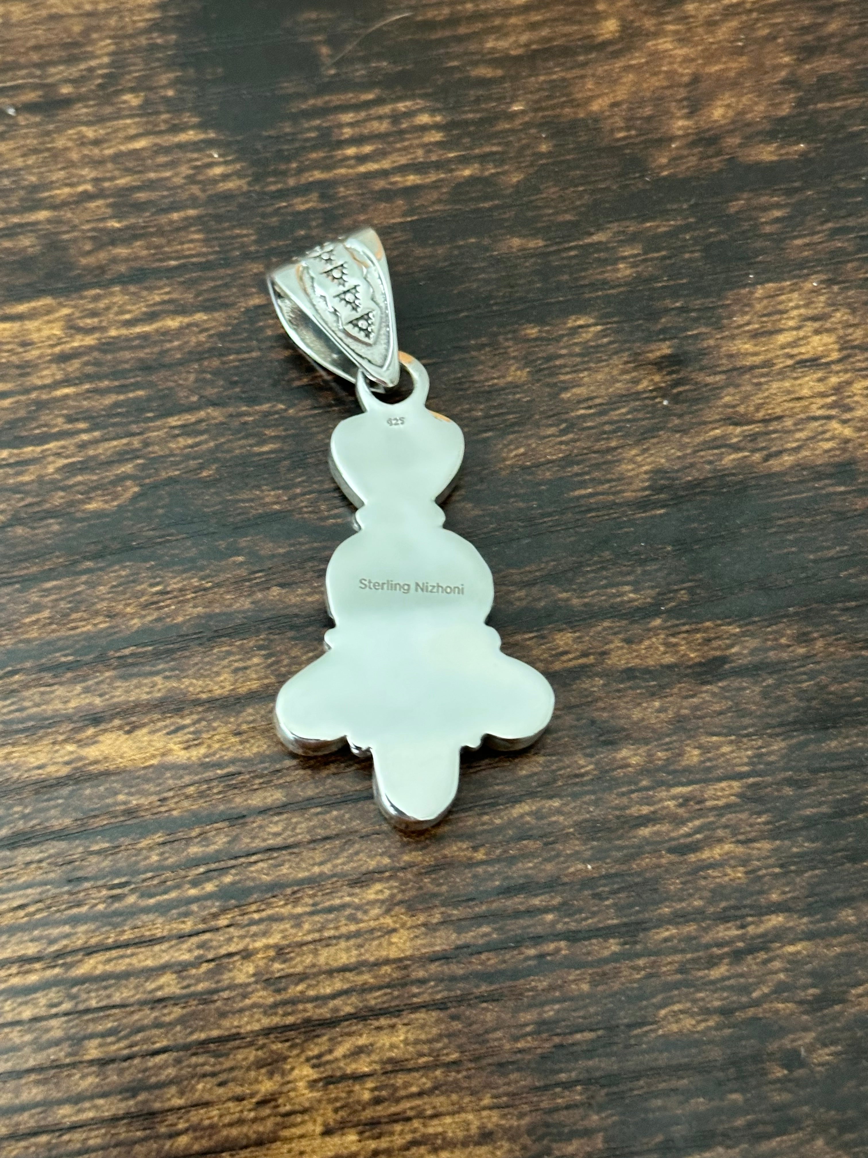 Beautiful craftsmanship. Southwest Handmade Sonoran Mountain Turquoise & Sterling Silver Cluster Pendant. It measures 2 1/8 inches long and 1 1/8 inches wide. Pendant Only. Signed by the artist and stamped sterling silver.