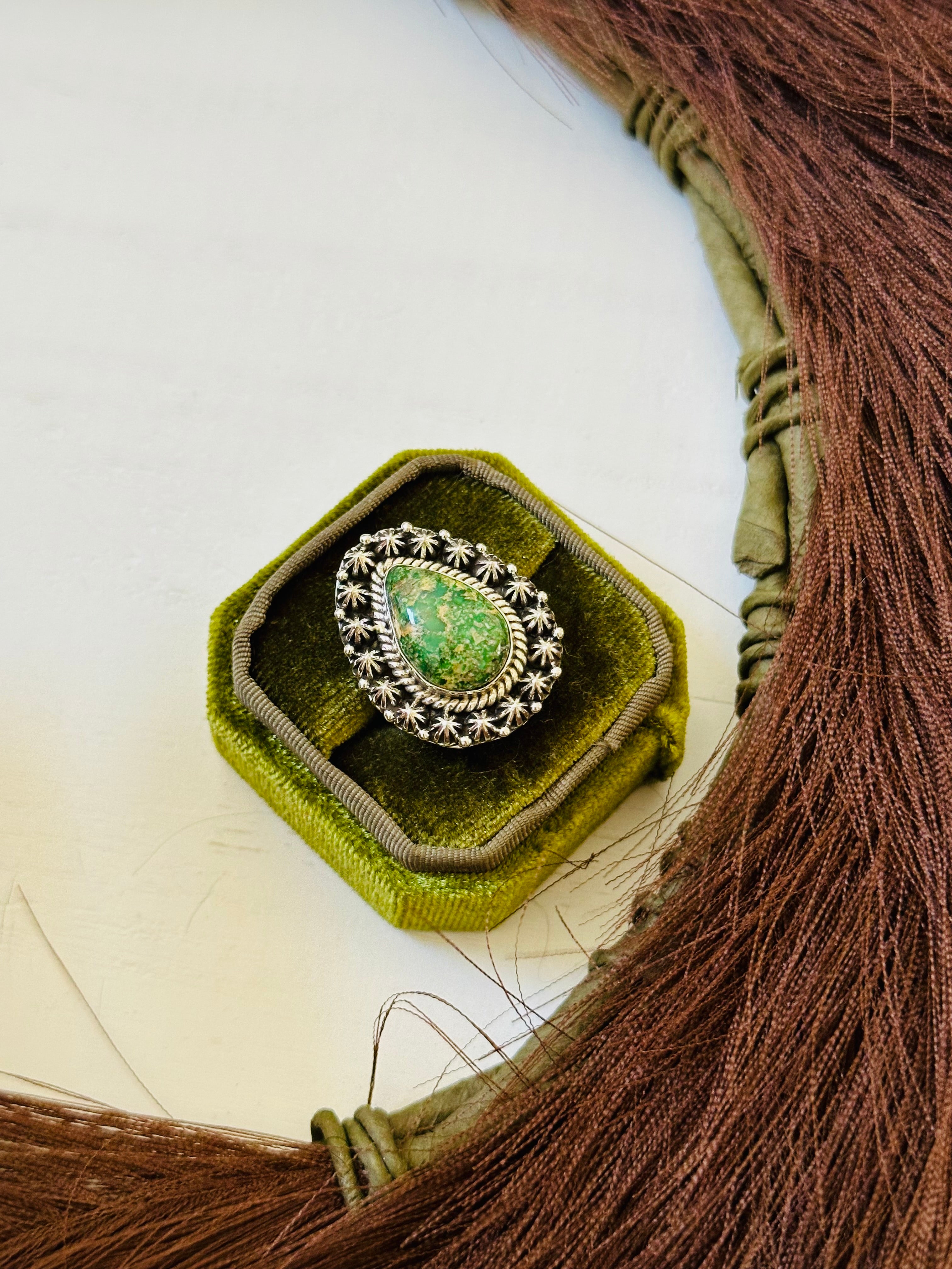 Southwest Handmade Sonoran Mountain Turquoise & Sterling Silver Ring Size 7