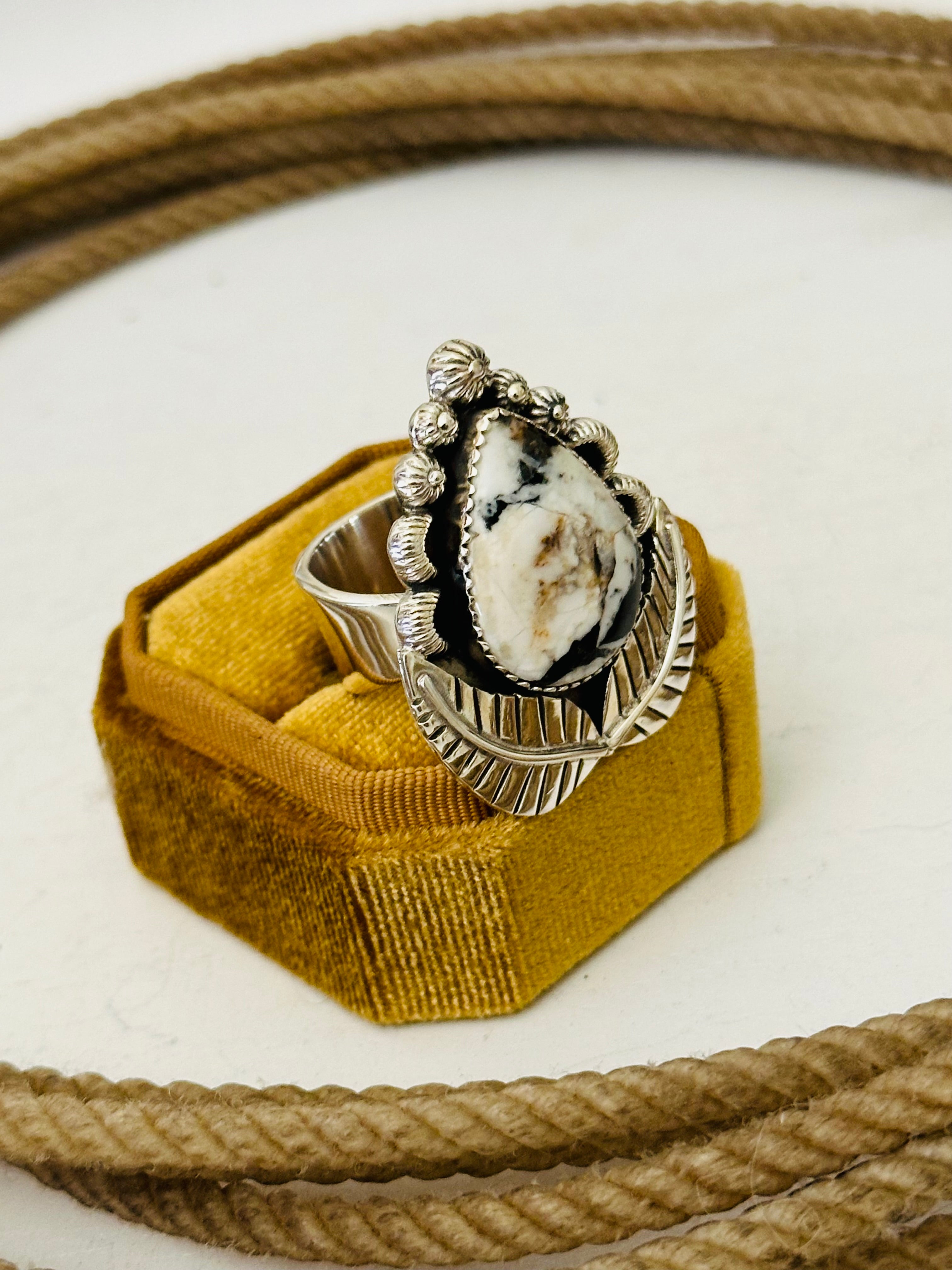 Southwest Handmade White Buffalo & Sterling Silver Adjustable Ring