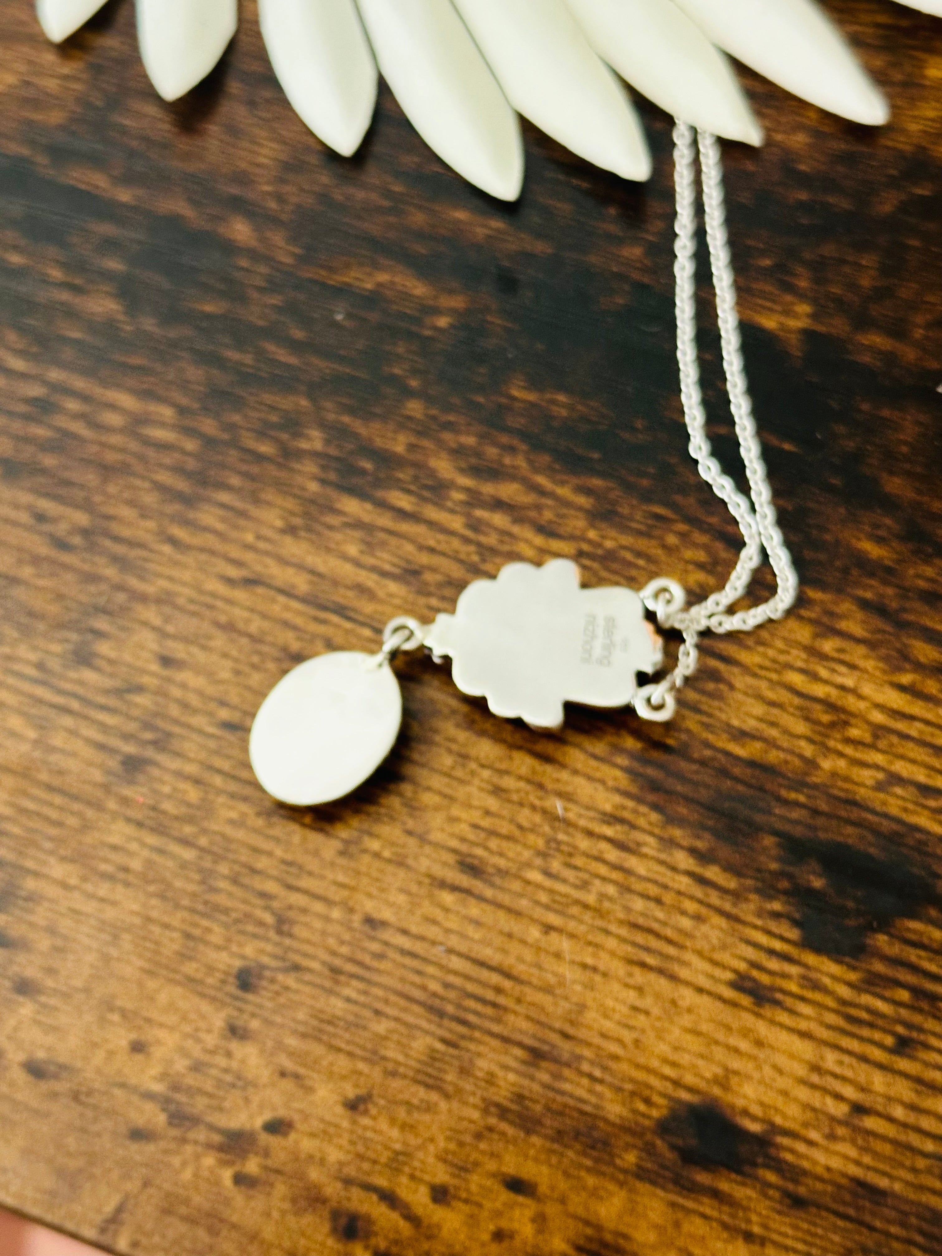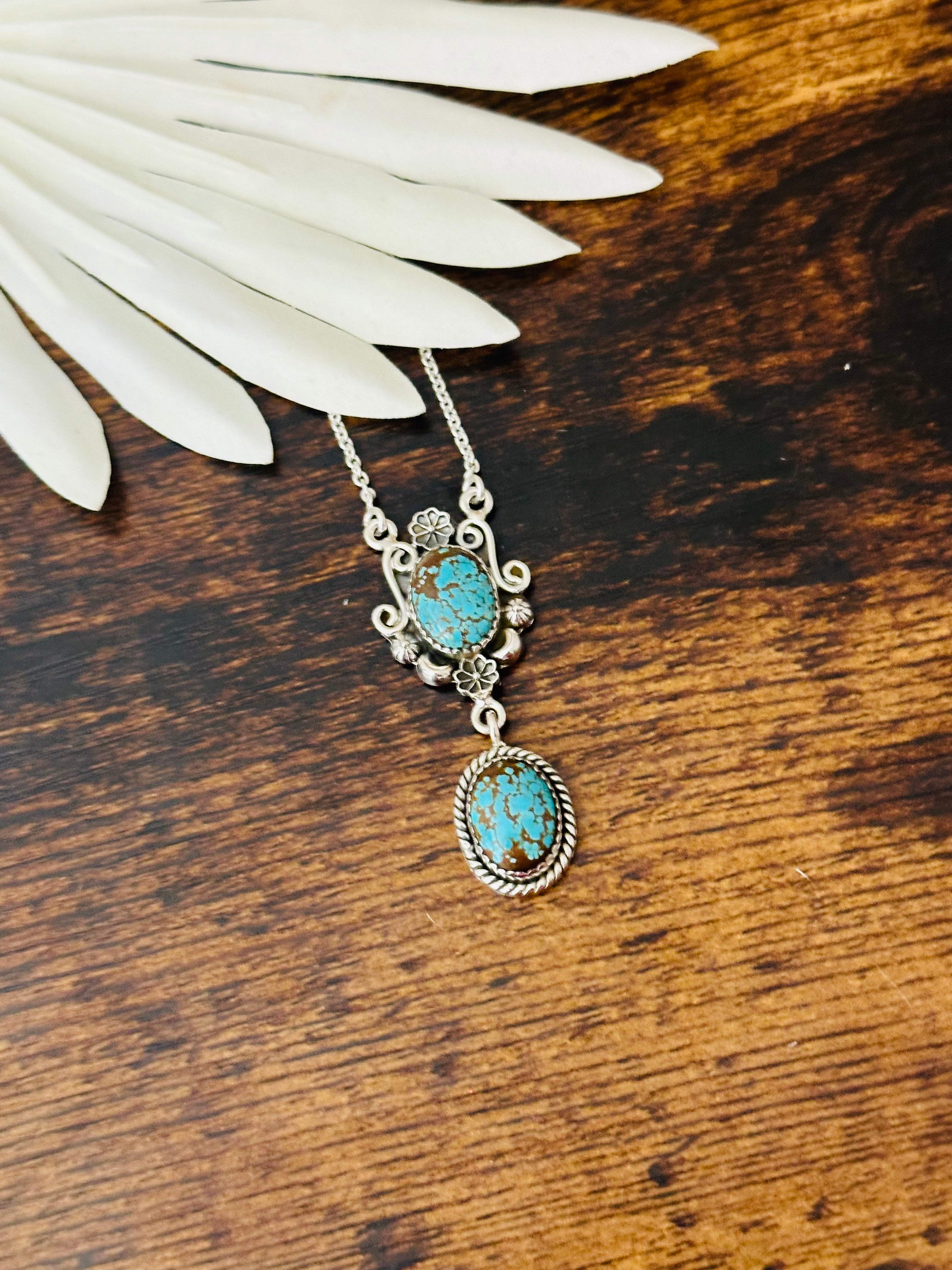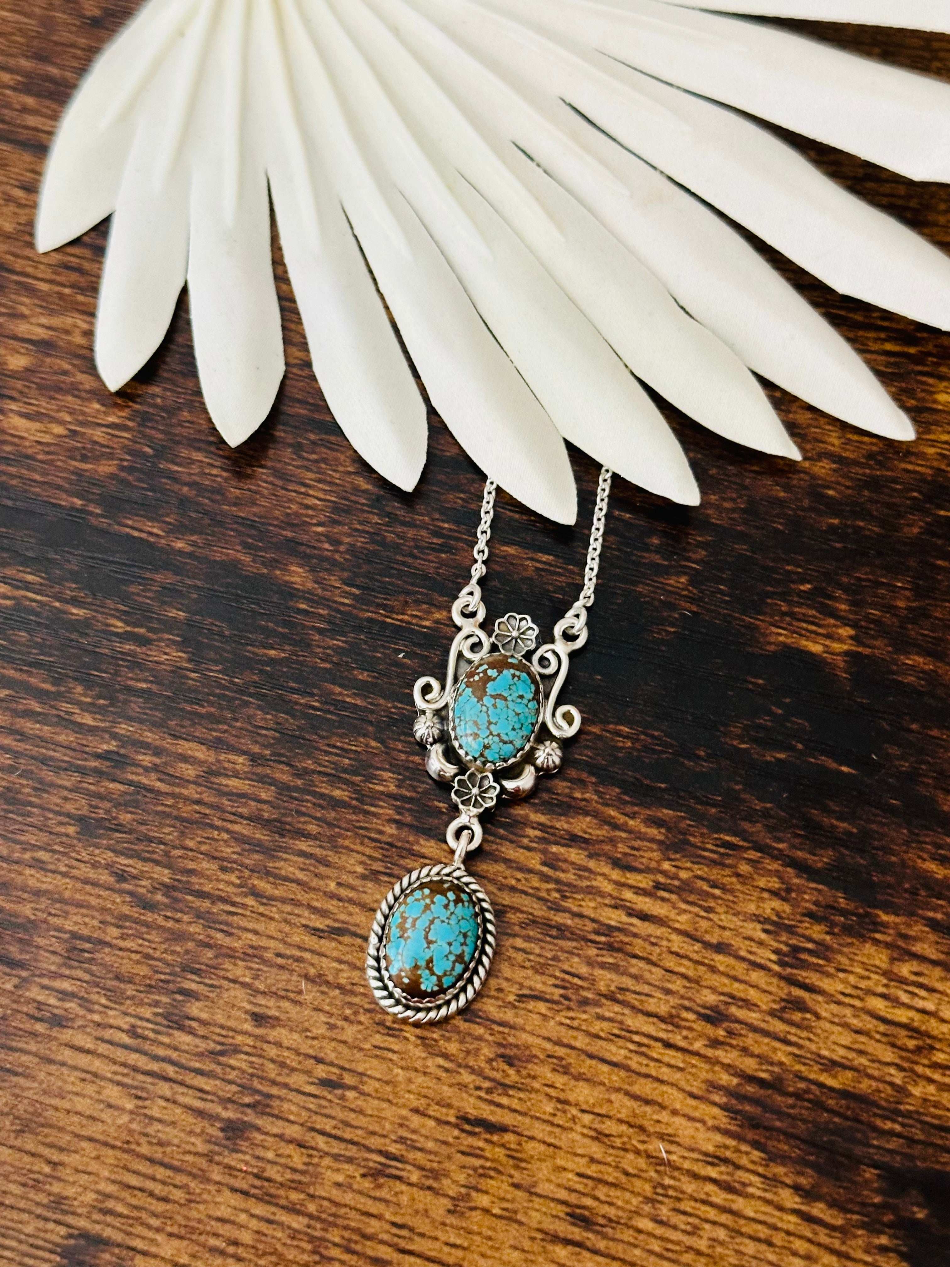 Beautiful Necklace. Southwest Made #8 Turquoise & Sterling Silver Necklace. It measures 22 inches long with hang while the chain measures 18 inches long. Signed by the artist and stamped sterling silver.