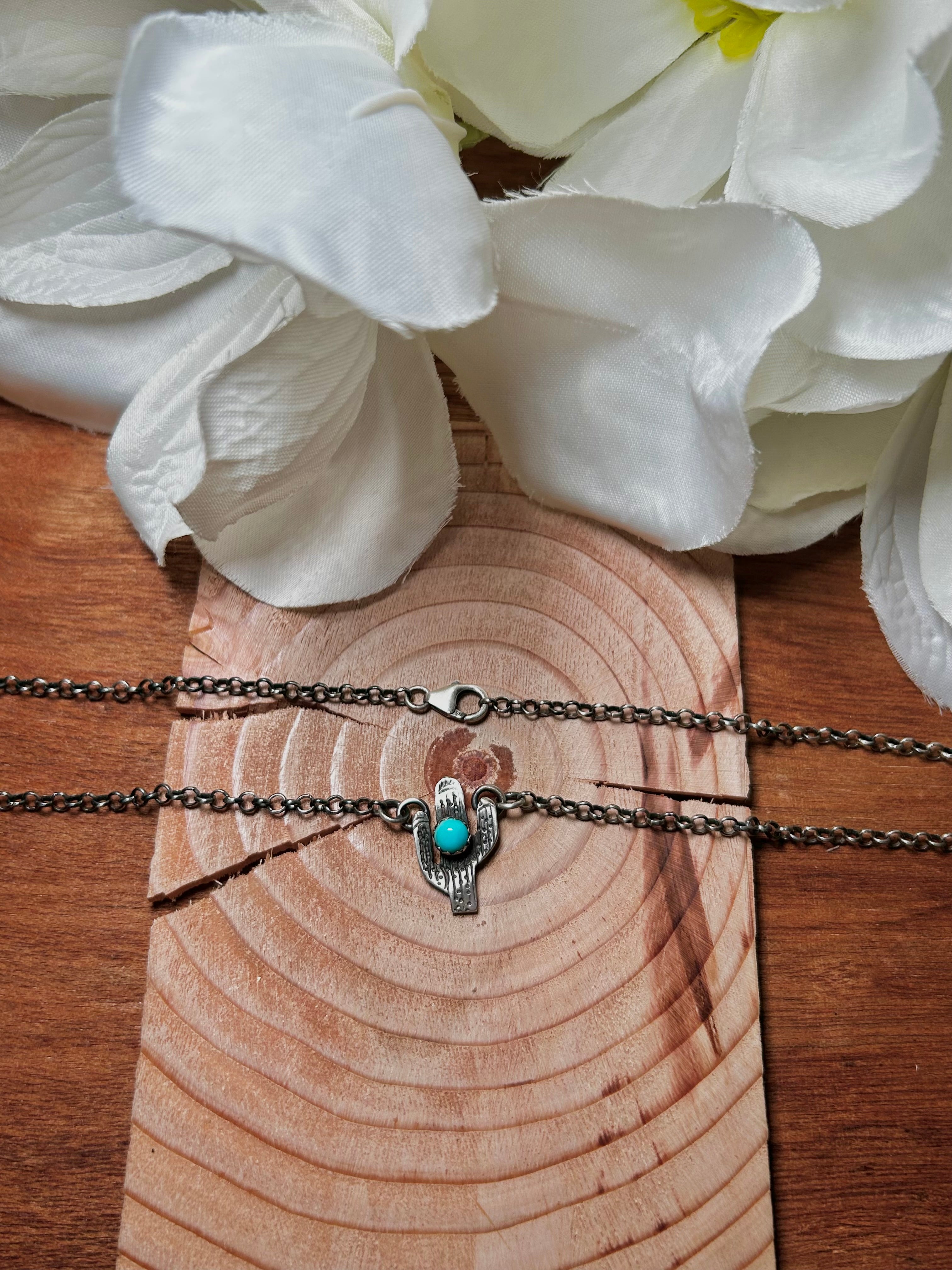 Navajo Made Kingman Turquoise and Sterling Silver Necklace. It measures 20inches long with hang while the chain measures 19 inches long. Signed by the artist and stamped sterling silver.