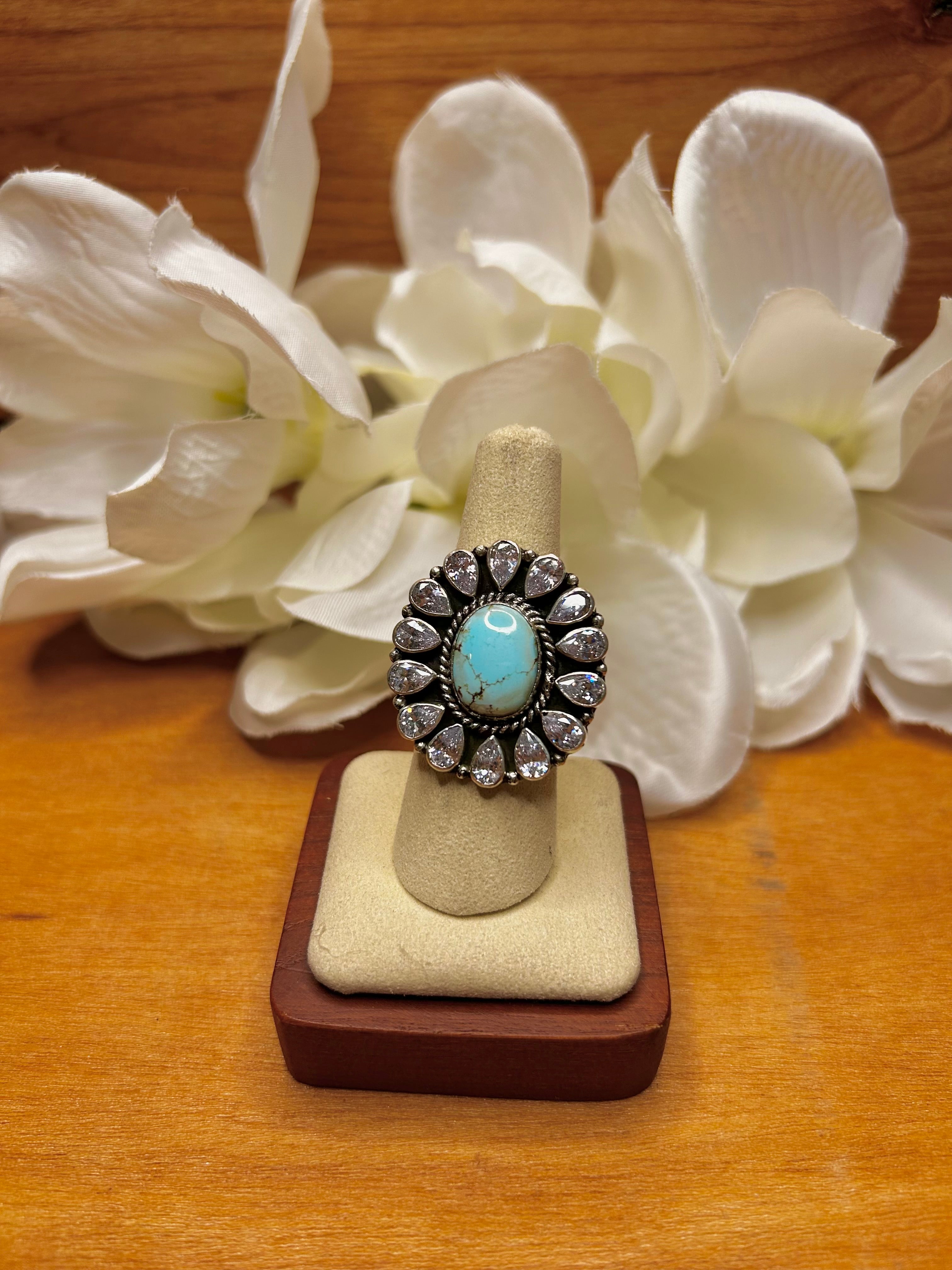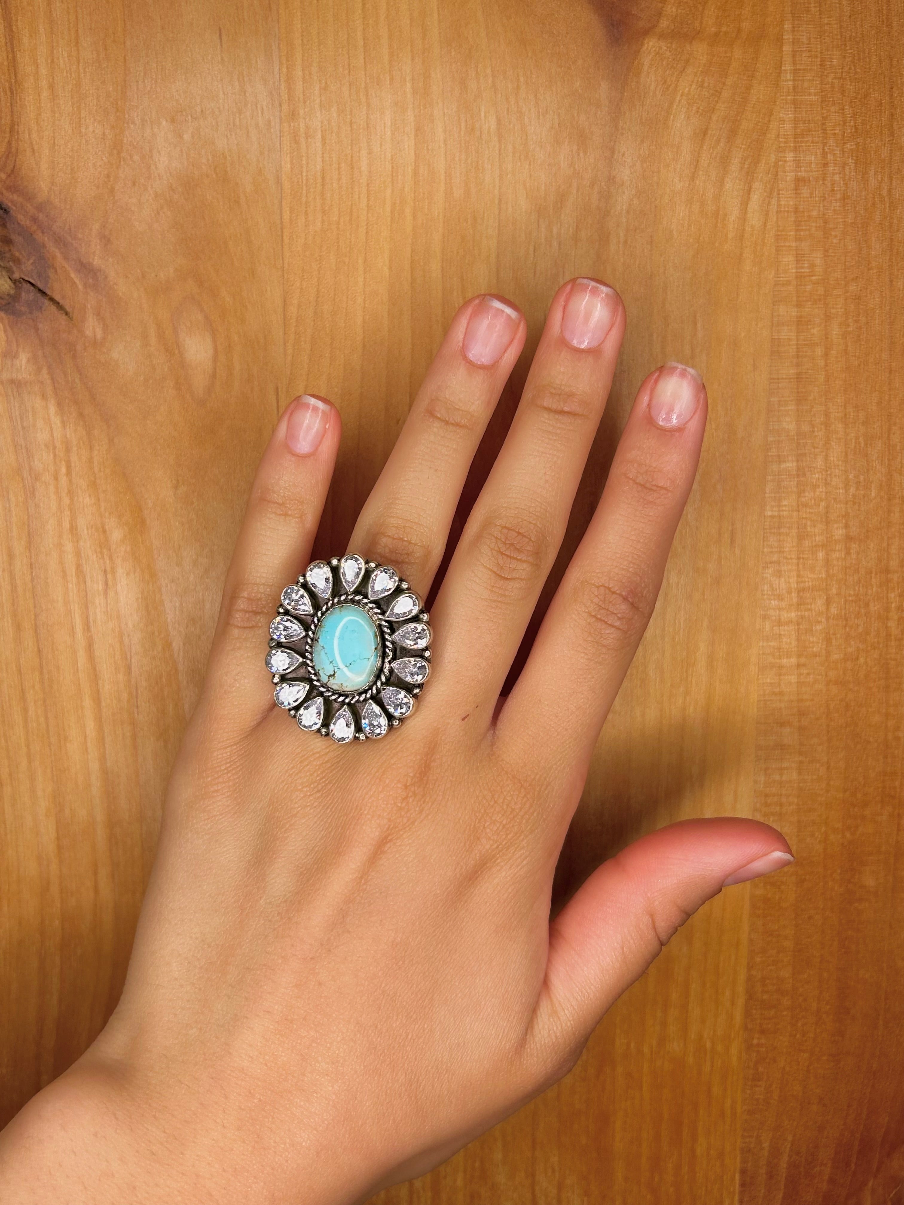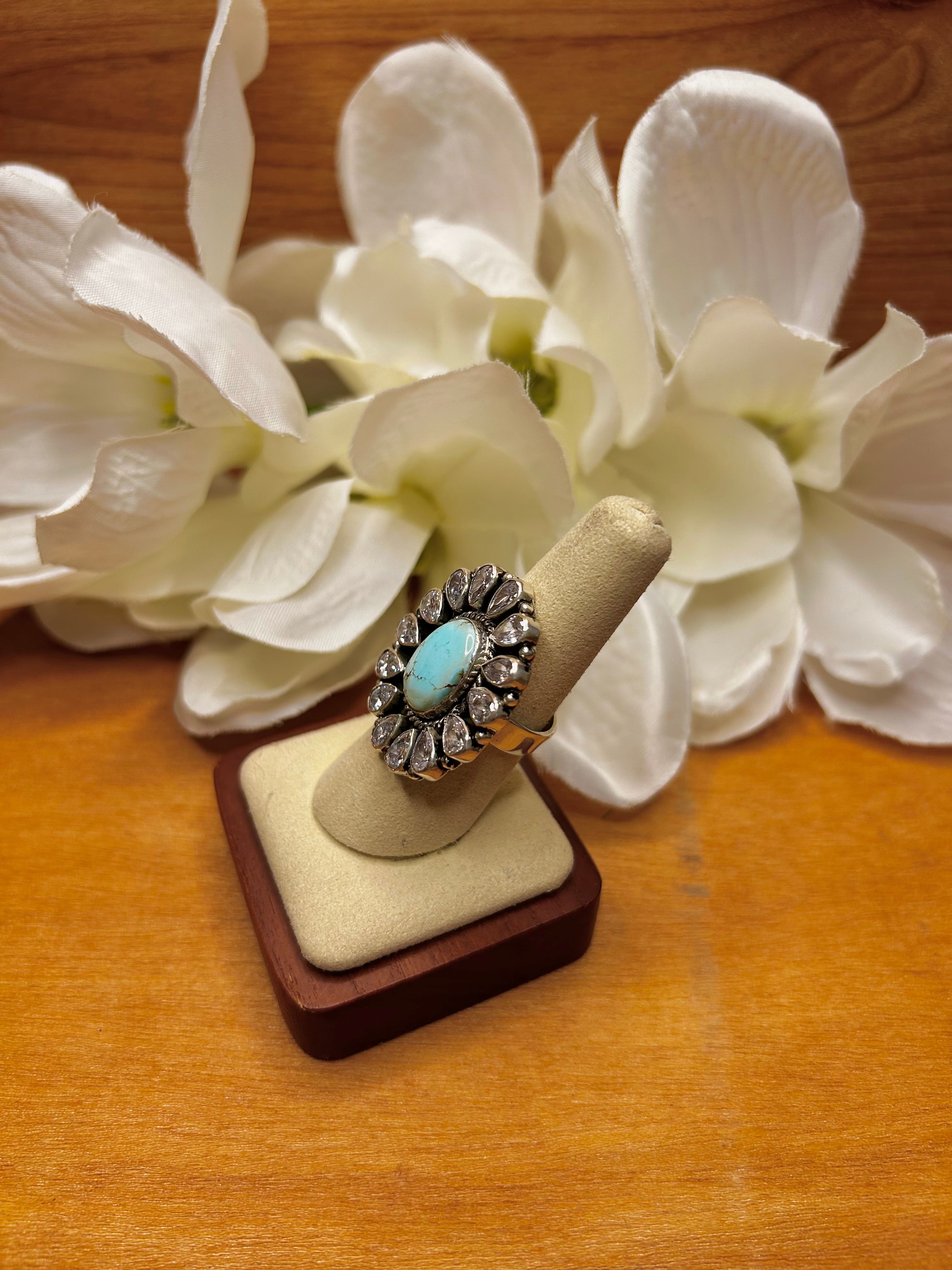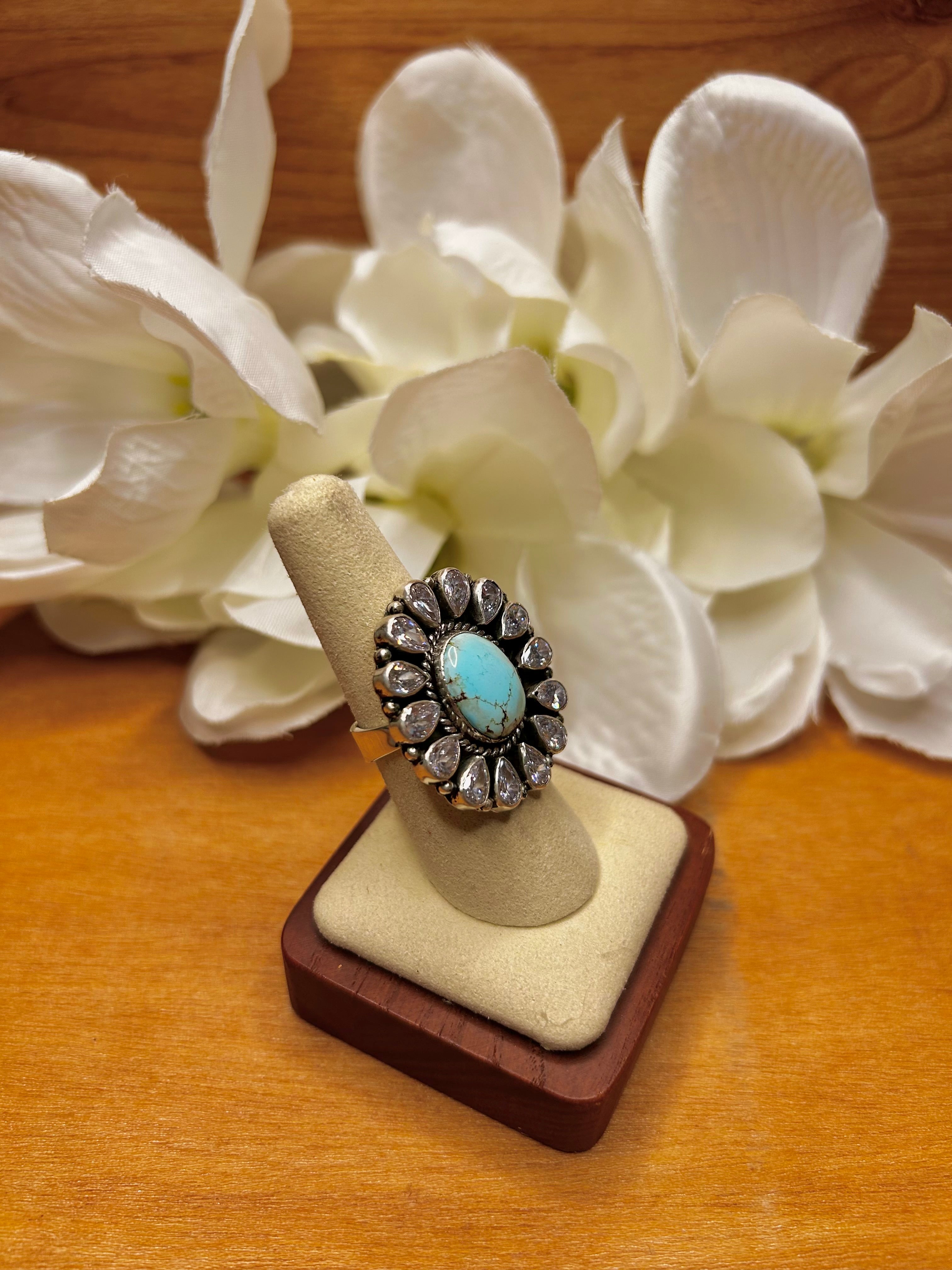 Southwest Made Multi Stone & Sterling Sliver Cluster Adjustable Ring