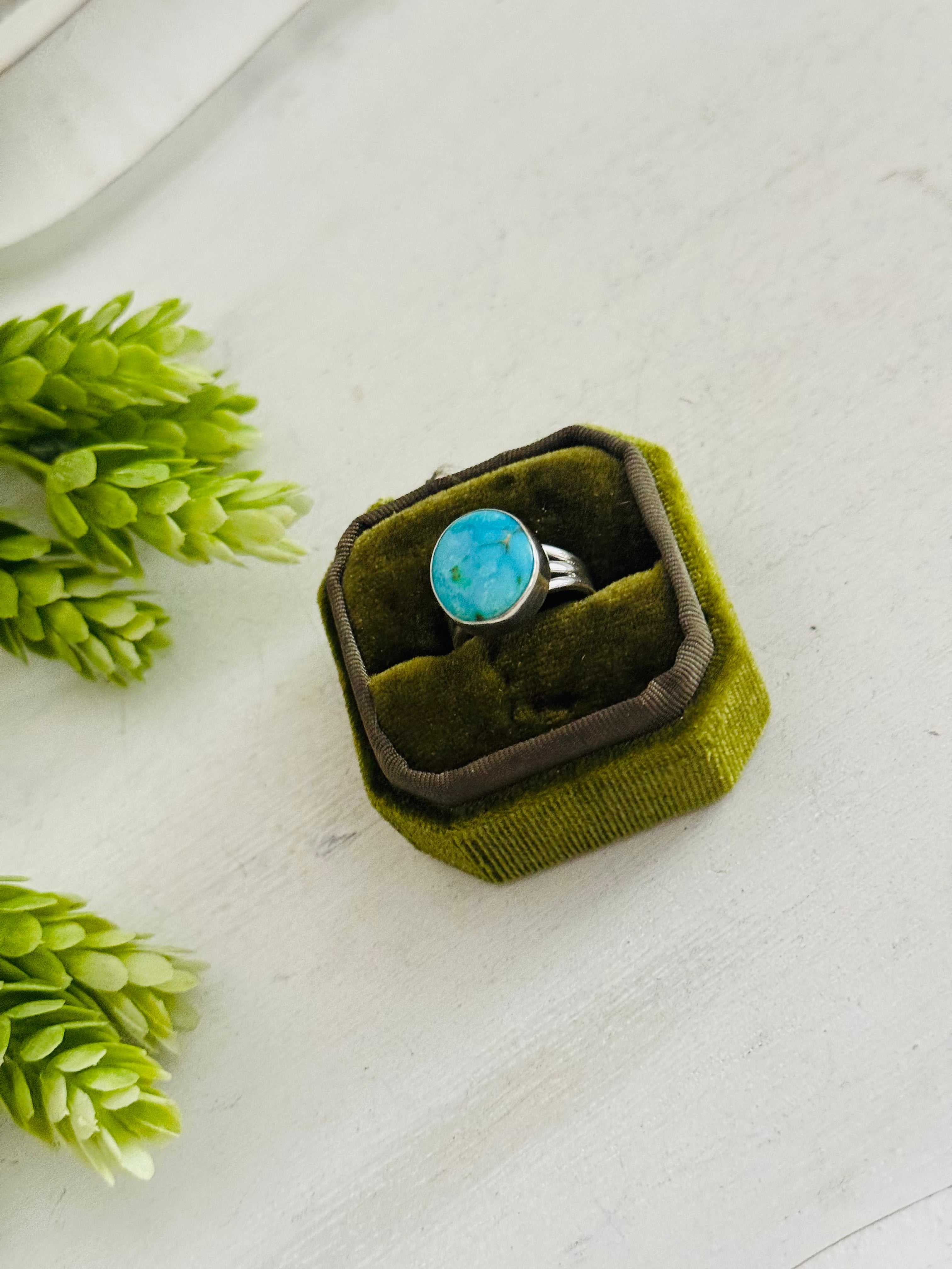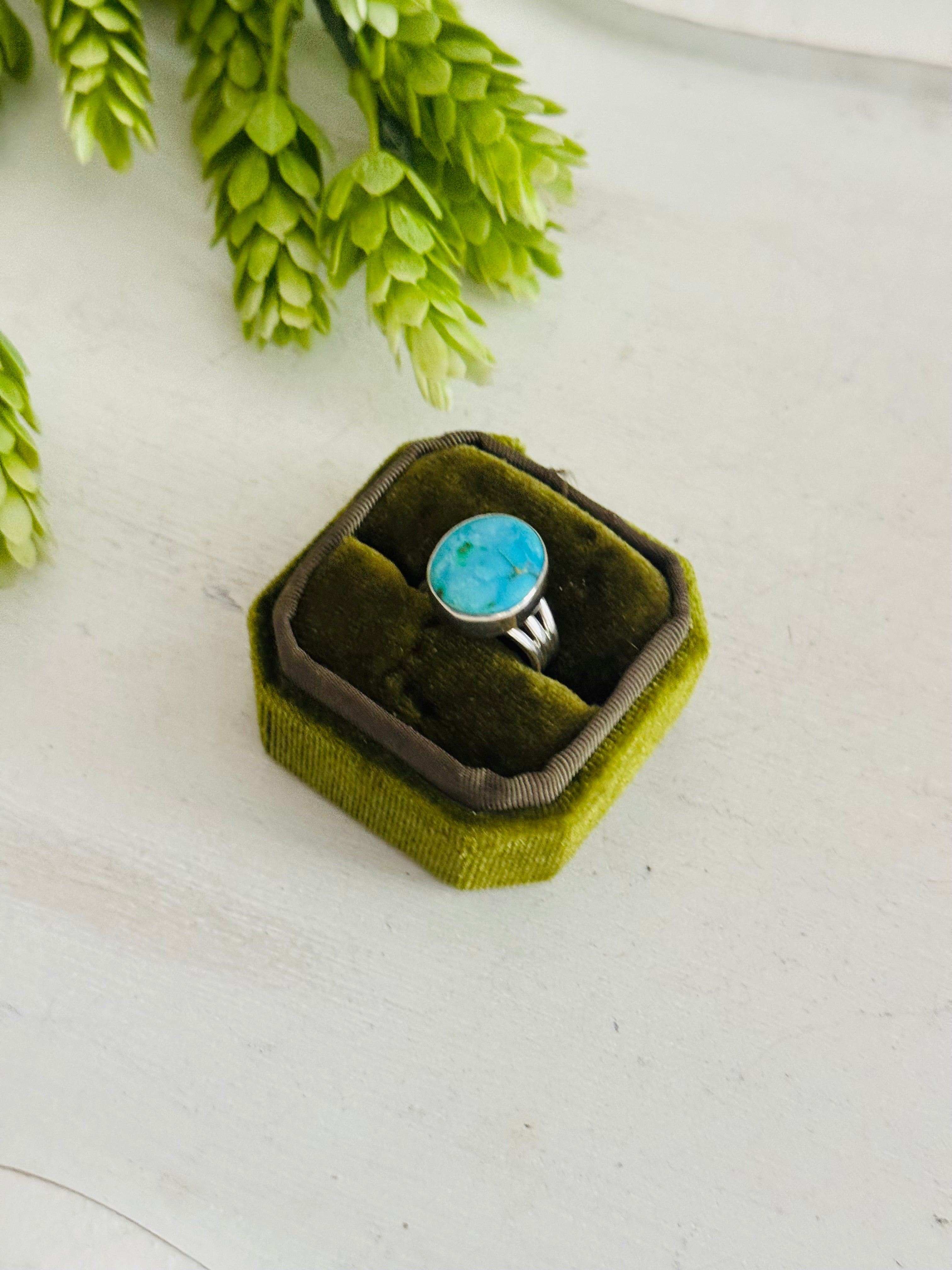 Southwest Made Kingman Turquoise & Sterling Sliver Ring Size 5.75