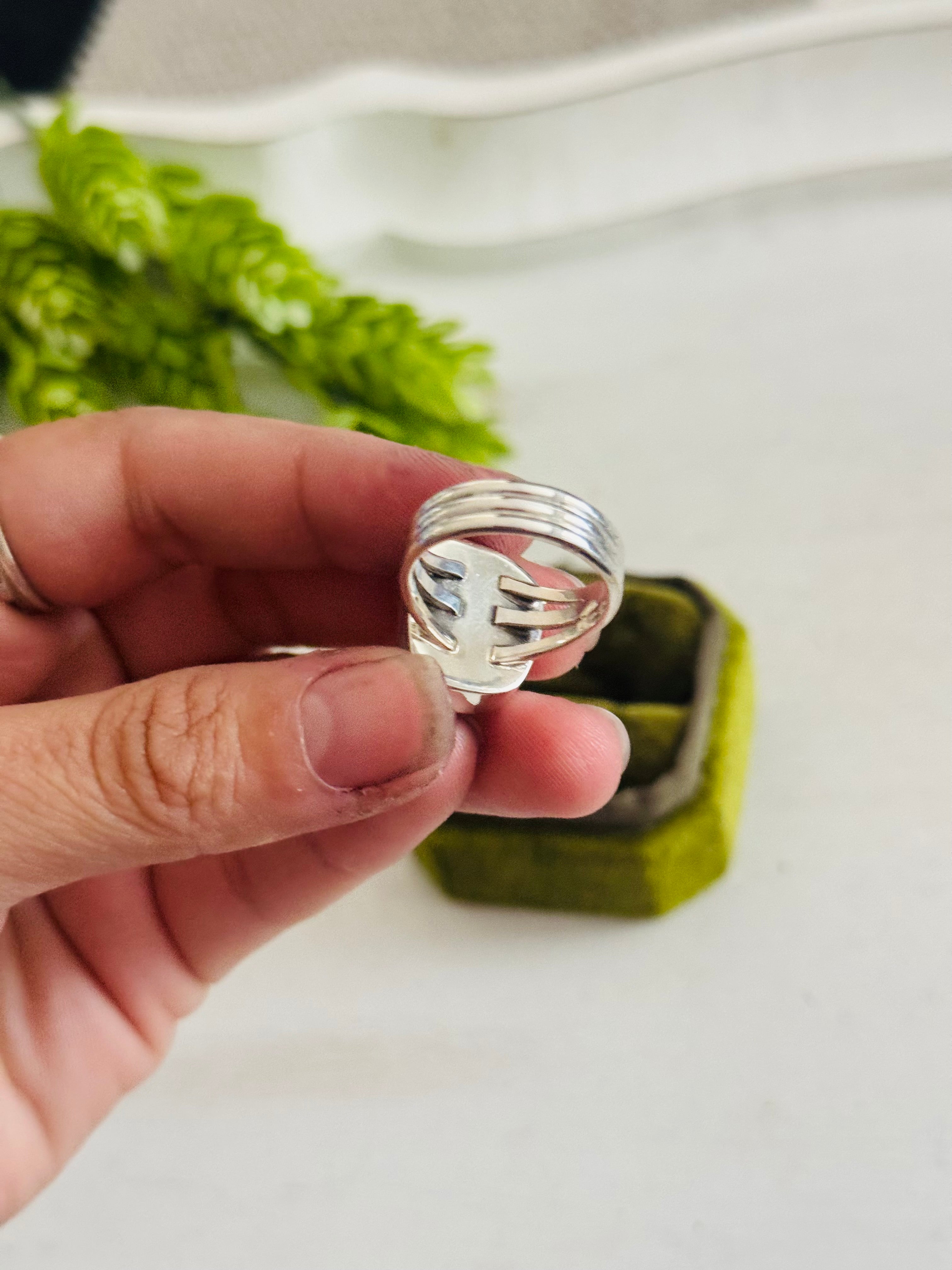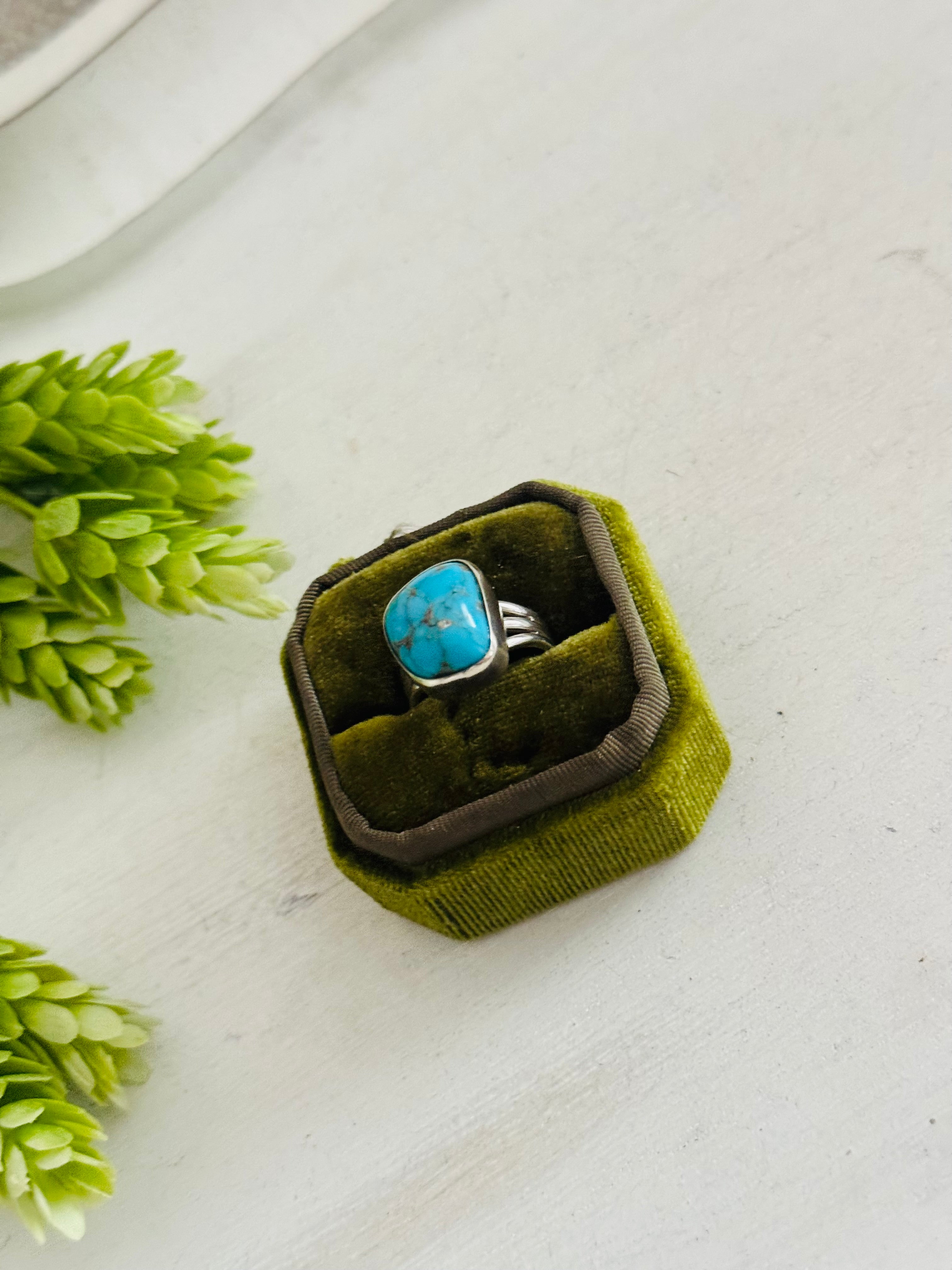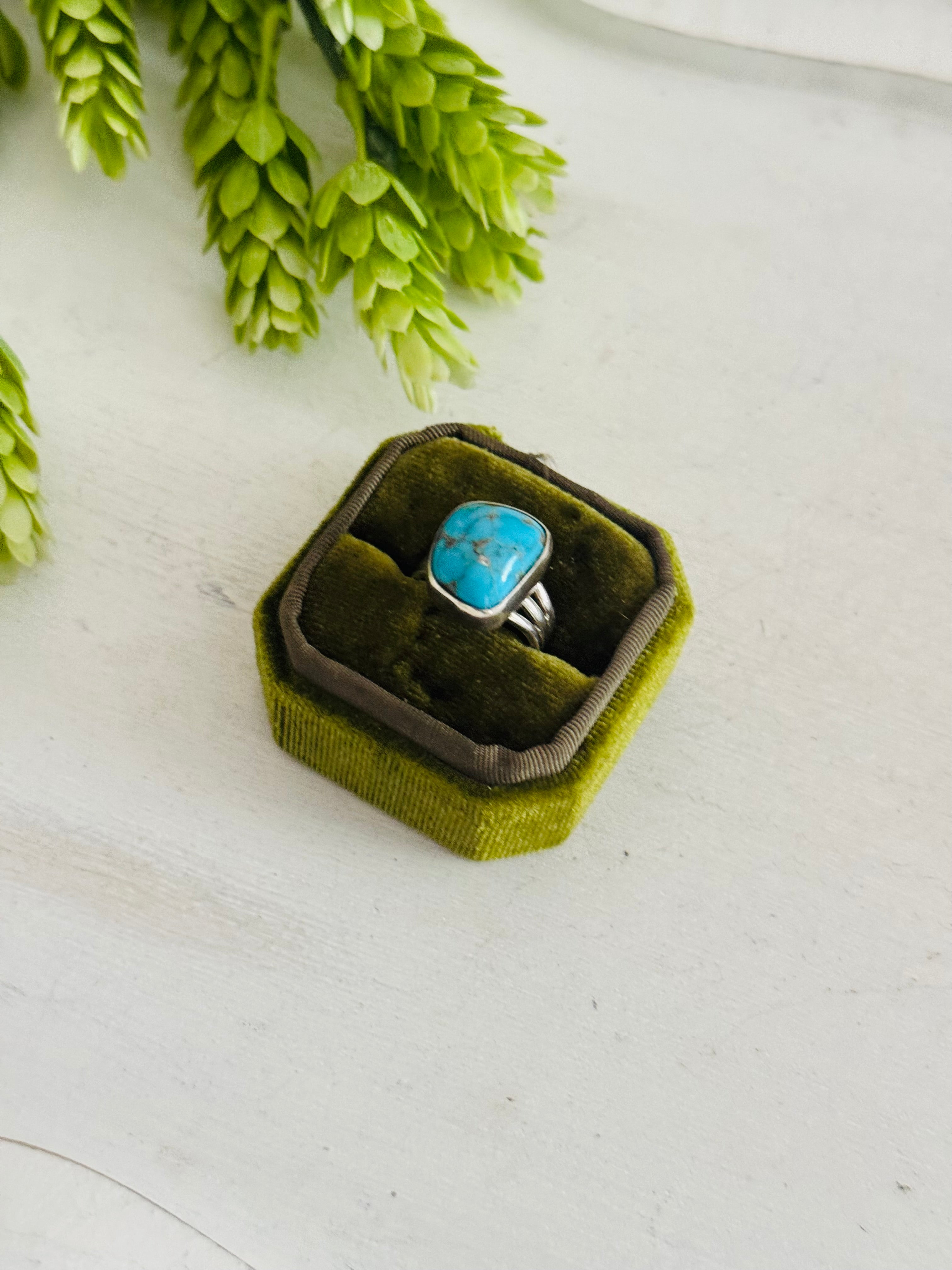 Southwest Made Kingman Turquoise & Sterling Sliver Ring Size 6.75