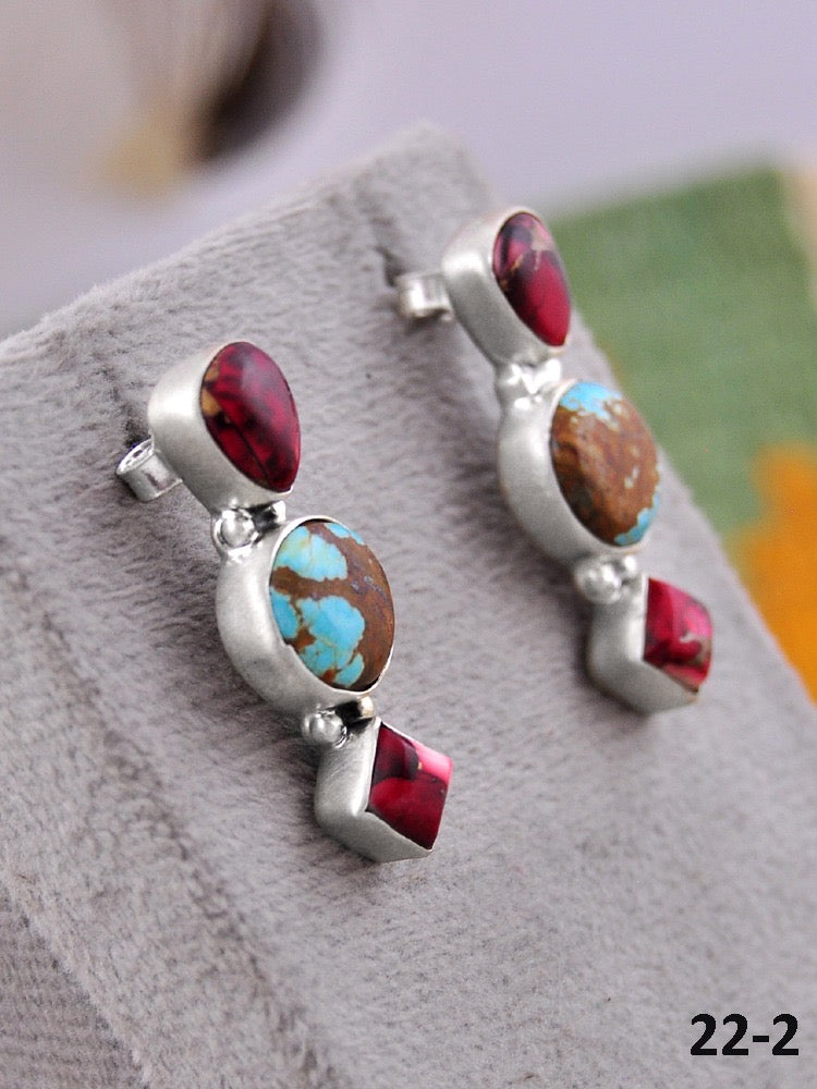 Southwest Made Multi Stone & Sterling Silver Post Earrings