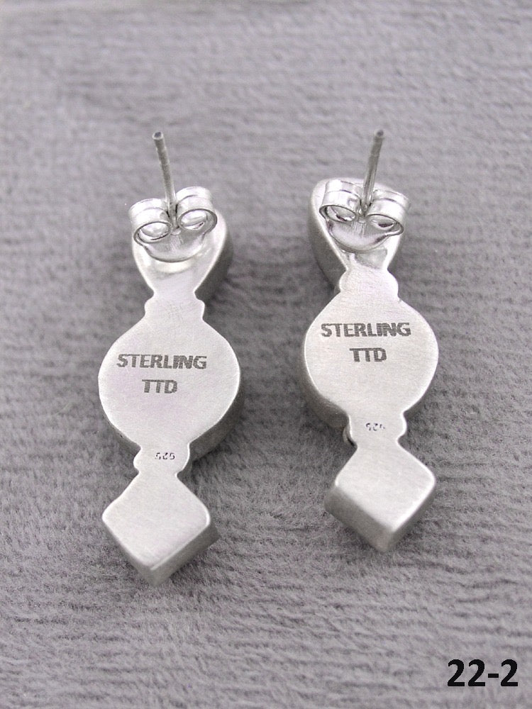 Southwest Made Multi Stone & Sterling Silver Post Earrings. It measures 1 3/8 Inches long and 1/2 of an inch wide. Stamped and signed.