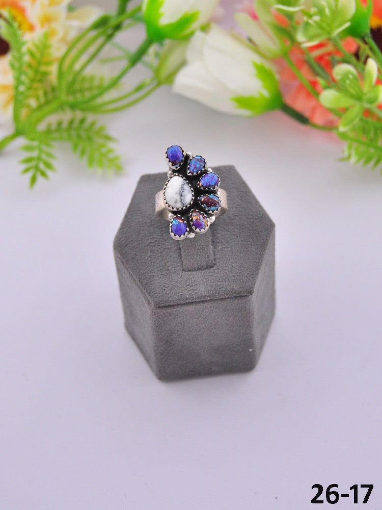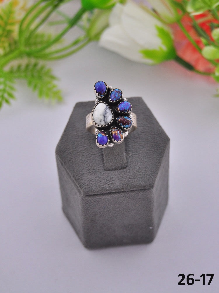 Southwest Made Multi Stone & Sterling Sliver Cluster Adjustable Ring