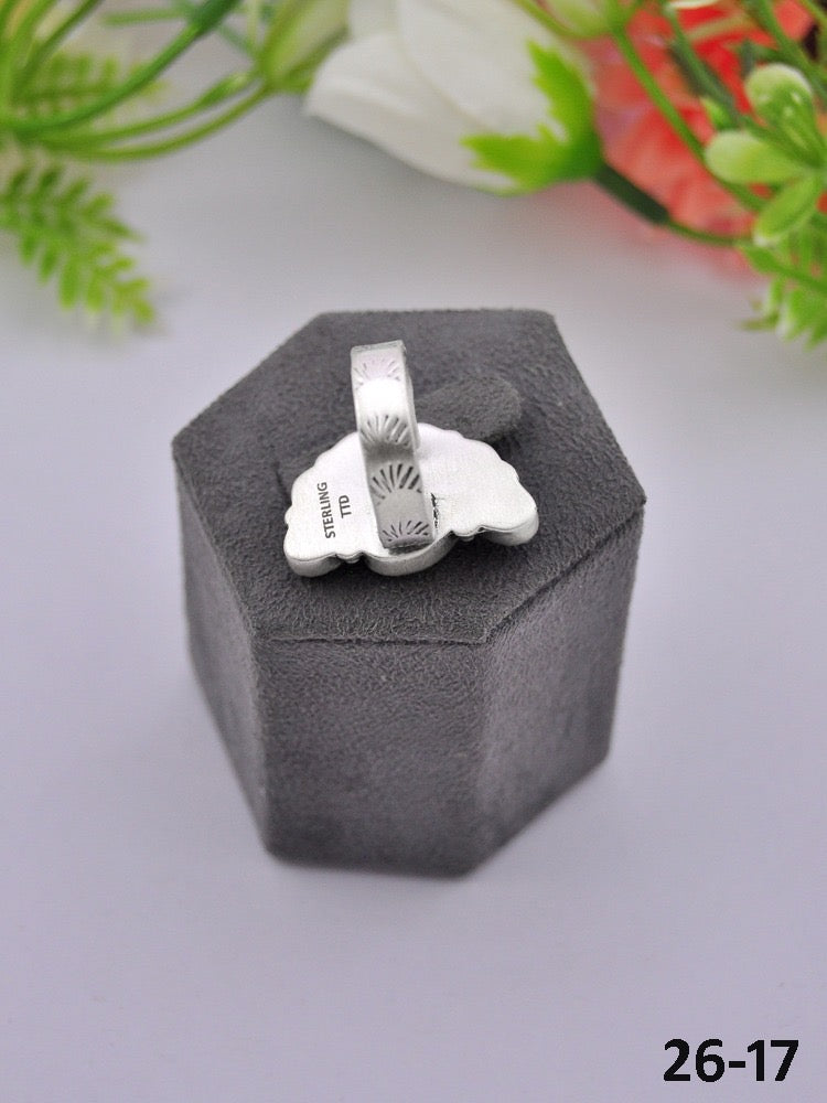 Southwest Made Multi Stone & Sterling Sliver Cluster Adjustable Ring. It measures 1 inch long and 5/8 of an inch wide. Signed by the artist and stamped sterling silver. Stones may differ due to natural stones.