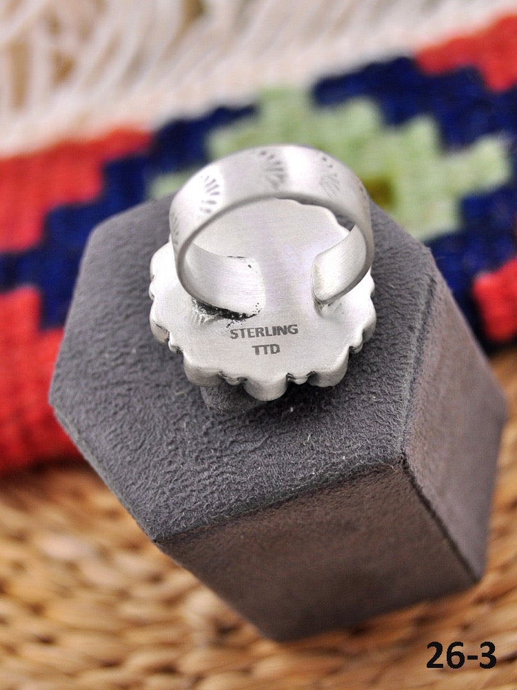 Southwest Made Multi Stone & Sterling Sliver Cluster Adjustable Ring