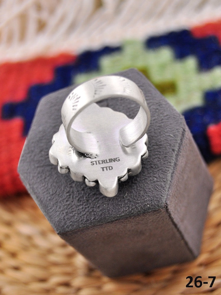 Southwest Made Multi Stone & Sterling Sliver Cluster Adjustable Ring