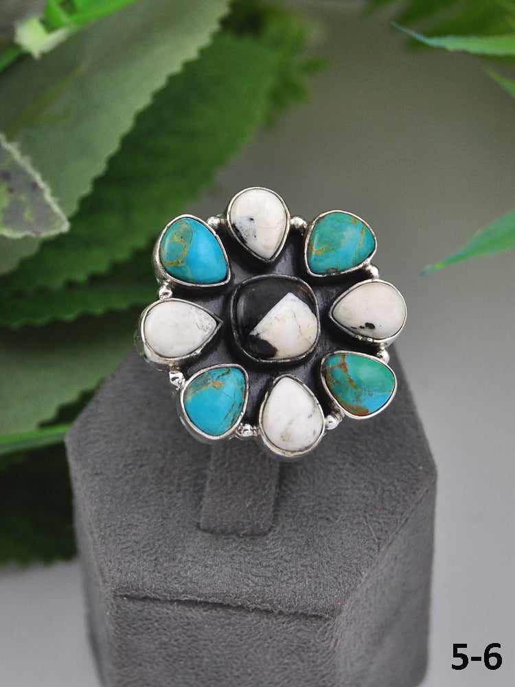Southwest Made Multi Stone & Sterling Sliver Cluster Adjustable Ring