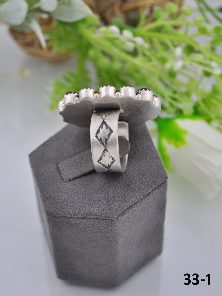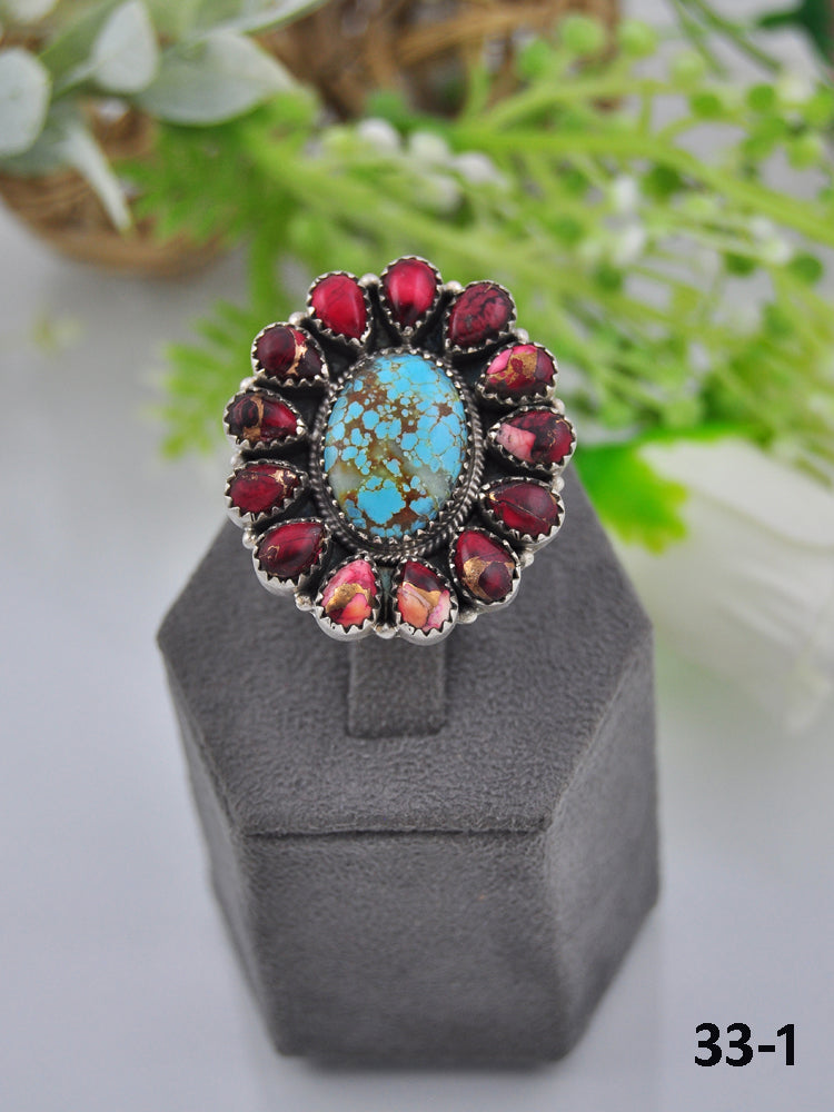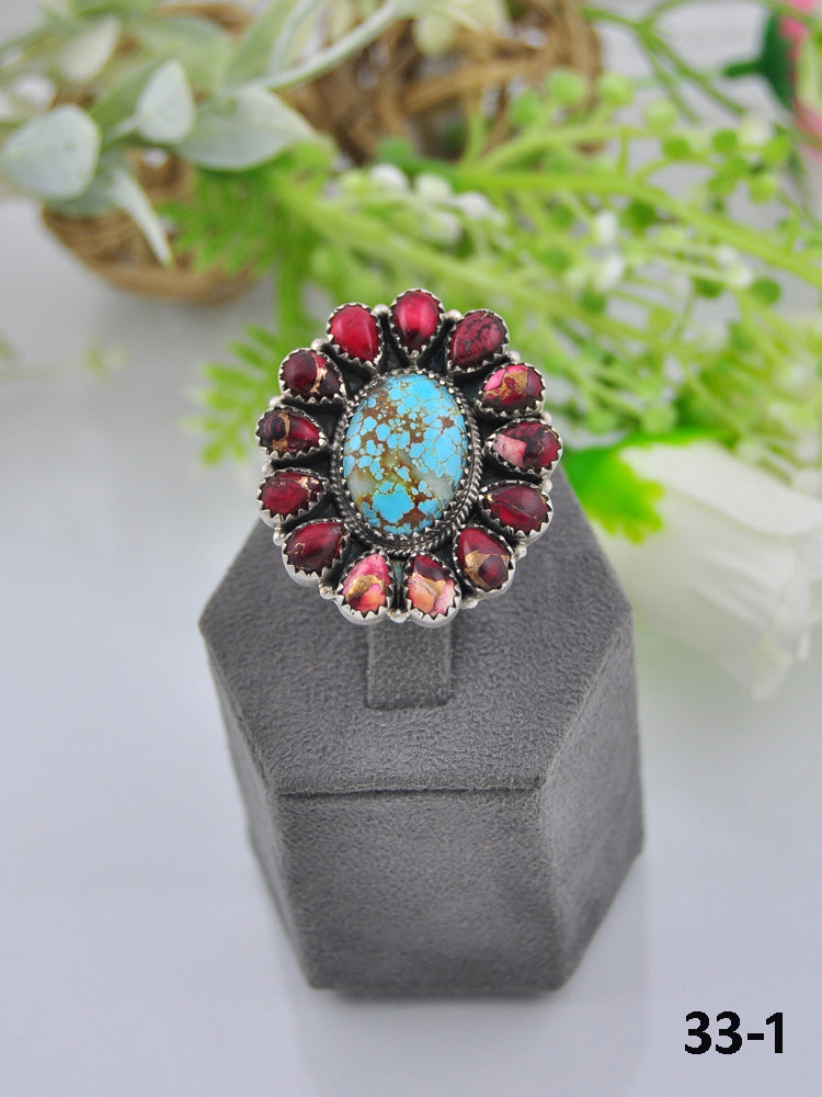 Southwest Made Multi Stone & Sterling Sliver Cluster Adjustable Ring
