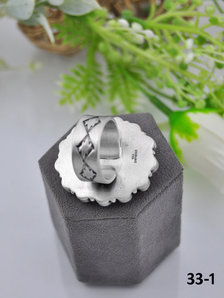Southwest Made Multi Stone & Sterling Sliver Cluster Adjustable Ring. It measures 1 7/8 inches long and 1 1/4 inches wide. Signed by the artist and stamped sterling silver. Stones may differ due to natural stones.