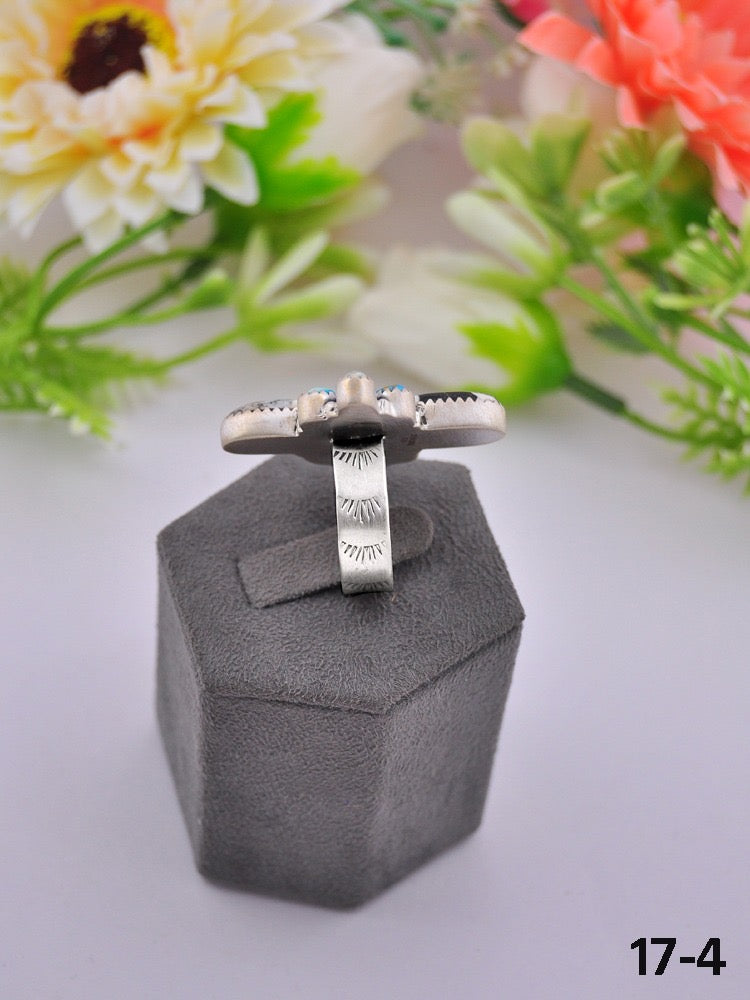 Southwest Made Multi Stone & Sterling Sliver Cluster Adjustable Ring. It measures 1 1/2 inches long and 1 1/4 inches wide. Signed by the artist and stamped sterling silver. Stones may differ due to natural stones.