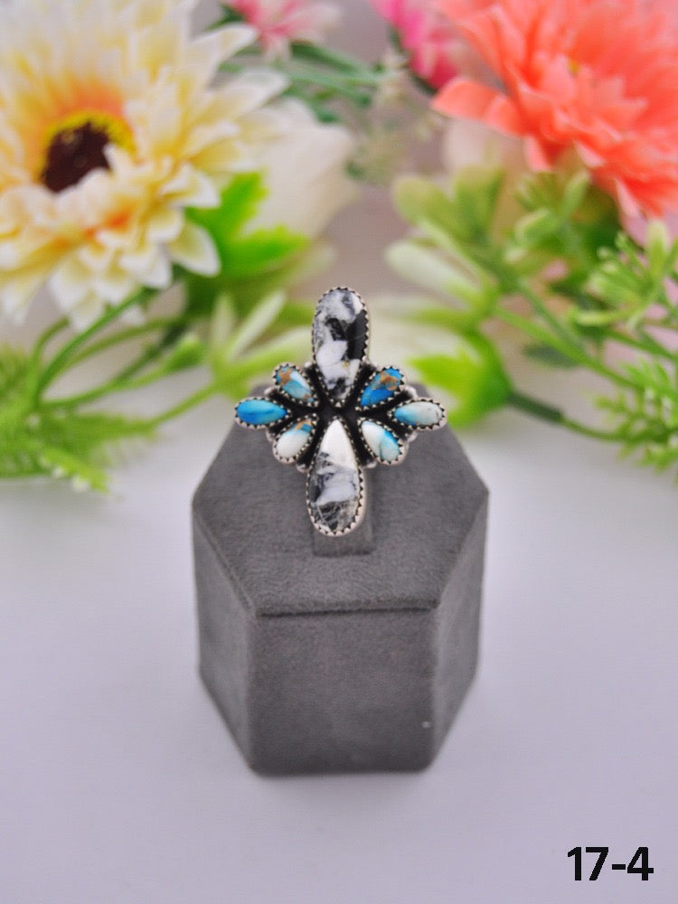 Southwest Made Multi Stone & Sterling Sliver Cluster Adjustable Ring