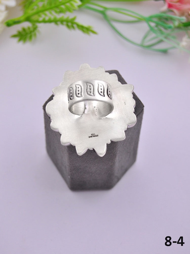 Southwest Made Multi Stone & Sterling Sliver Cluster Adjustable Ring. It measures 1 3/8 inches long and 1 7/8 inches wide. Signed by the artist and stamped sterling silver. Stones may differ due to natural stones.