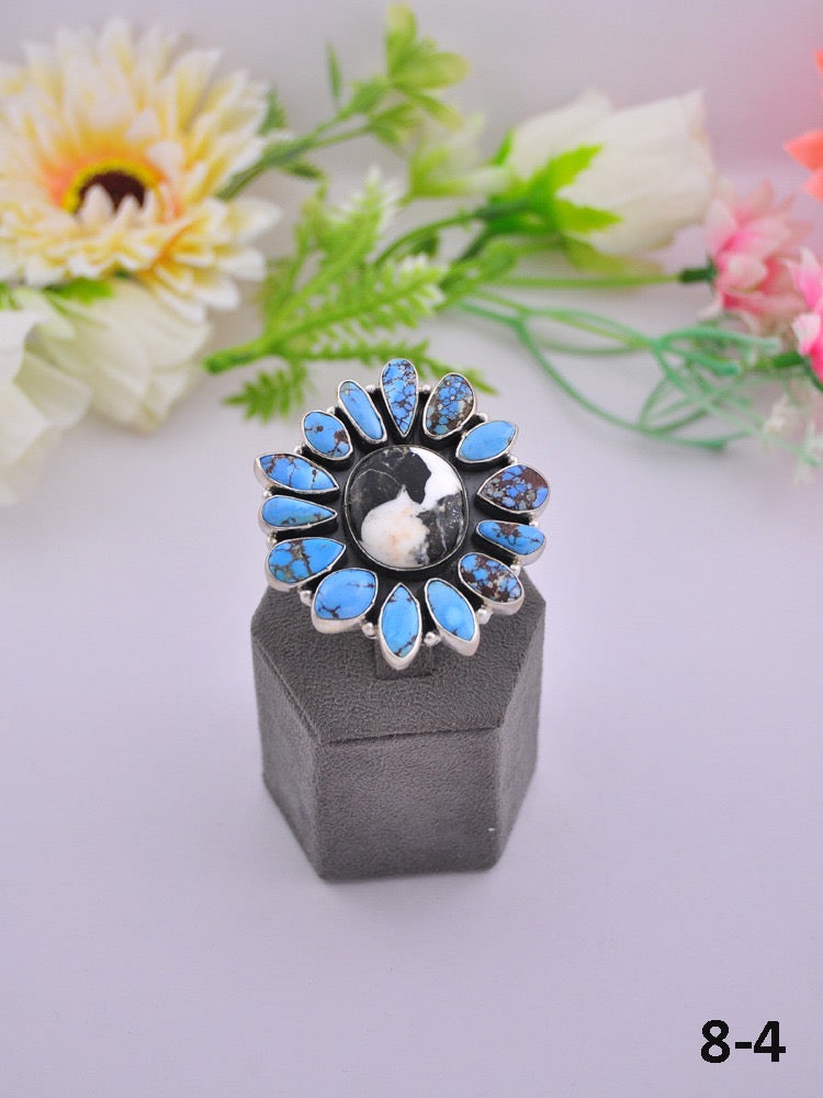 Southwest Made Multi Stone & Sterling Sliver Cluster Adjustable Ring
