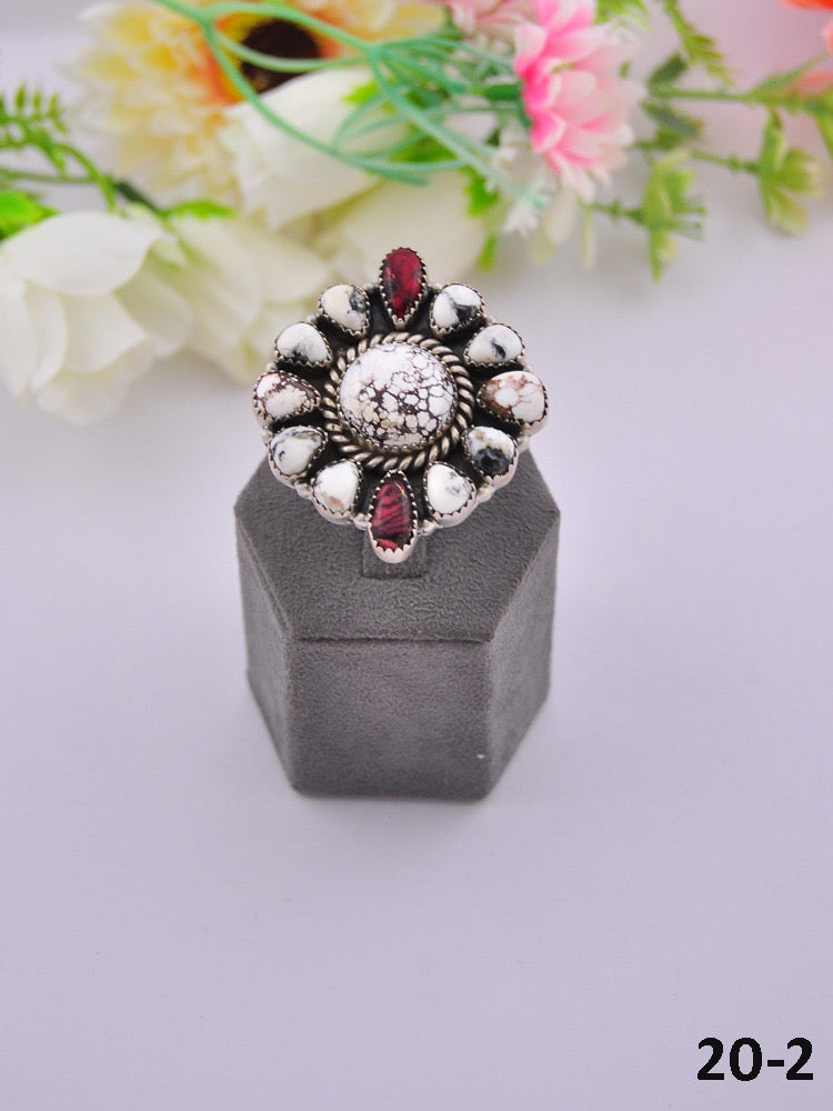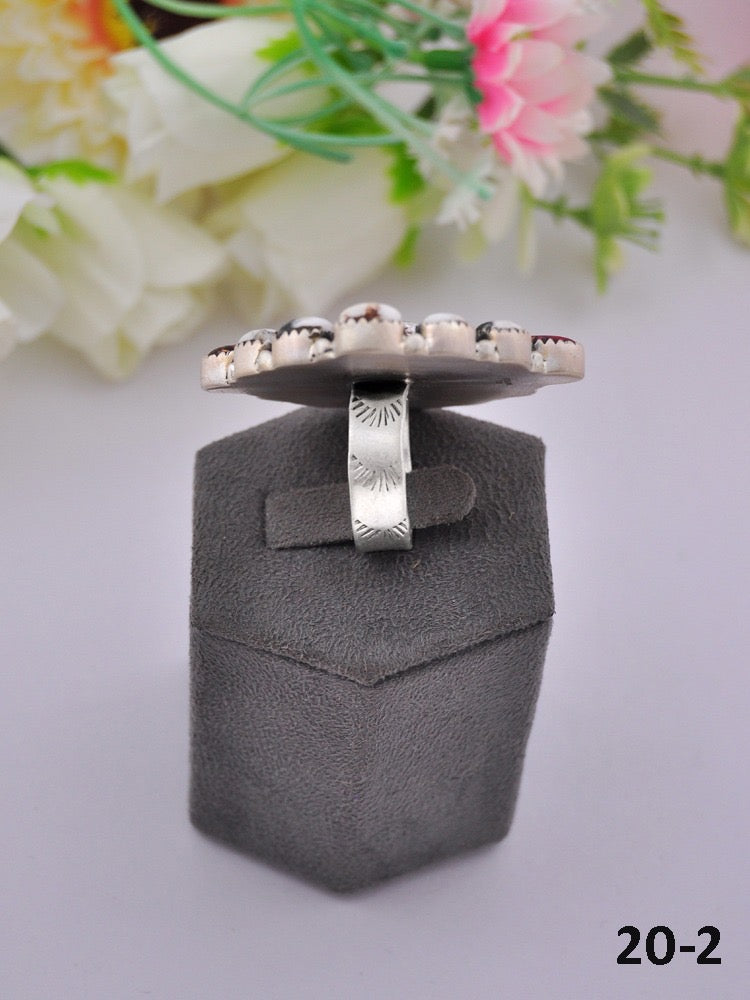 Southwest Made Multi Stone & Sterling Sliver Cluster Adjustable Ring