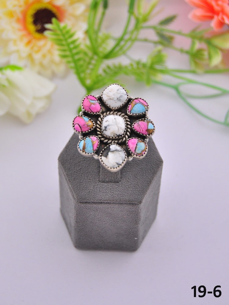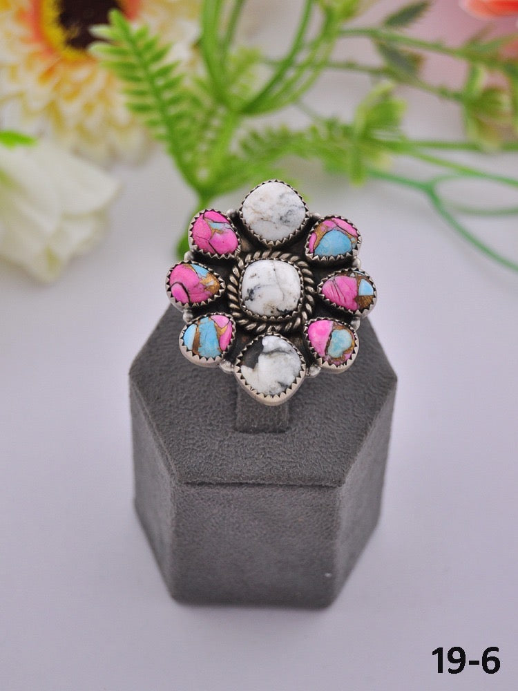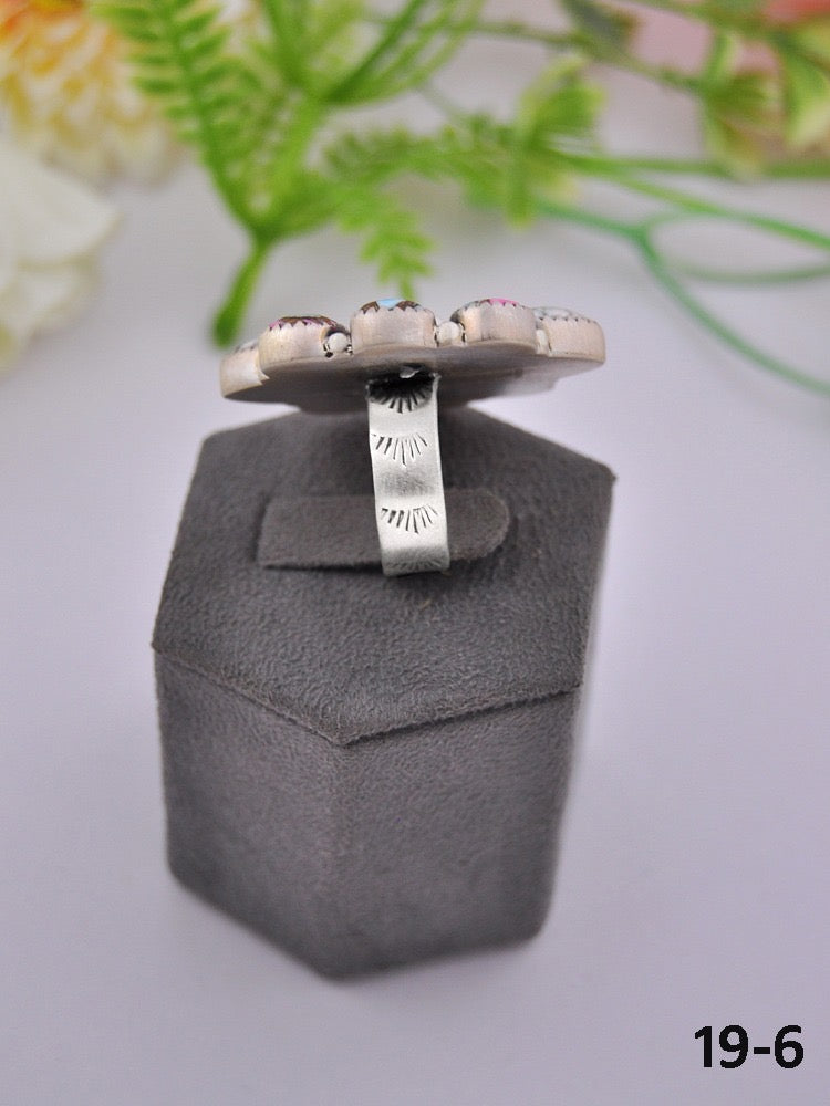 Southwest Made Multi Stone & Sterling Sliver Cluster Adjustable Ring