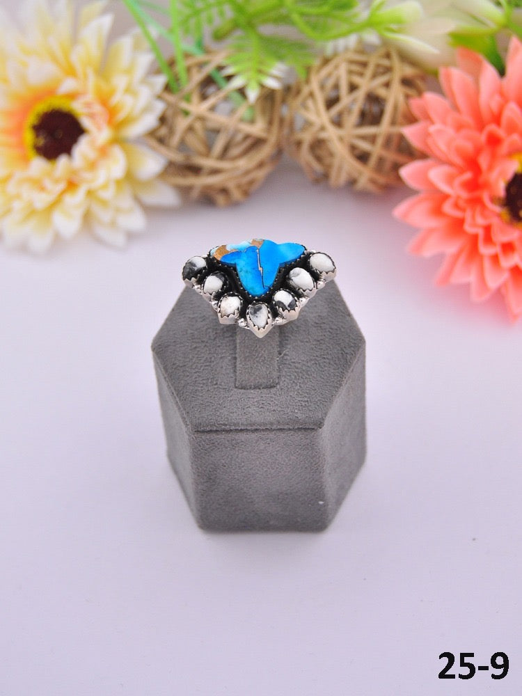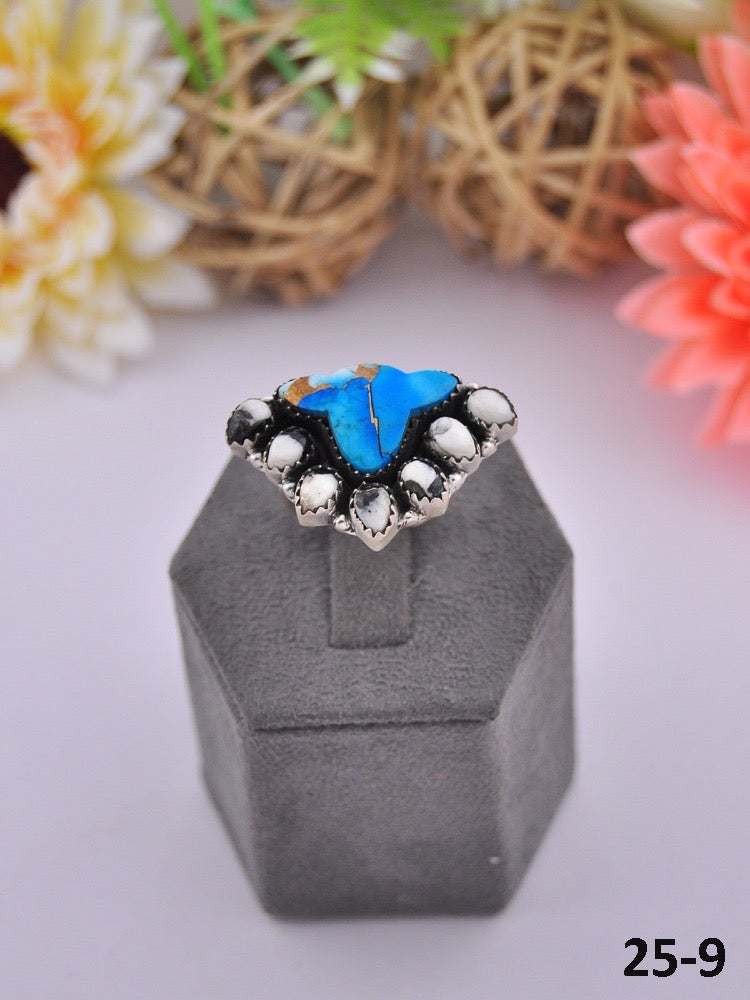 Southwest Made Multi Stone & Sterling Sliver Cluster Adjustable Ring