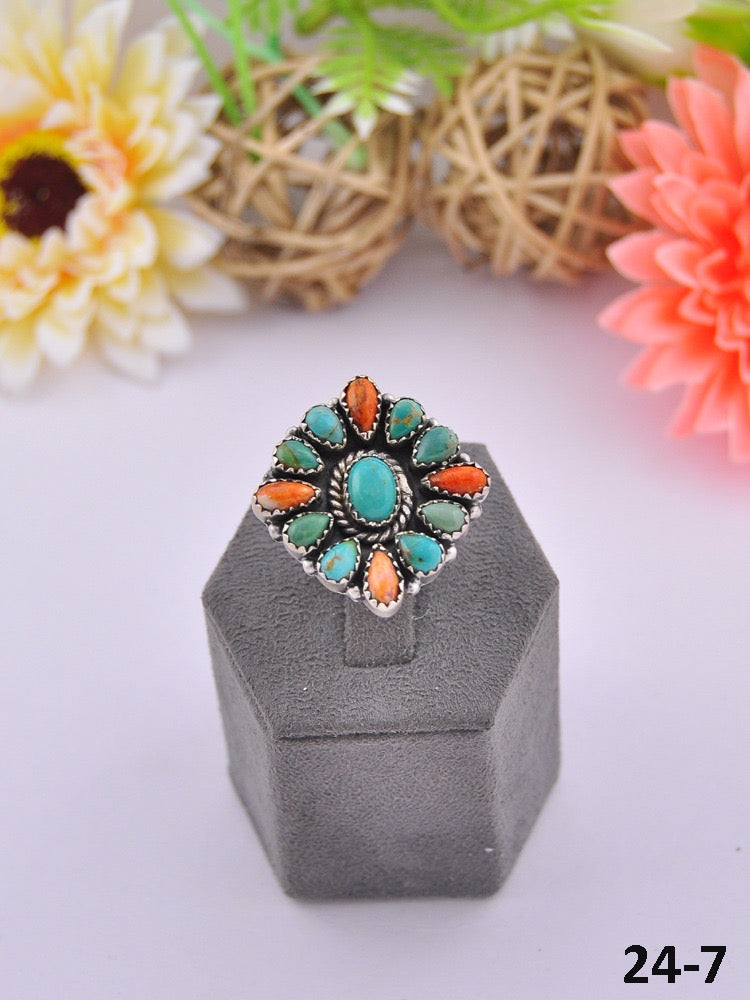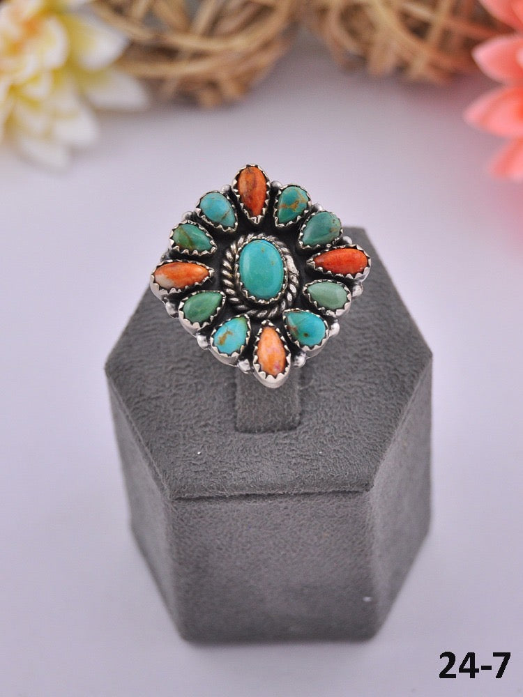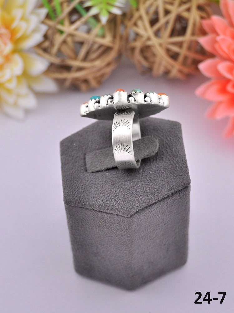 Southwest Made Multi Stone & Sterling Sliver Cluster Adjustable Ring
