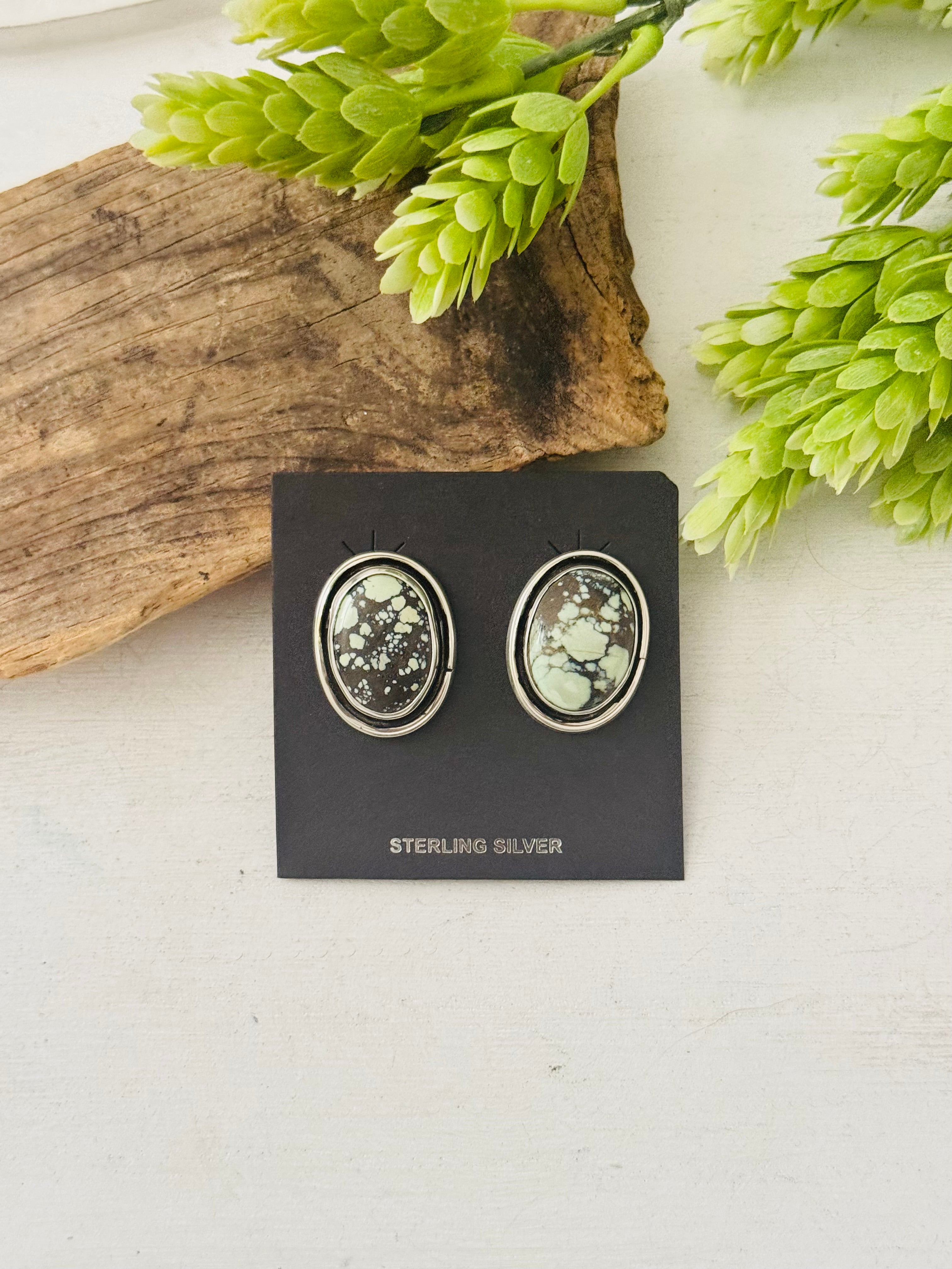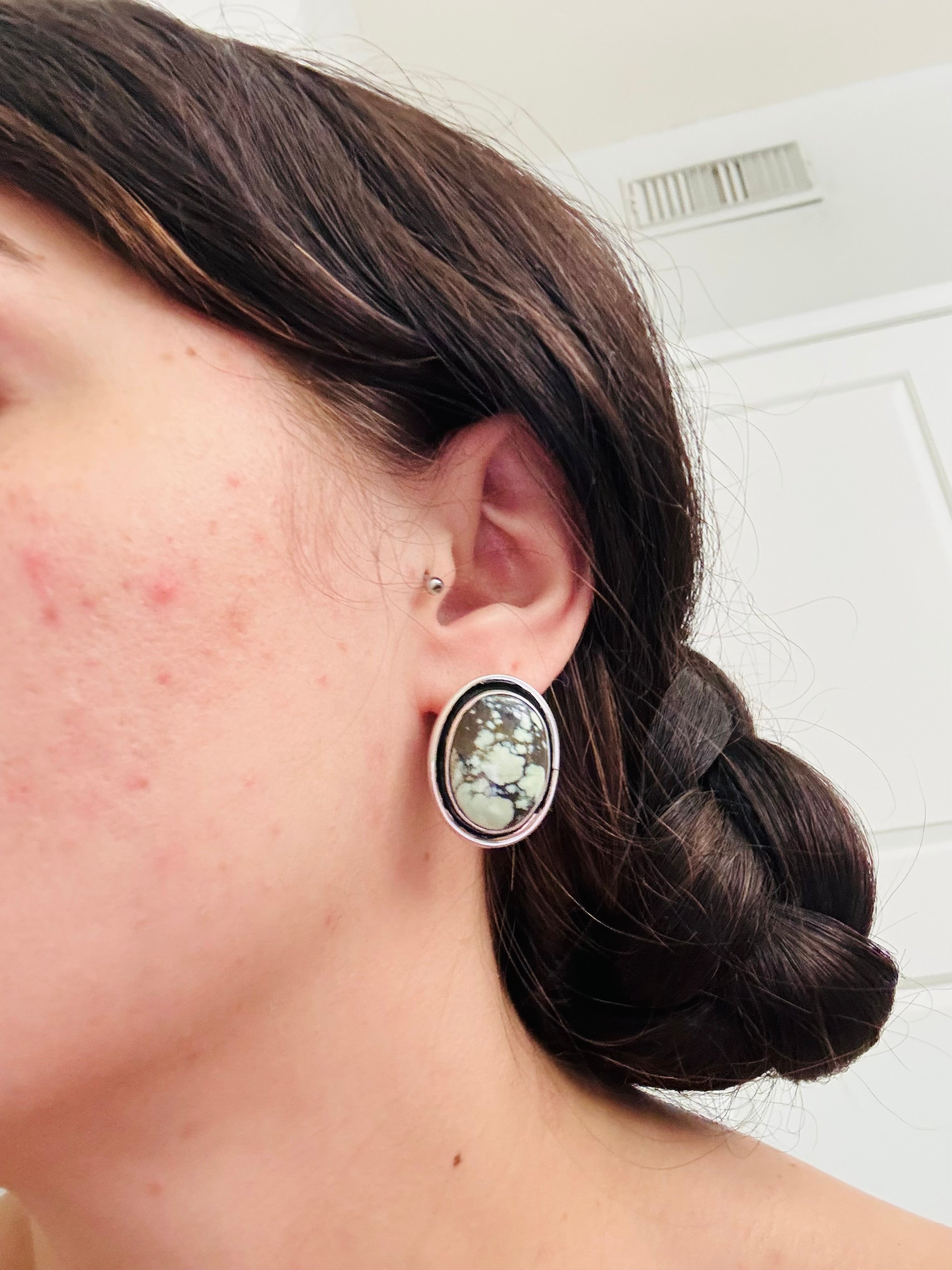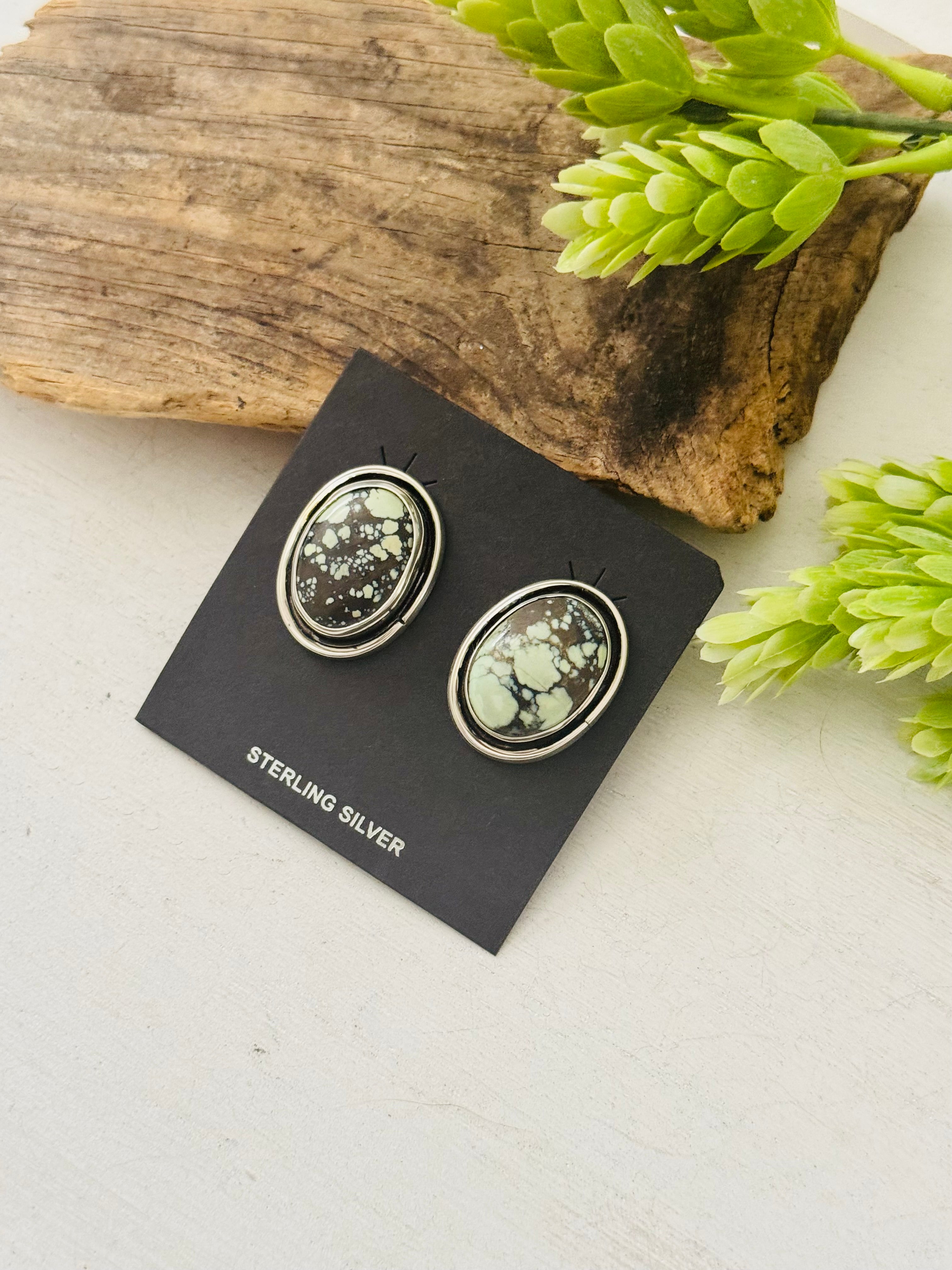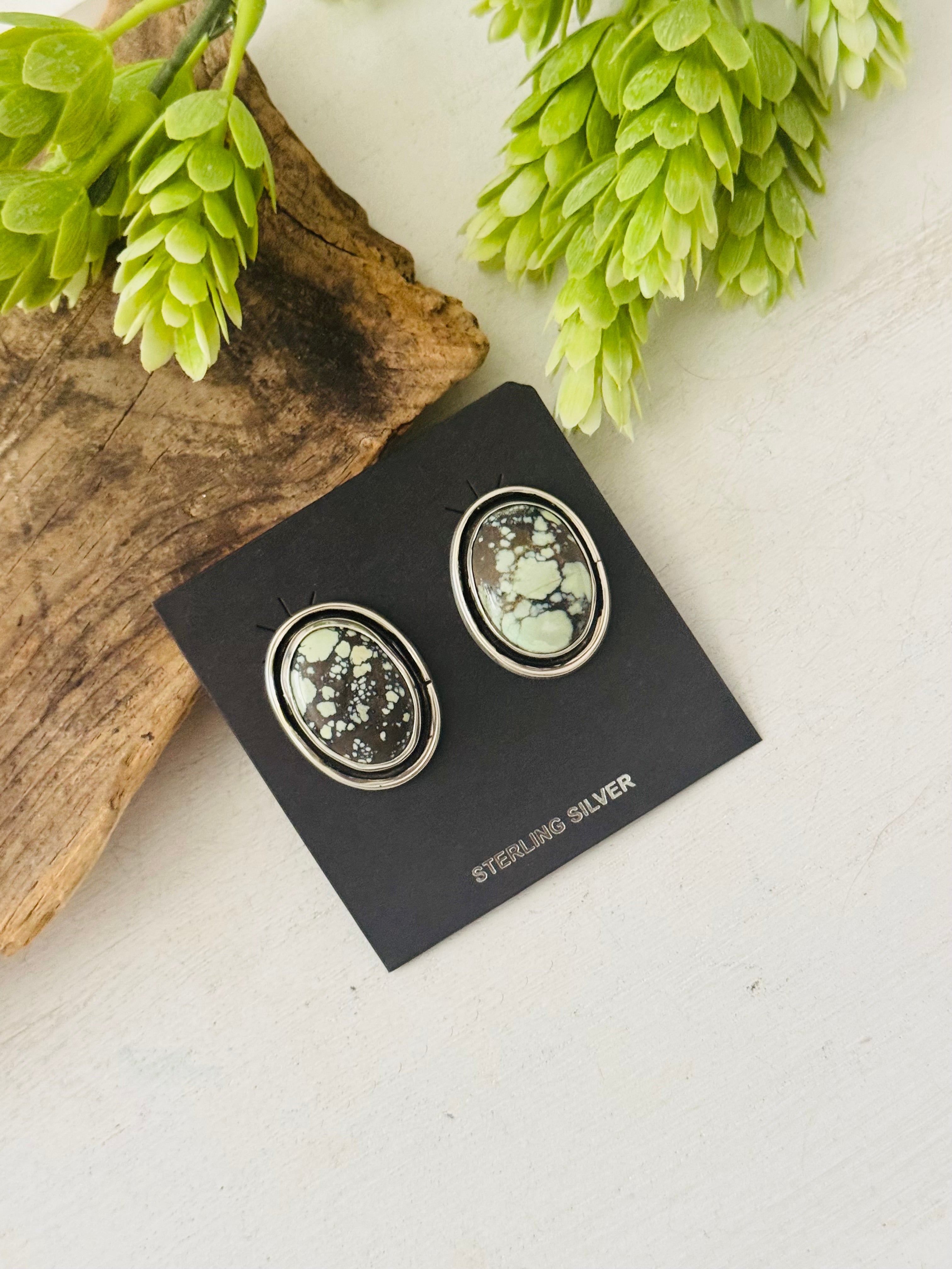 Navajo Made New Lander Variscite & Sterling Silver Post Earrings