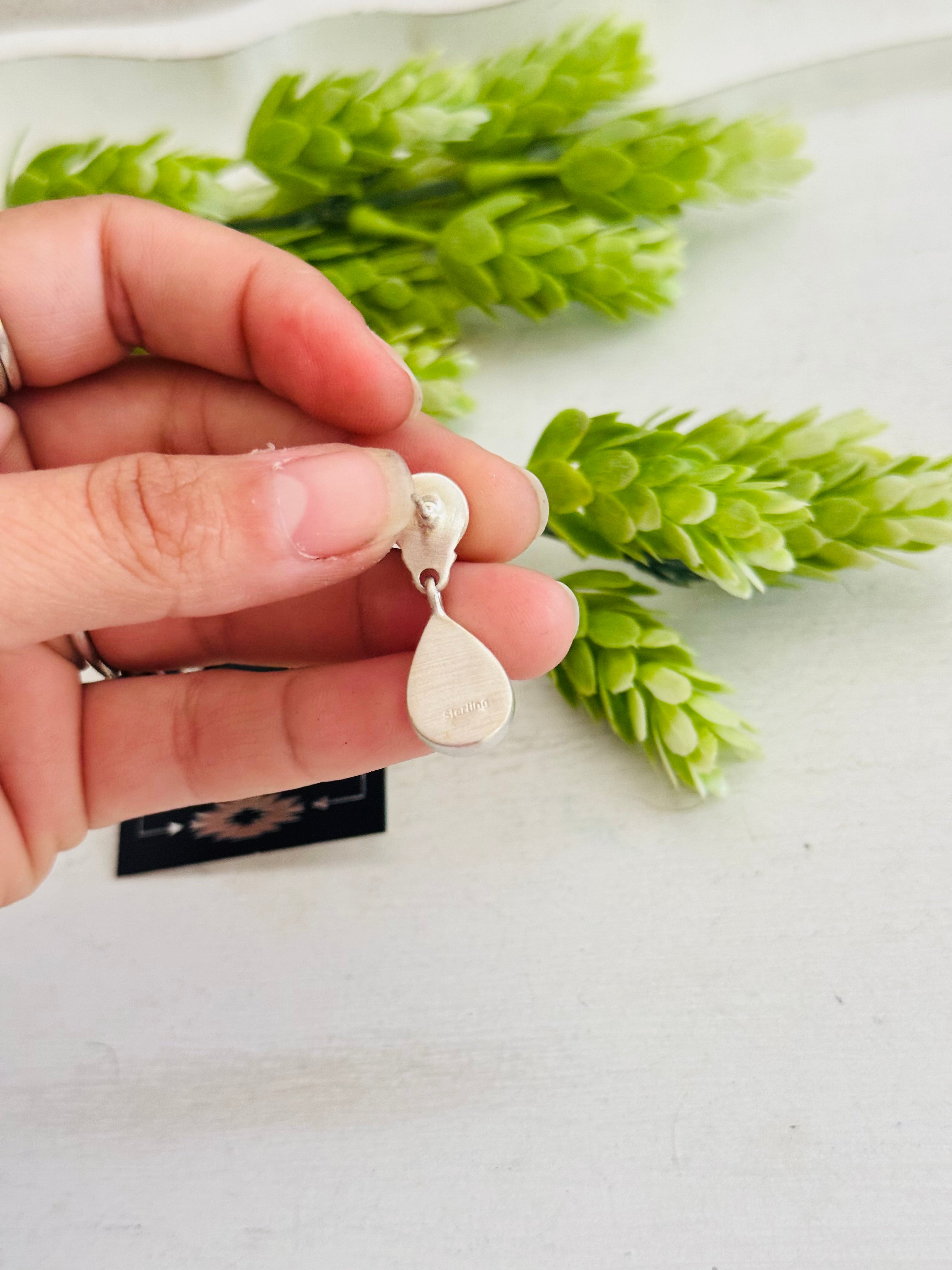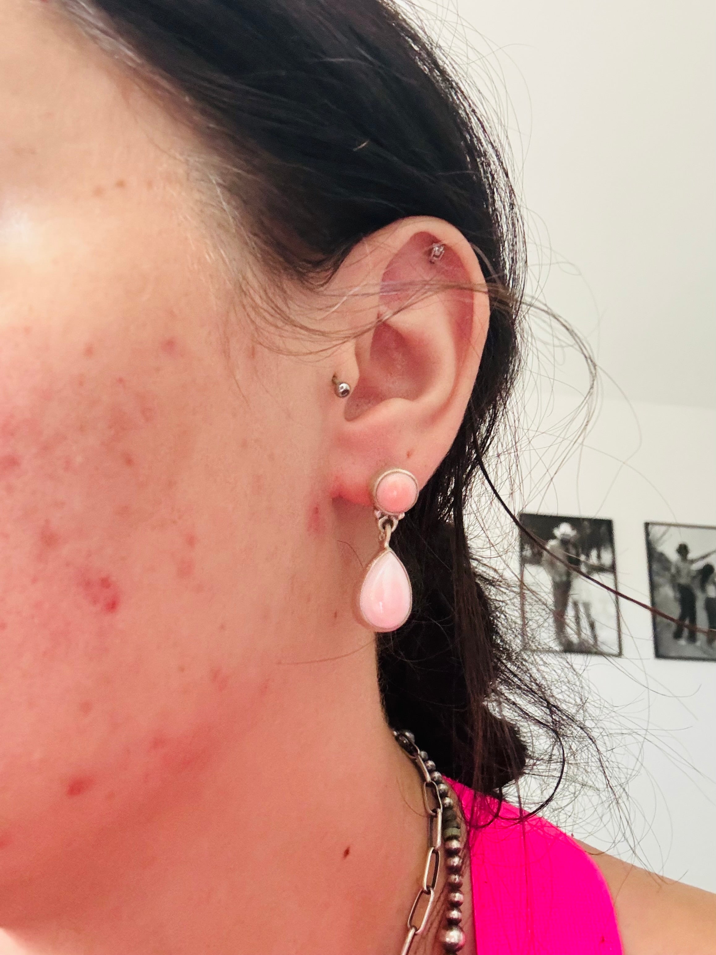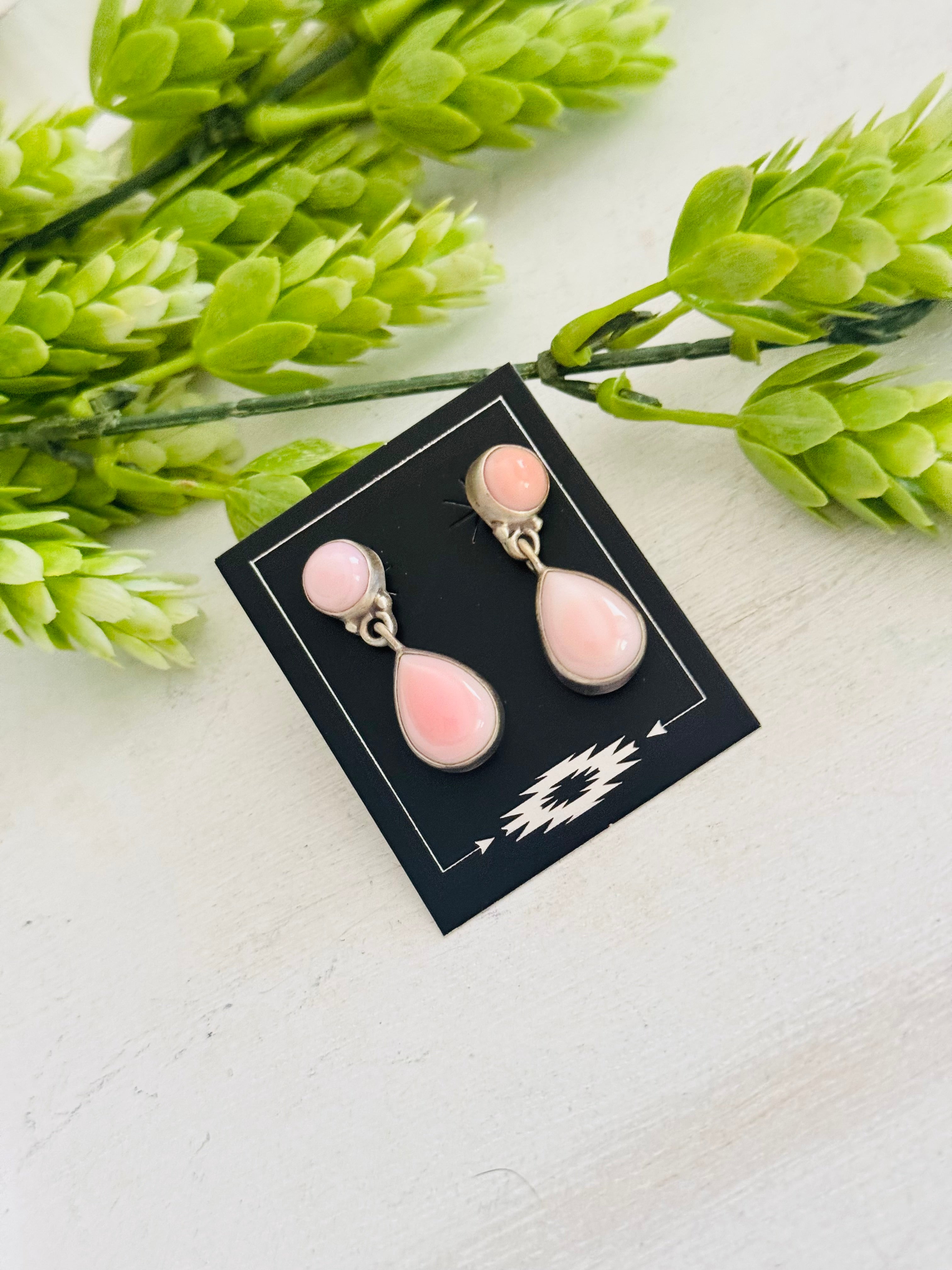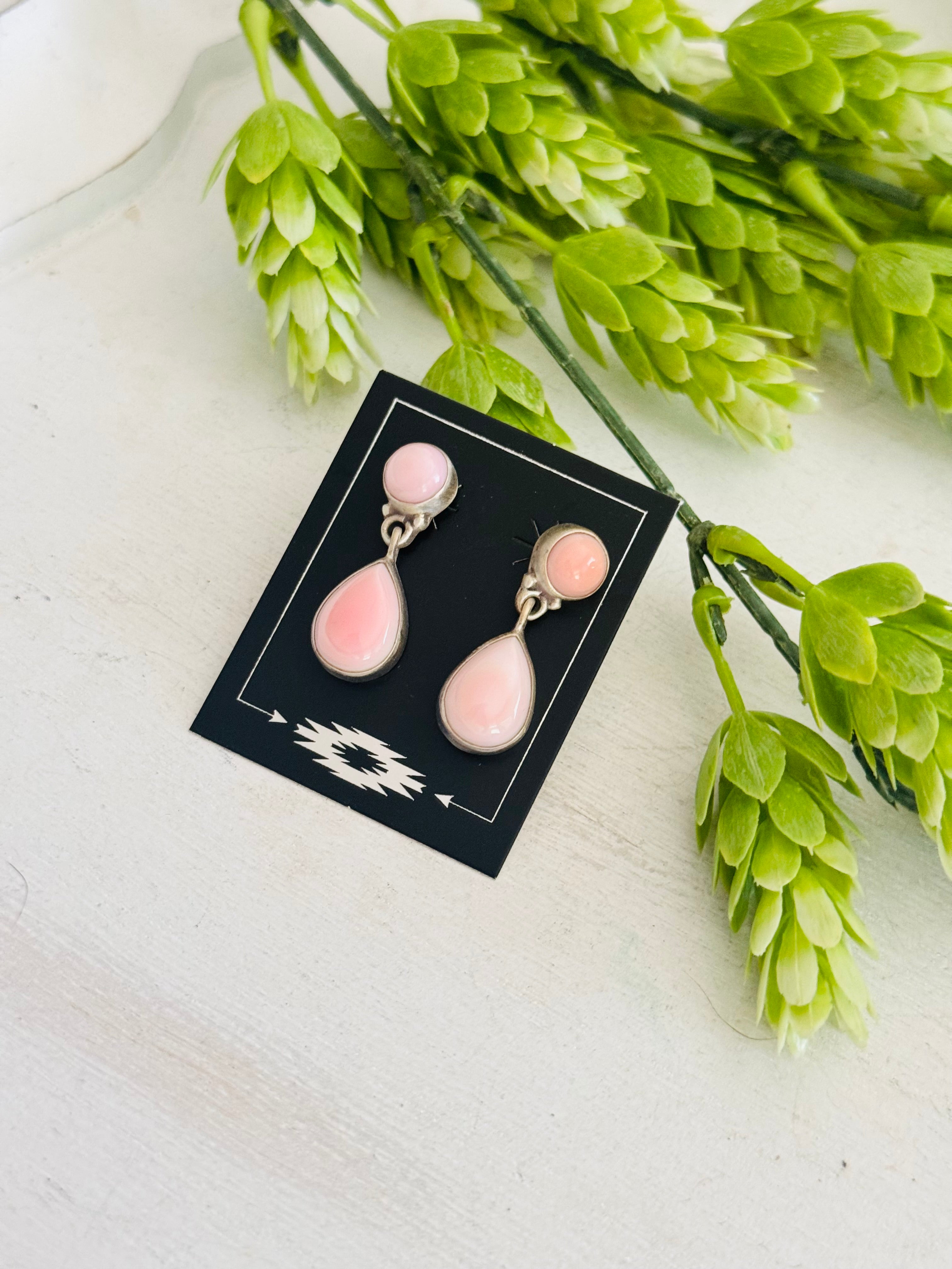 Southwest Made Pink Conch & Sterling Silver Post Dangle Earrings