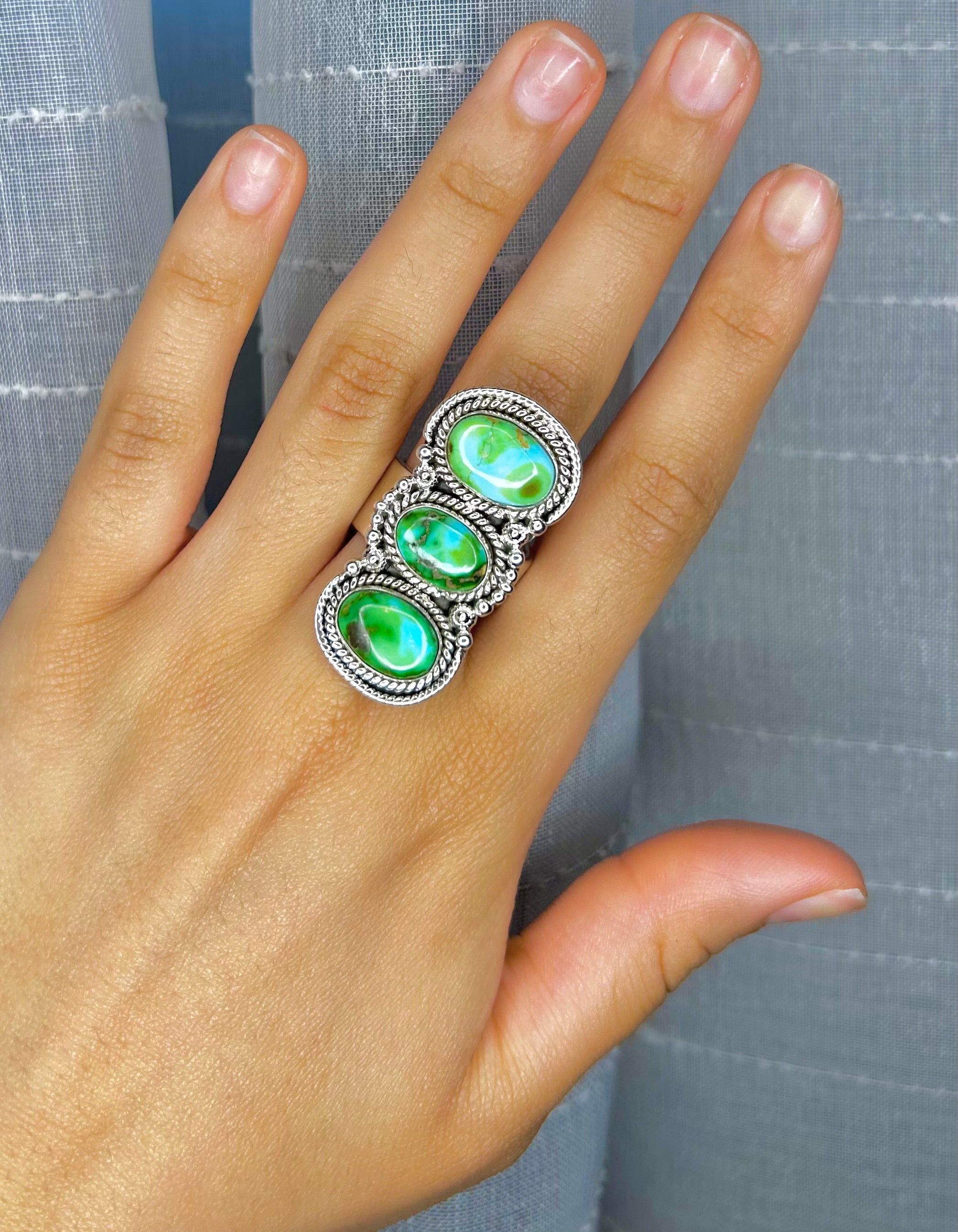 Southwest Made Sonoran Mountain Turquoise & Sterling Sliver Cluster Ring