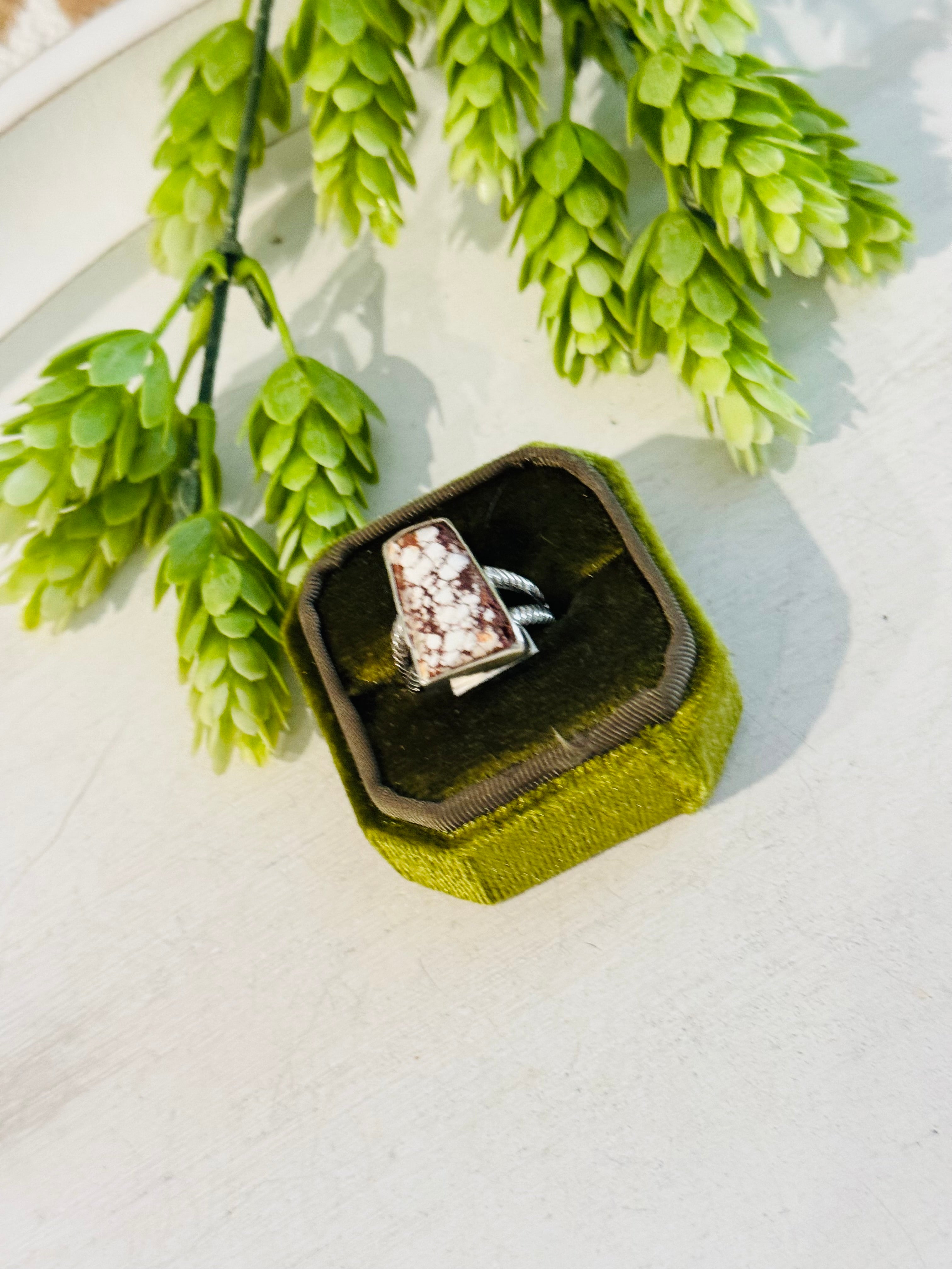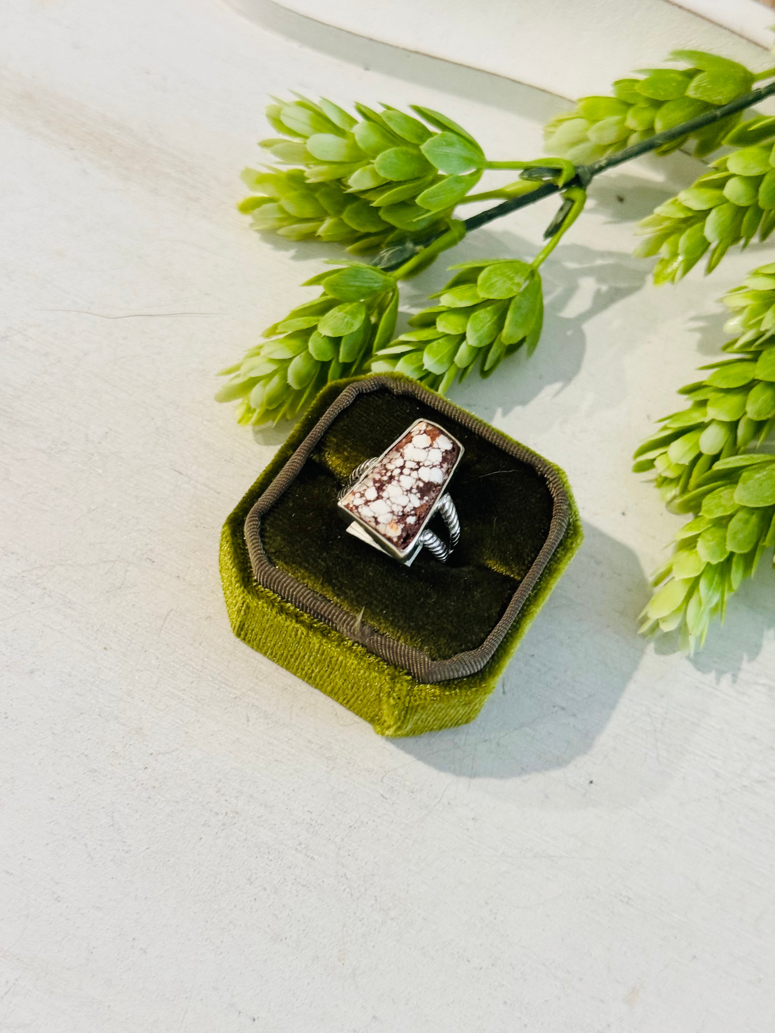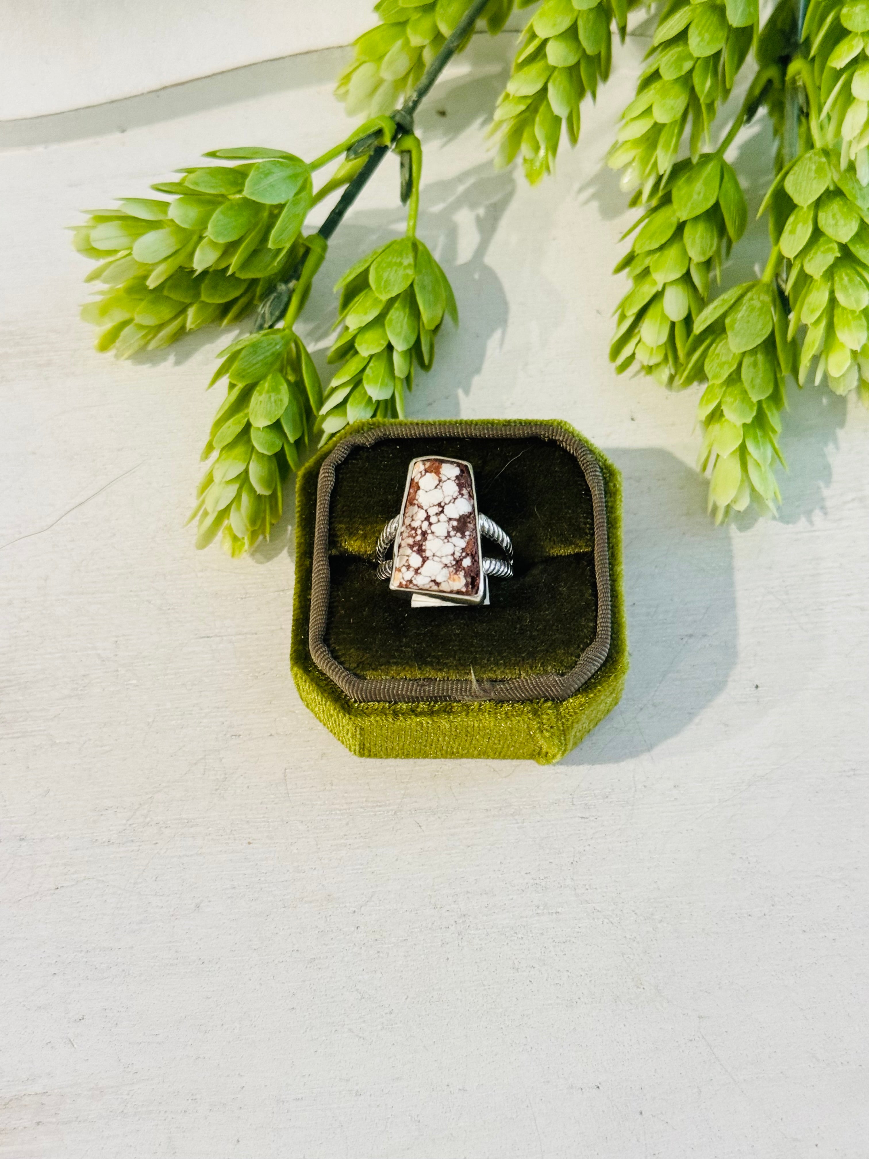 Southwest Made Wild Horse & Sterling Sliver Ring Size 7.5. It measures just over 7/8 of an inch long and 5/8 of an inch wide.