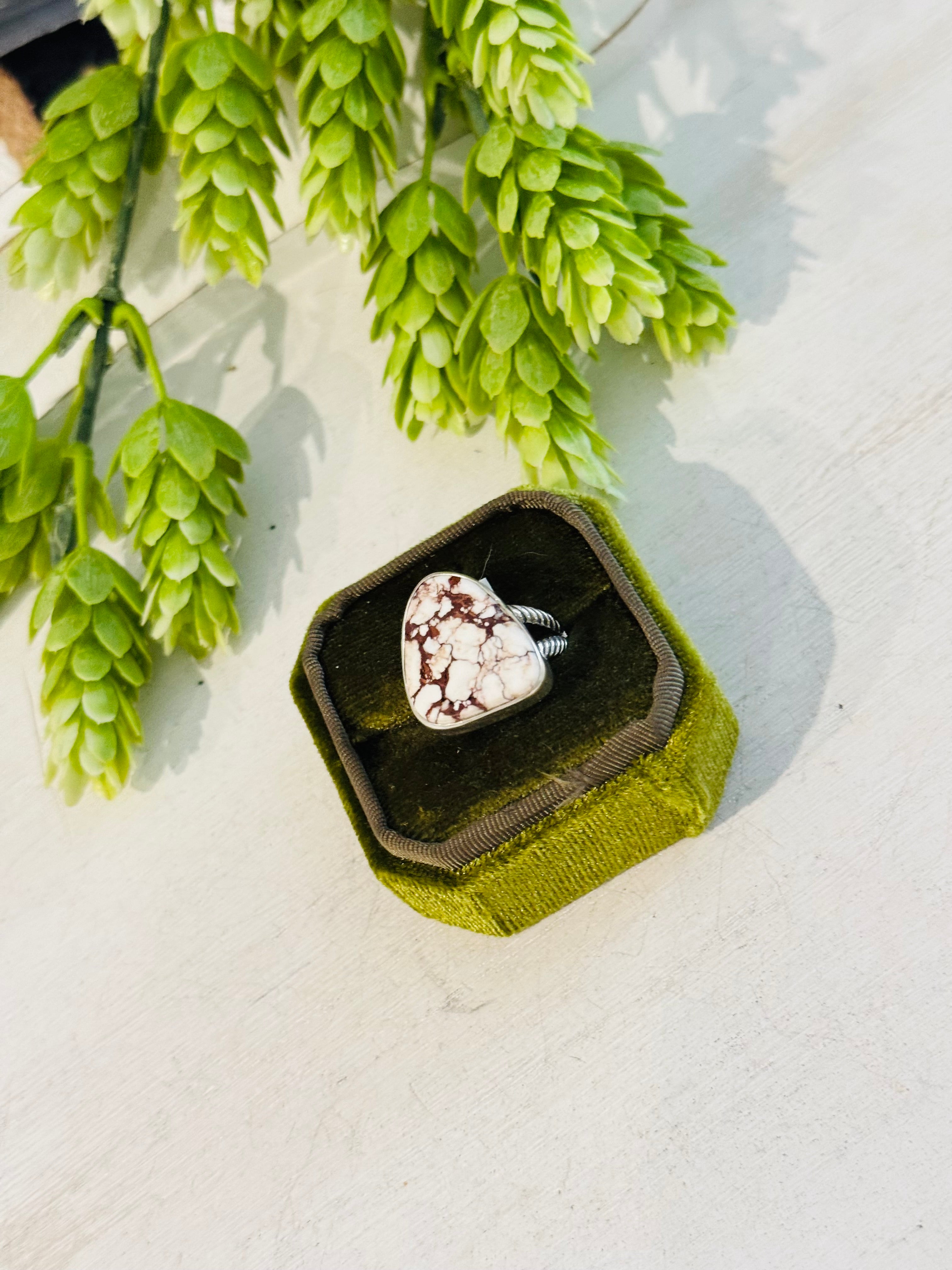 Southwest Made Wild Horse & Sterling Sliver Ring Size 7.75. It measures 7/8 of an inch long and 3/4 of an inch wide.