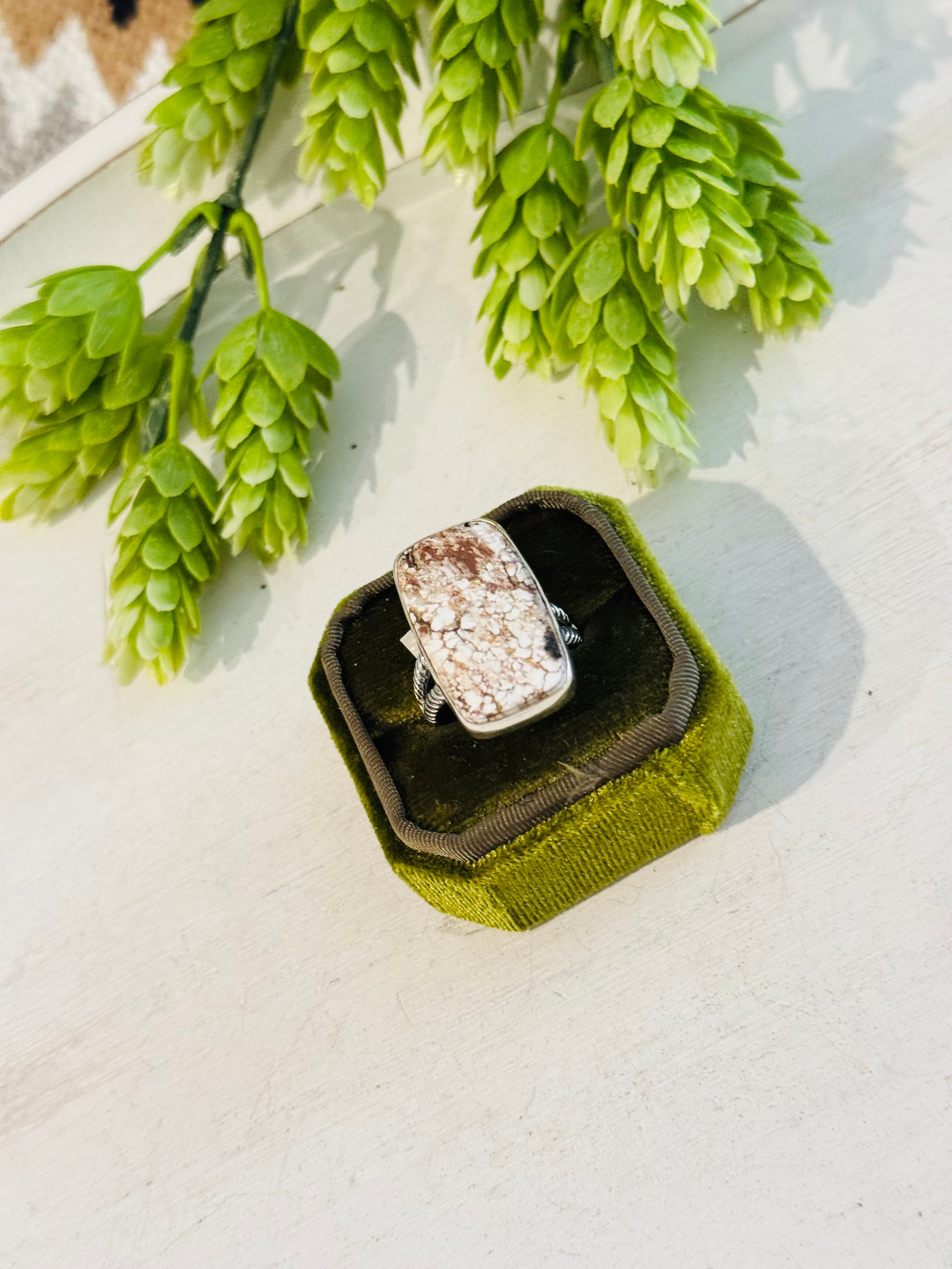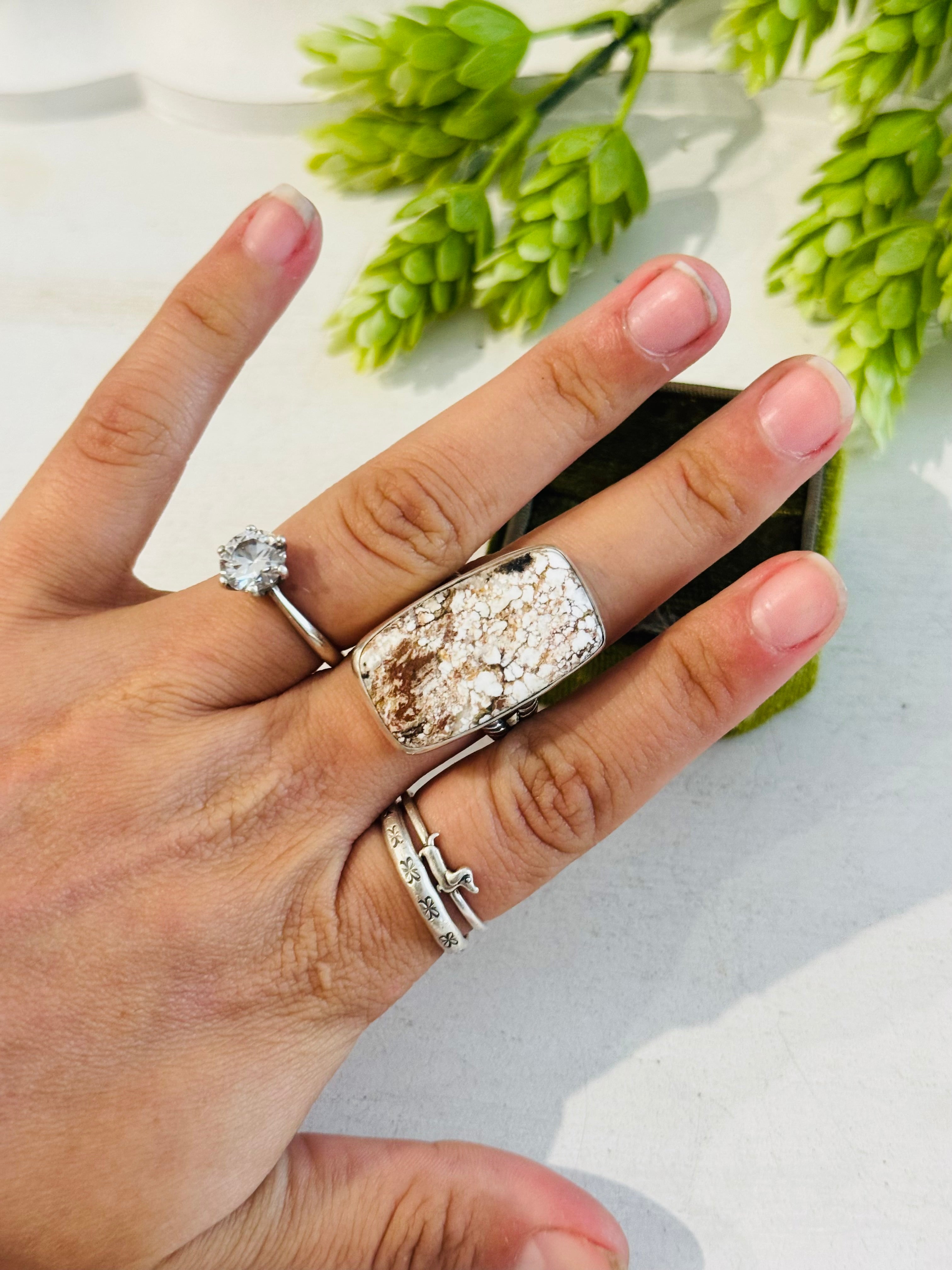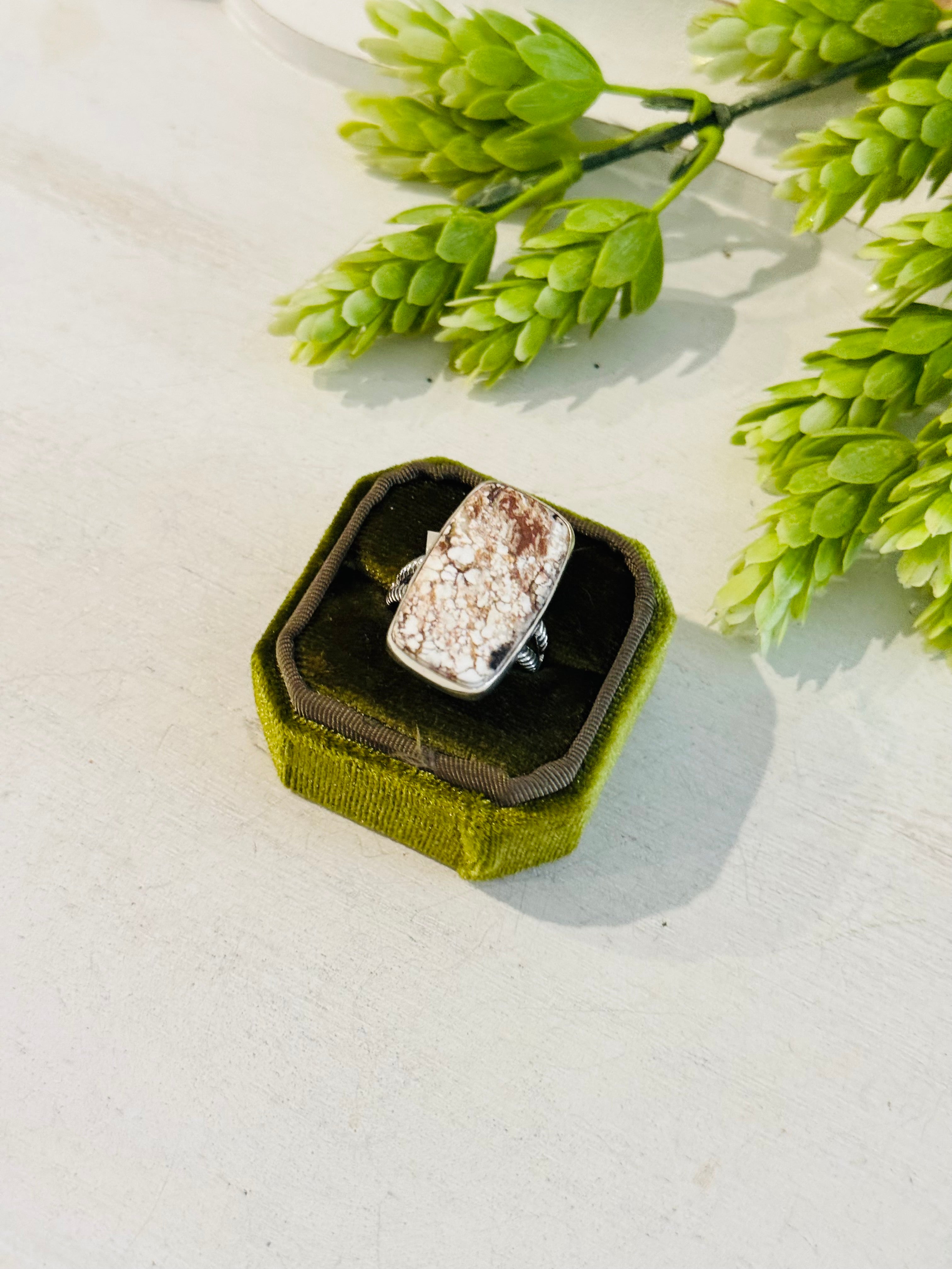 Southwest Made Wild Horse & Sterling Sliver Ring Size 10.5. It measures 1 1/8 inches long and 5/8 of an inch wide.