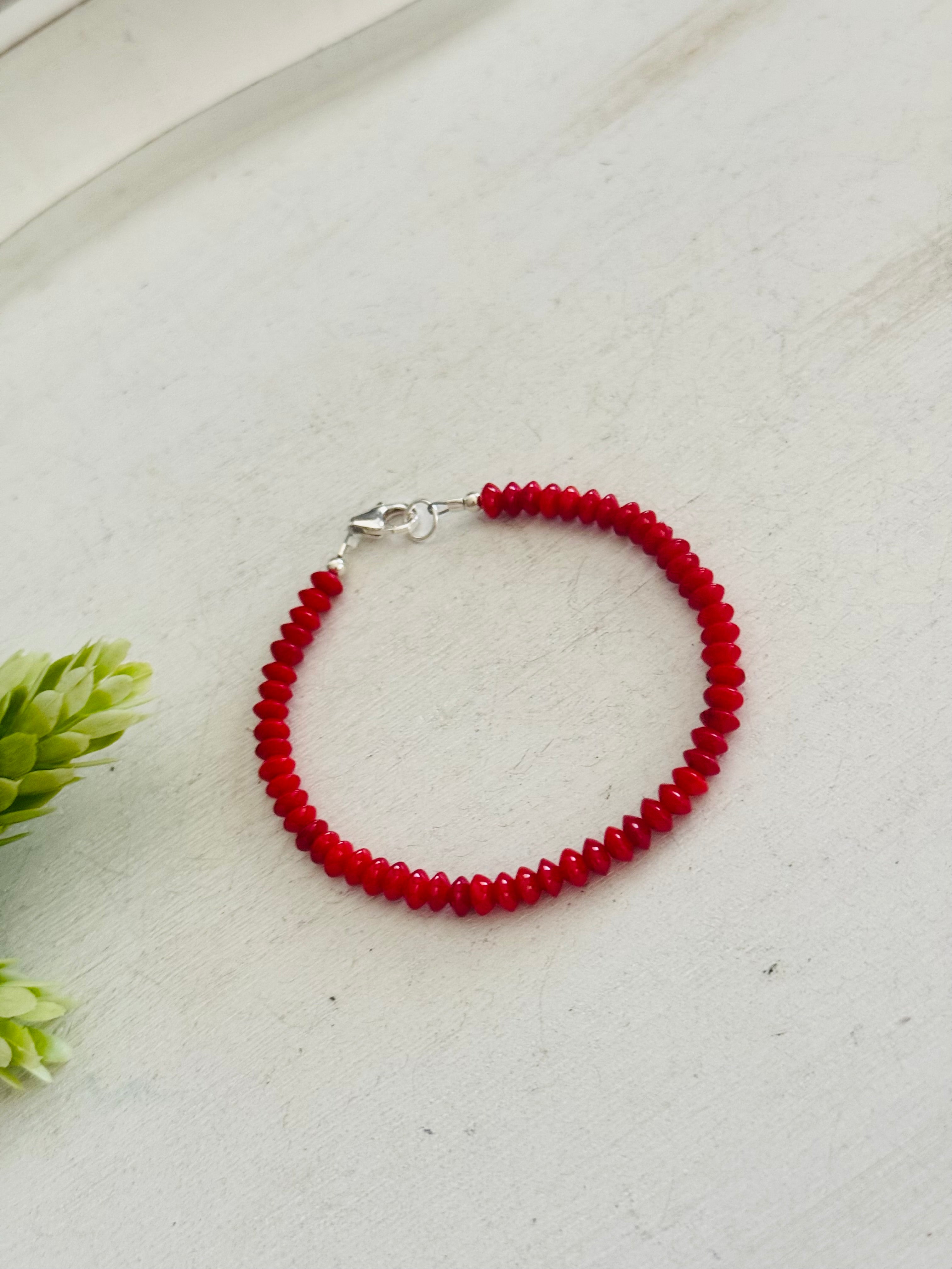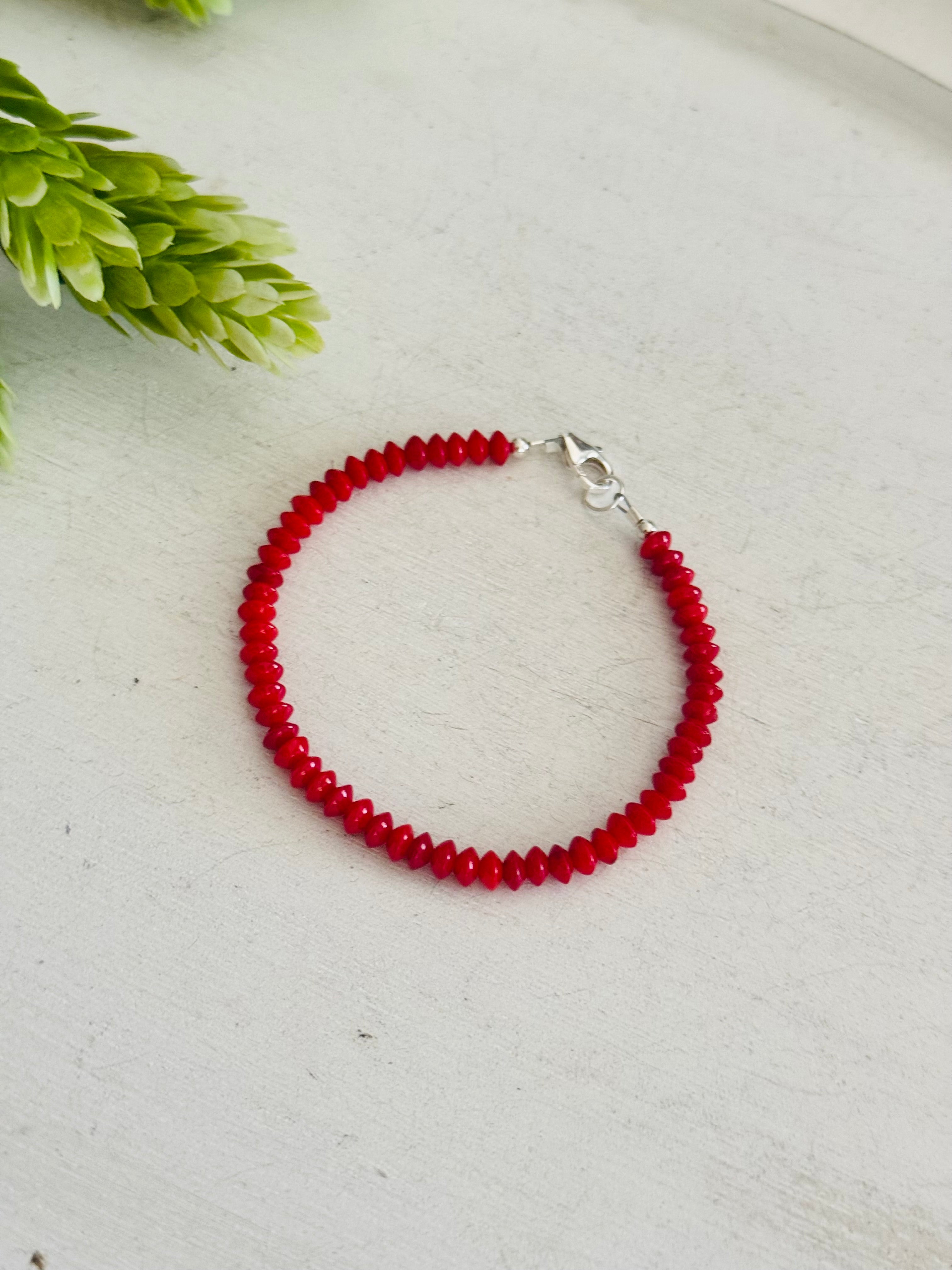 Southwest Strung Bamboo Coral & Sterling Silver Beaded Bracelet