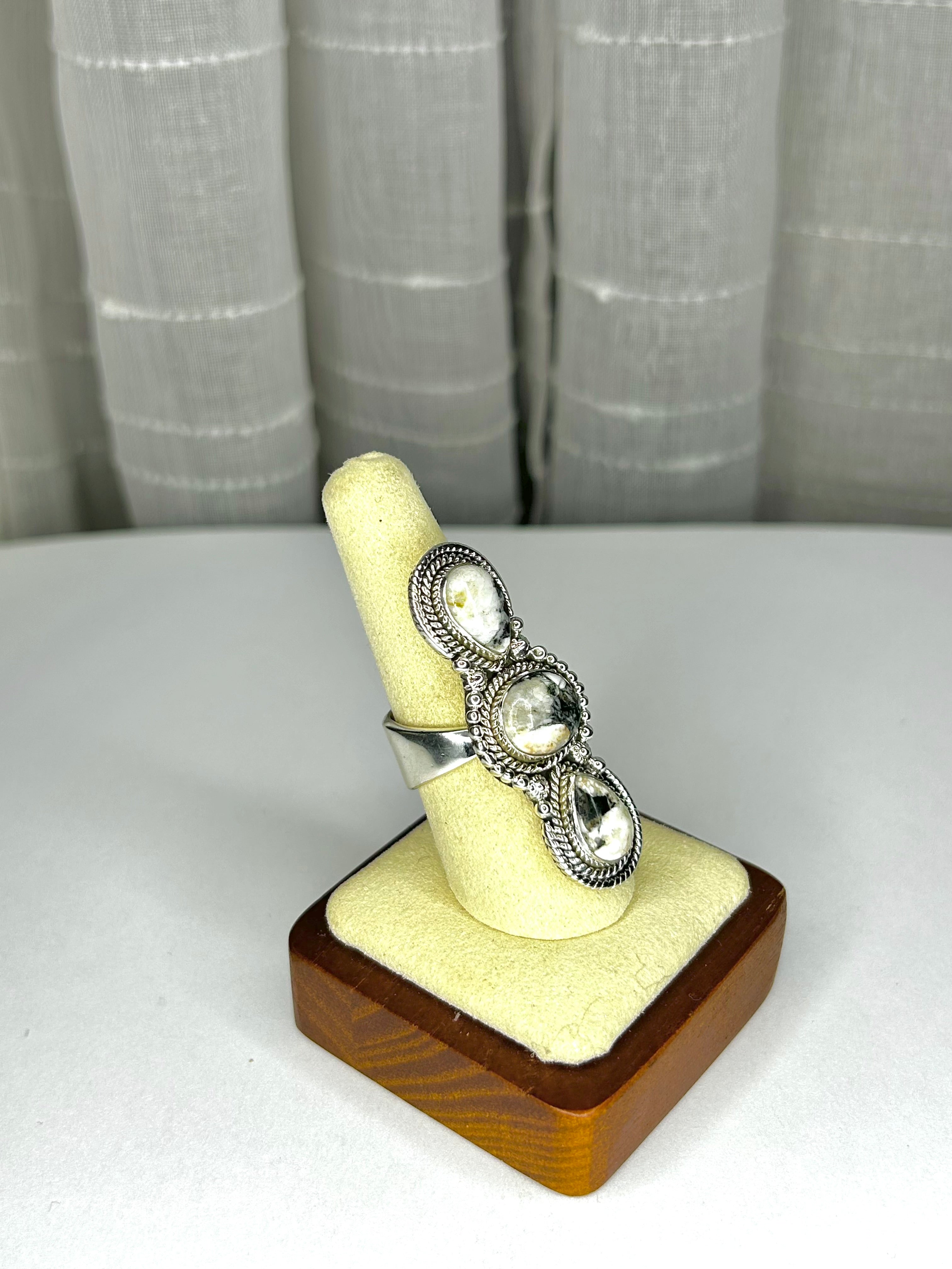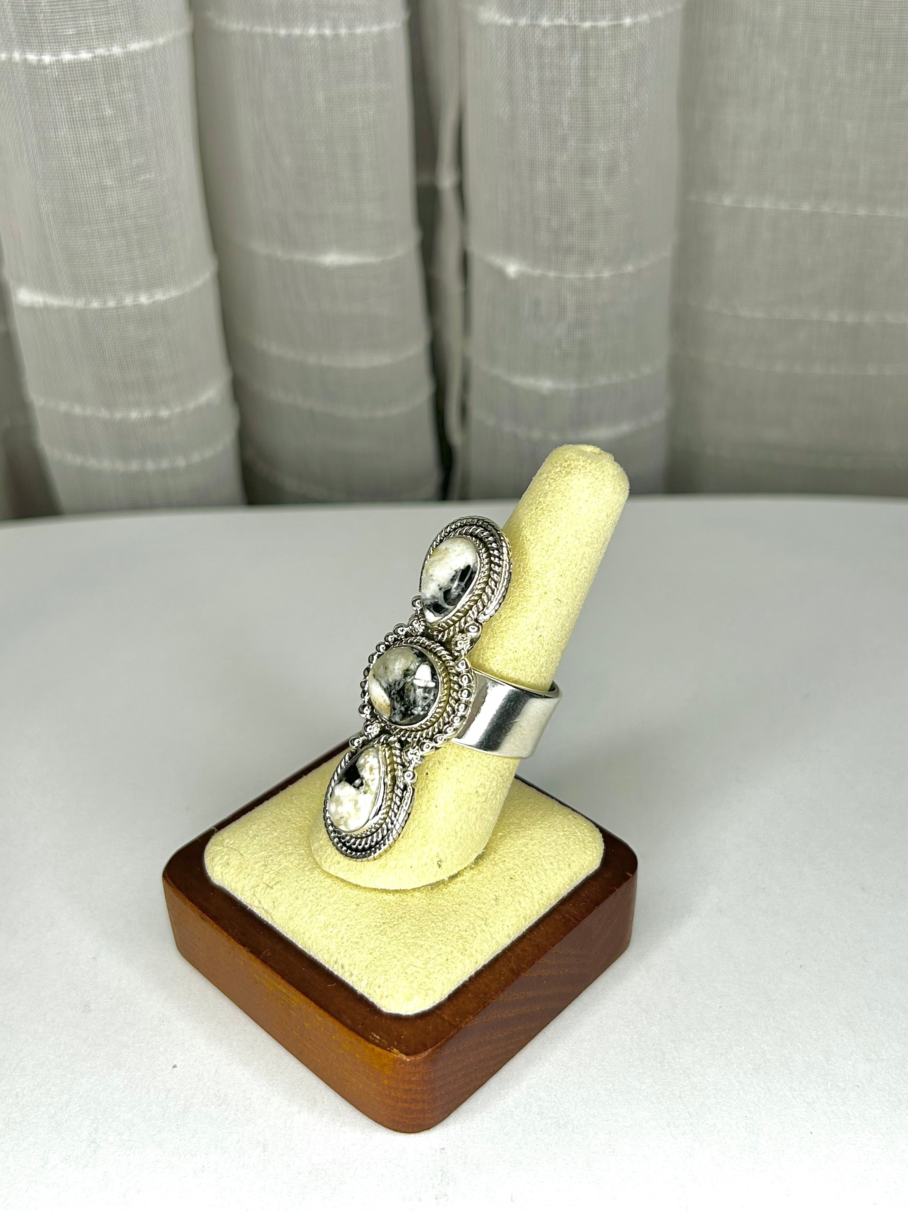 Southwest White Buffalo & Sterling Sliver Cluster Ring