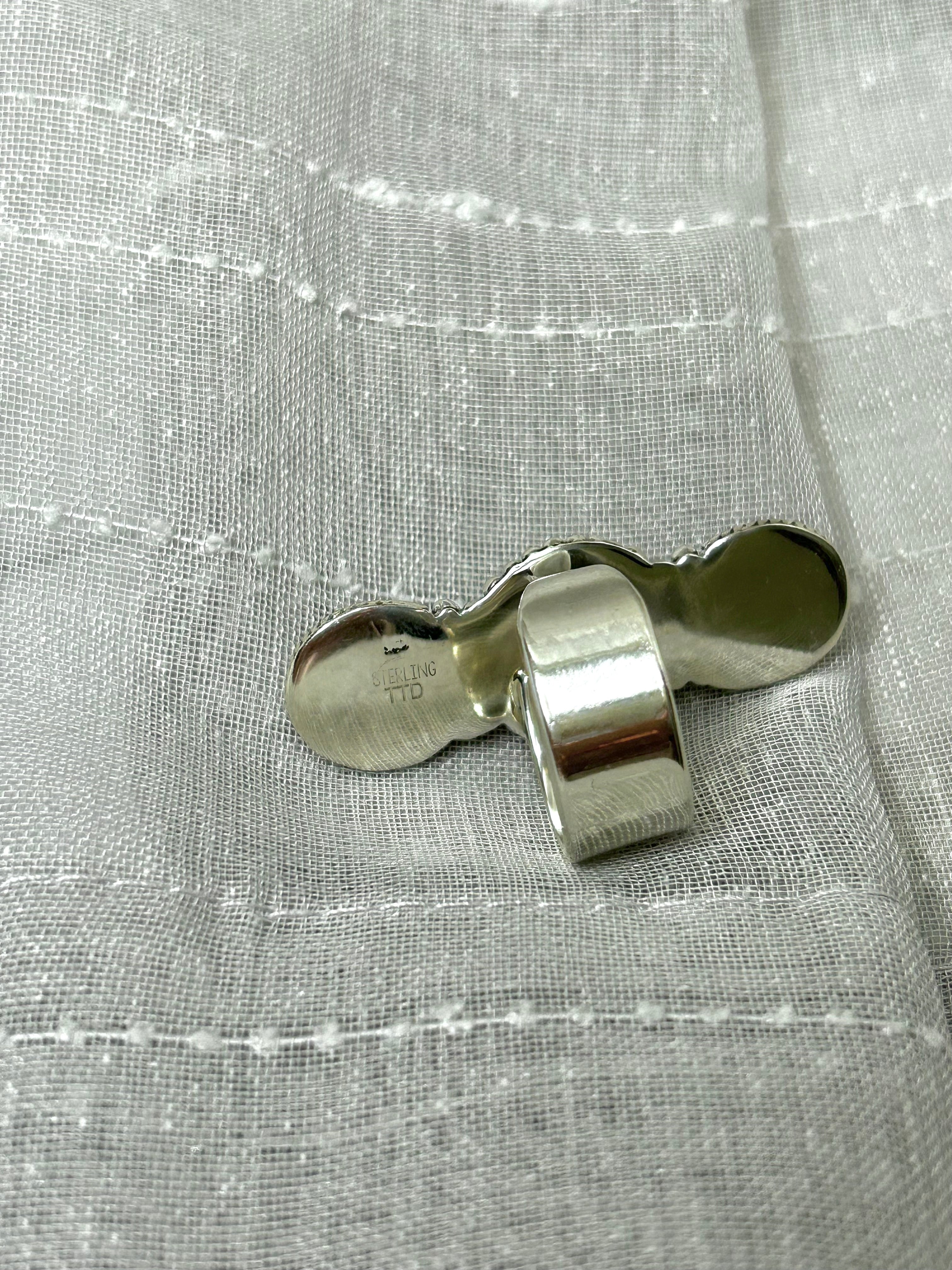 Southwest White Buffalo & Sterling Sliver Cluster Ring. It measures 2 inches long and 5/8 of an inch wide. Signed by the artist and stamped sterling silver. Stones may vary due to natural stones