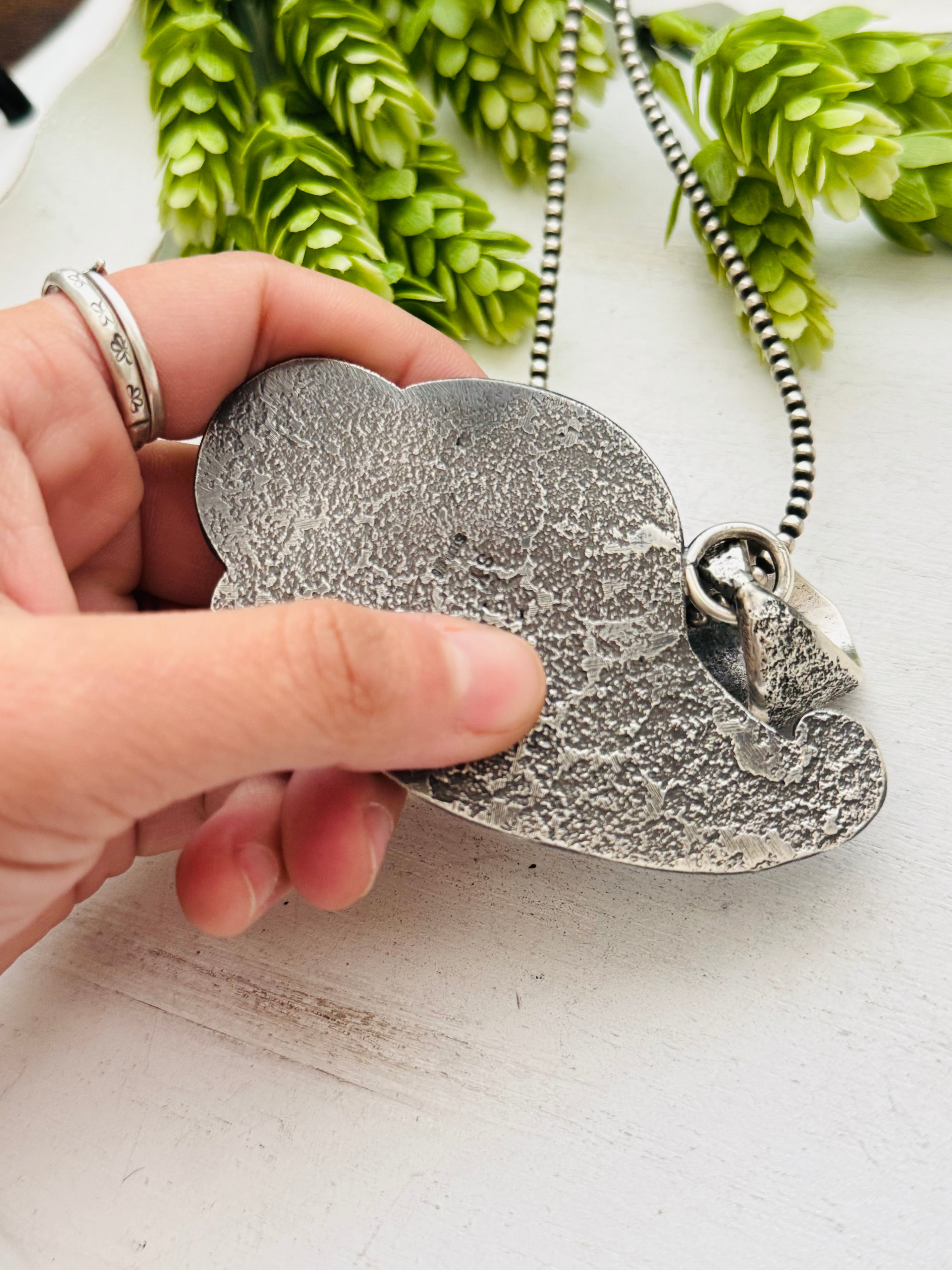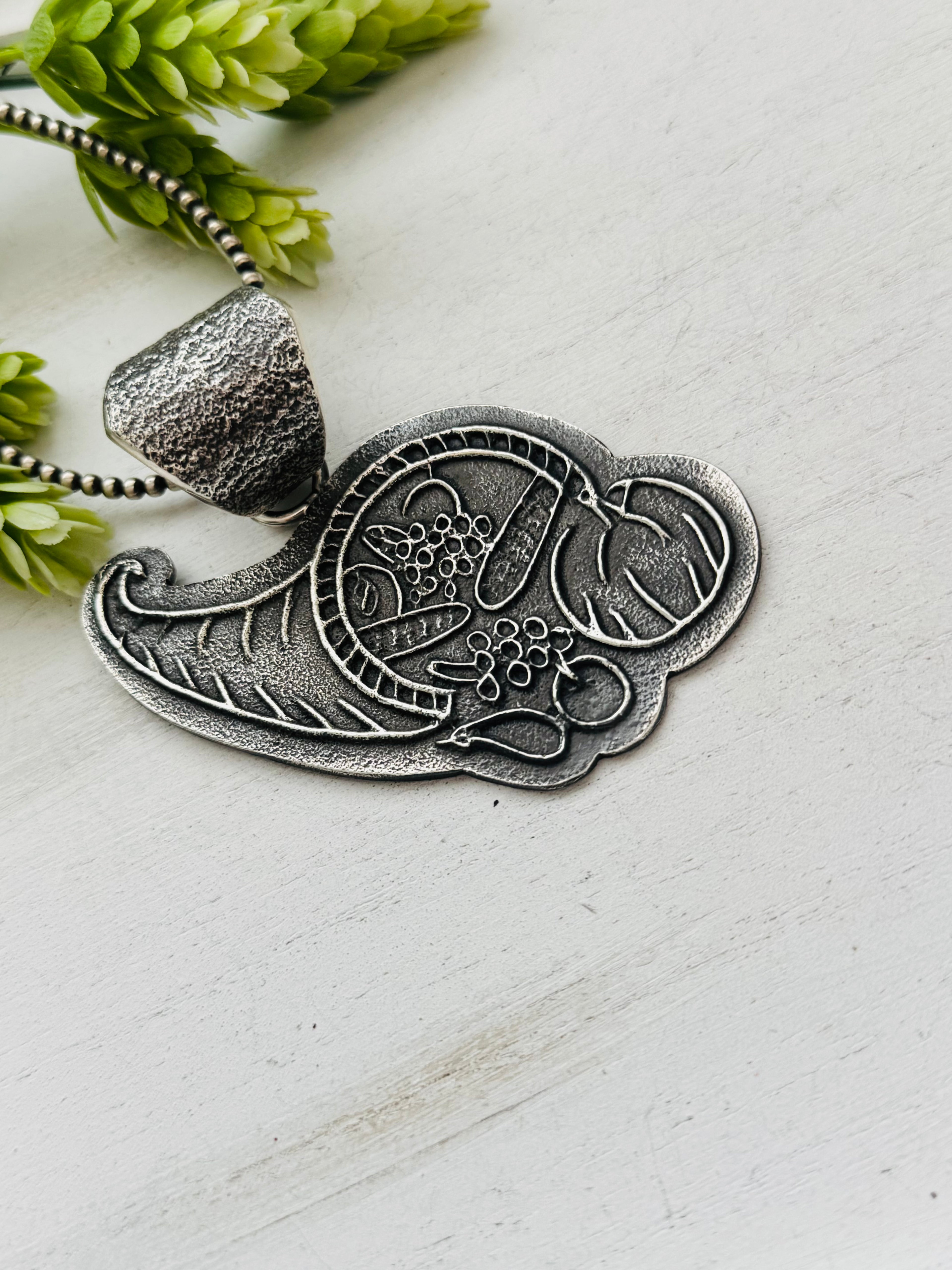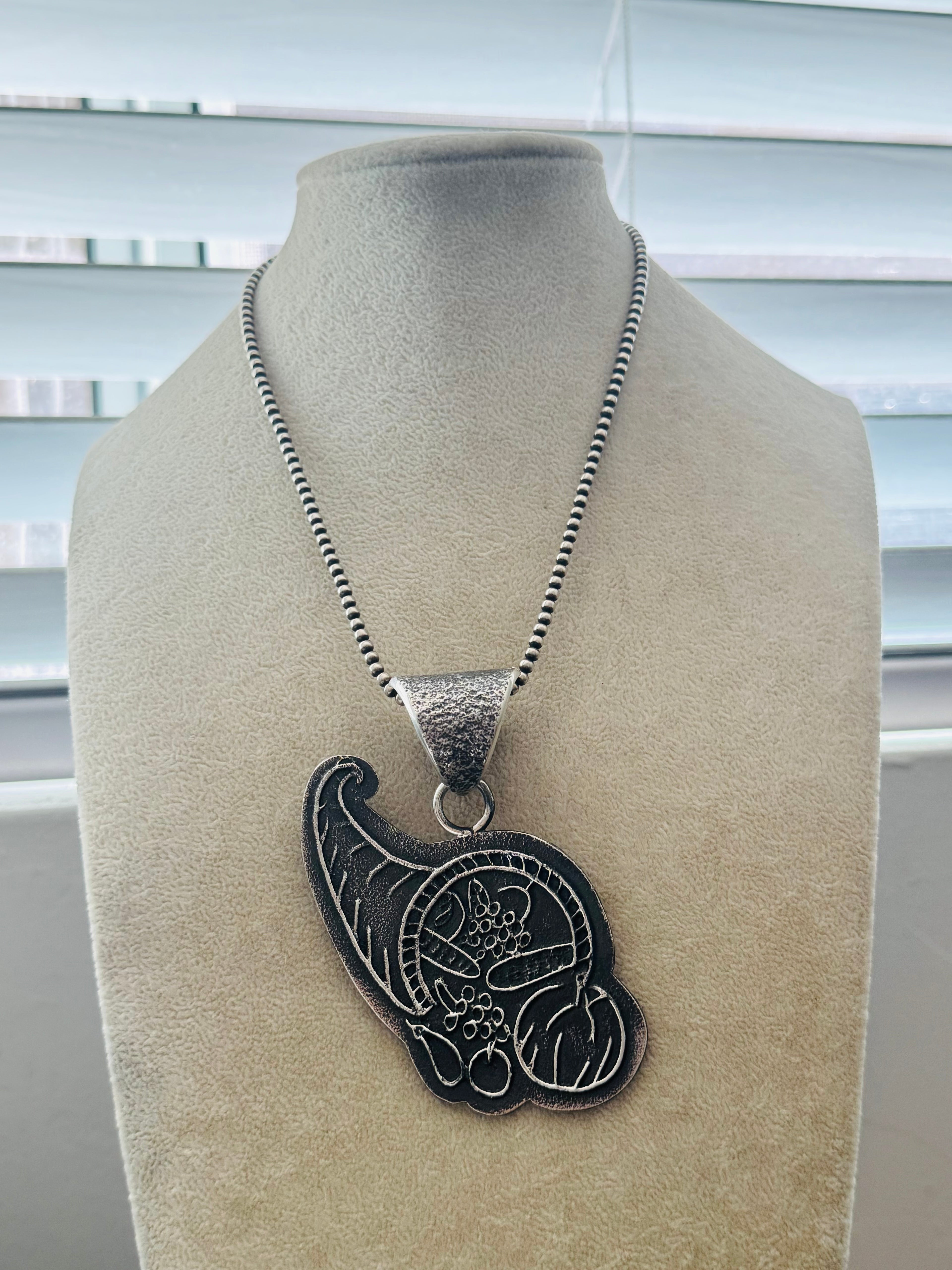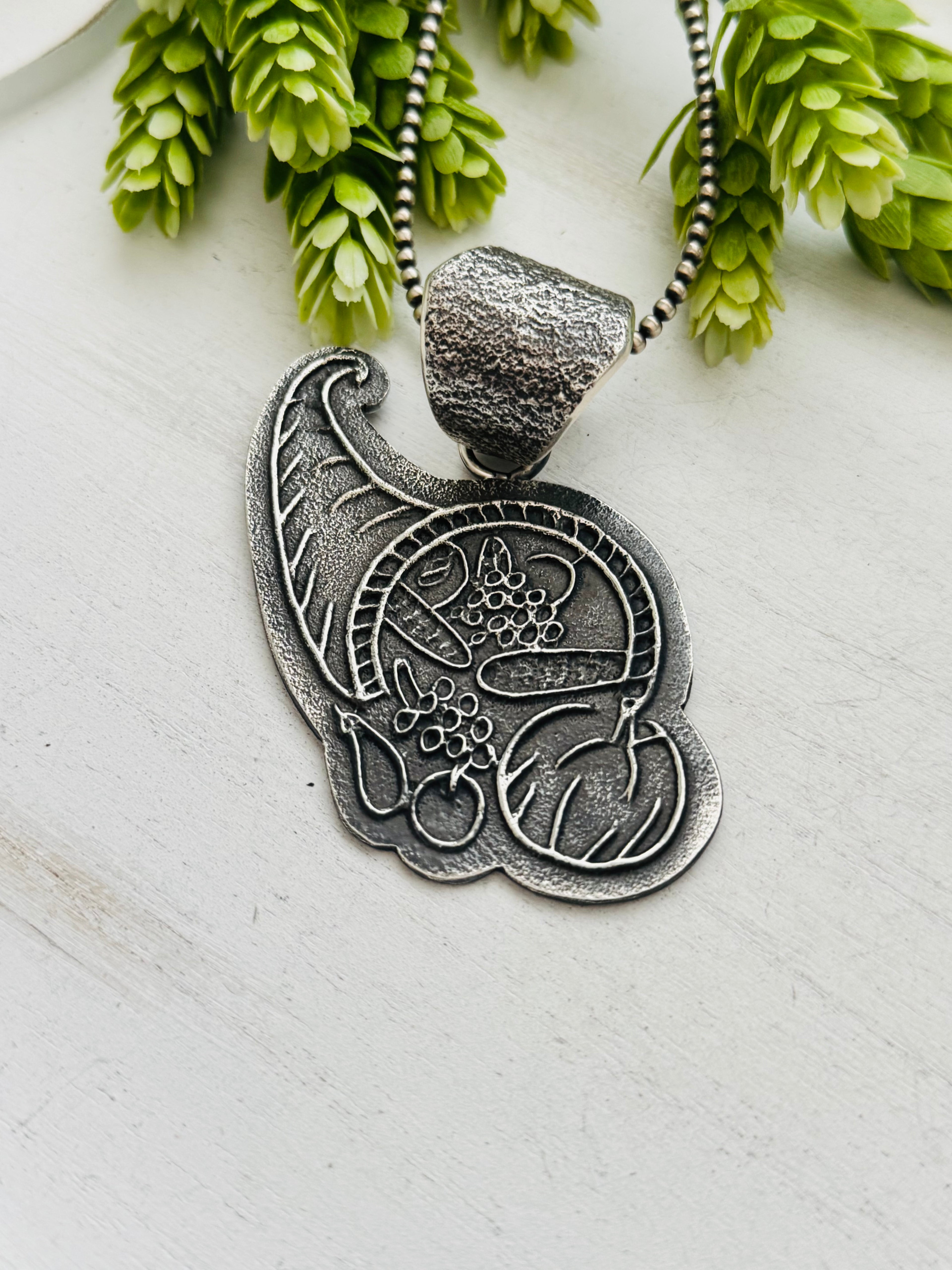 Stanford Yazzie Sterling Silver Tufa Cast Feast Basket Pendant. It measures just over 3 1/2 inches long and 3 3/4 inches wide. Pendant Only!! Signed by the artist and stamped sterling silver.