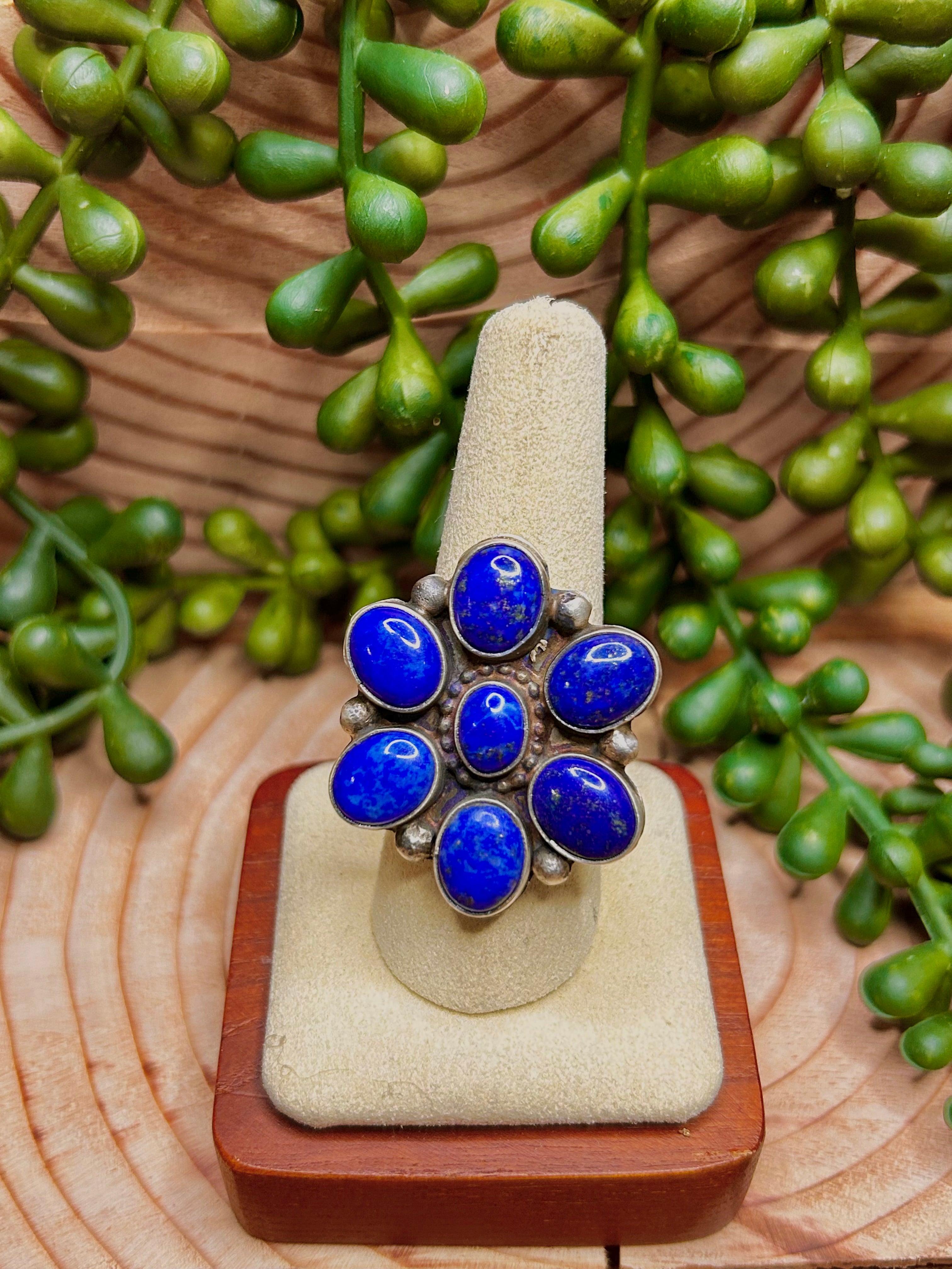 Navajo Made Lapis & Sterling Sliver Ring Size 8.75