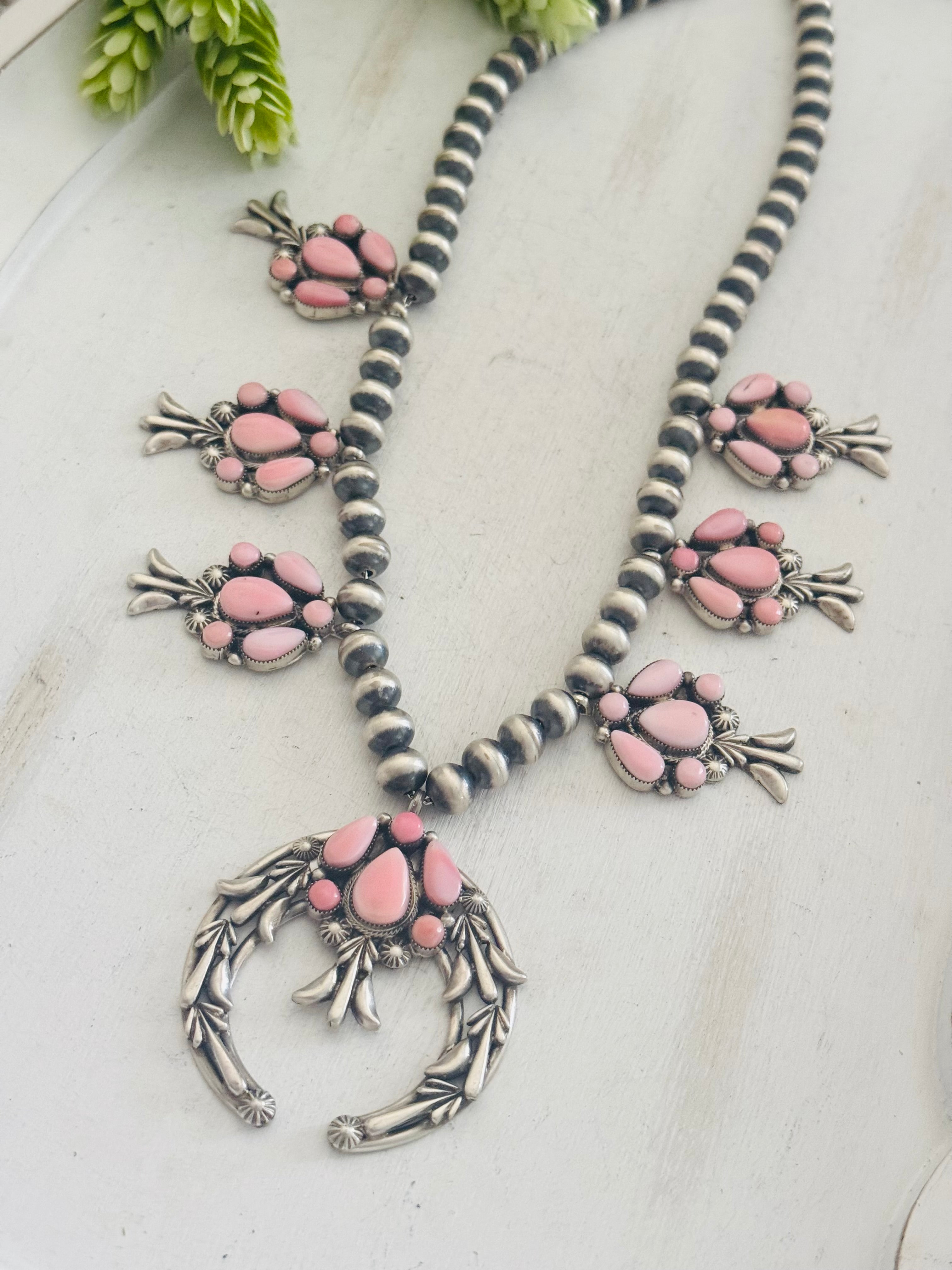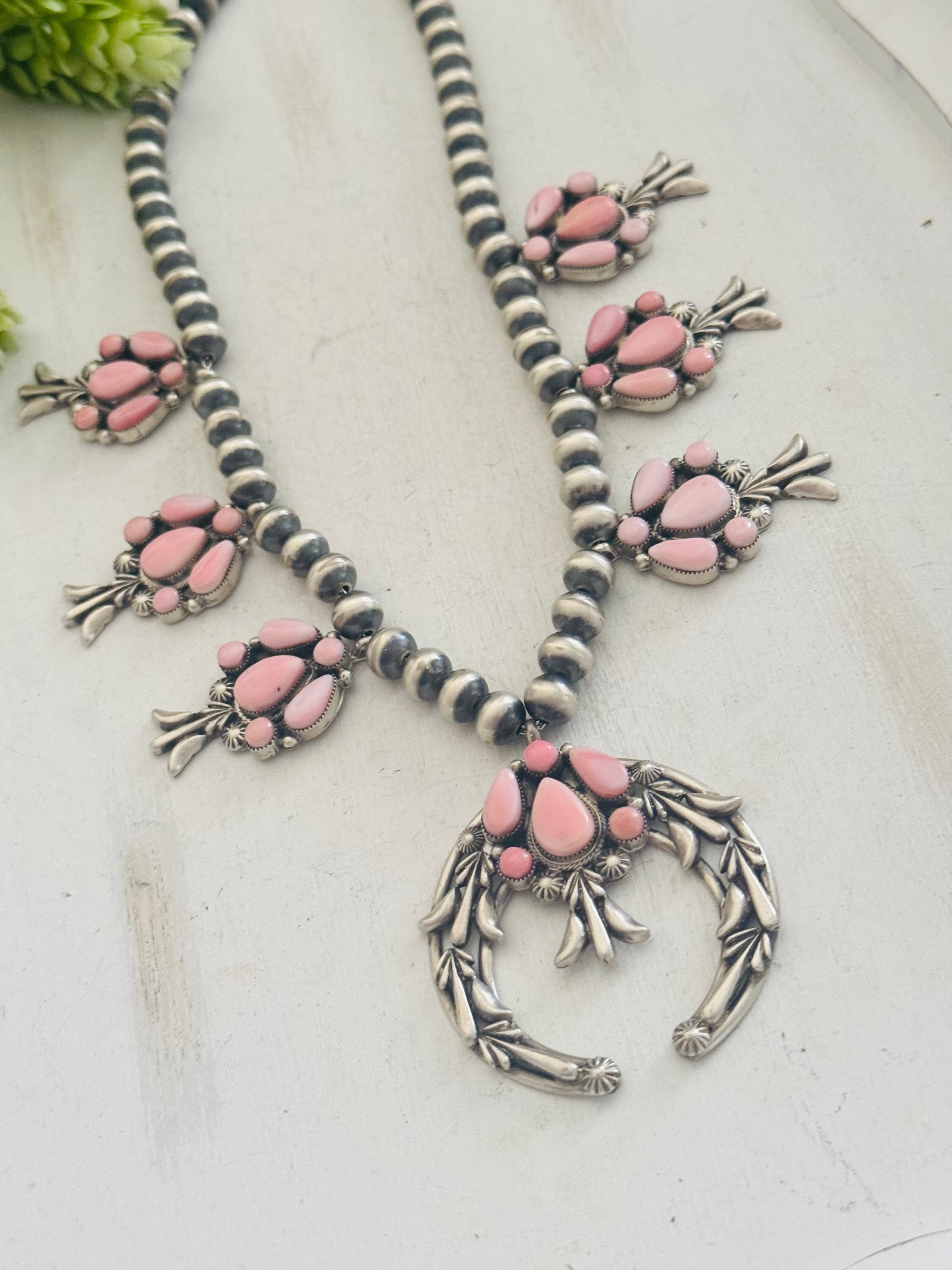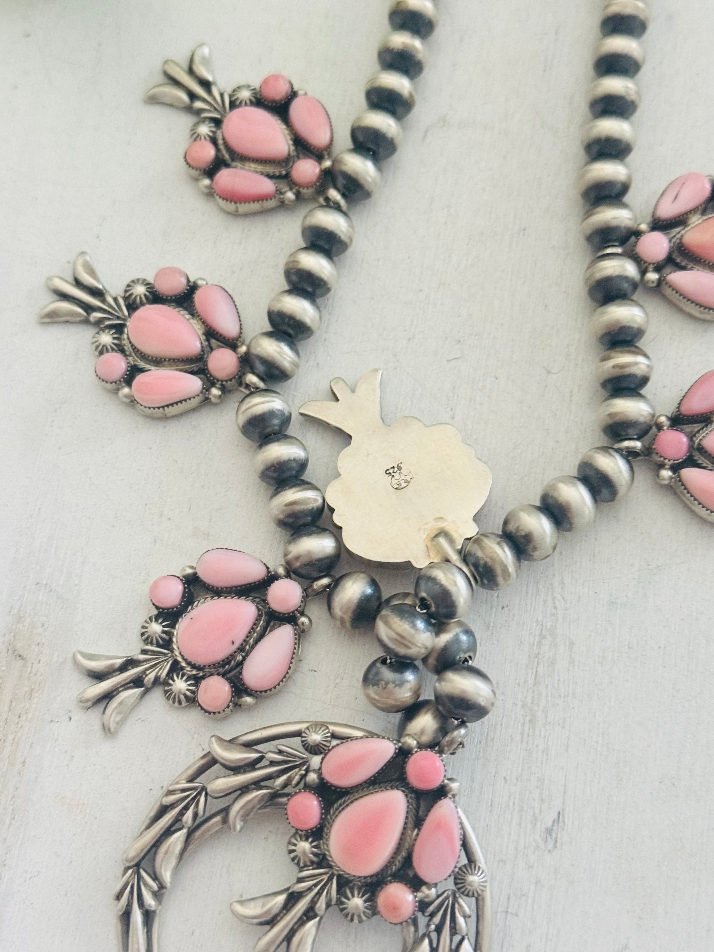 Bobby Platero Pink Conch & Sterling Silver Squash Blossom Necklace