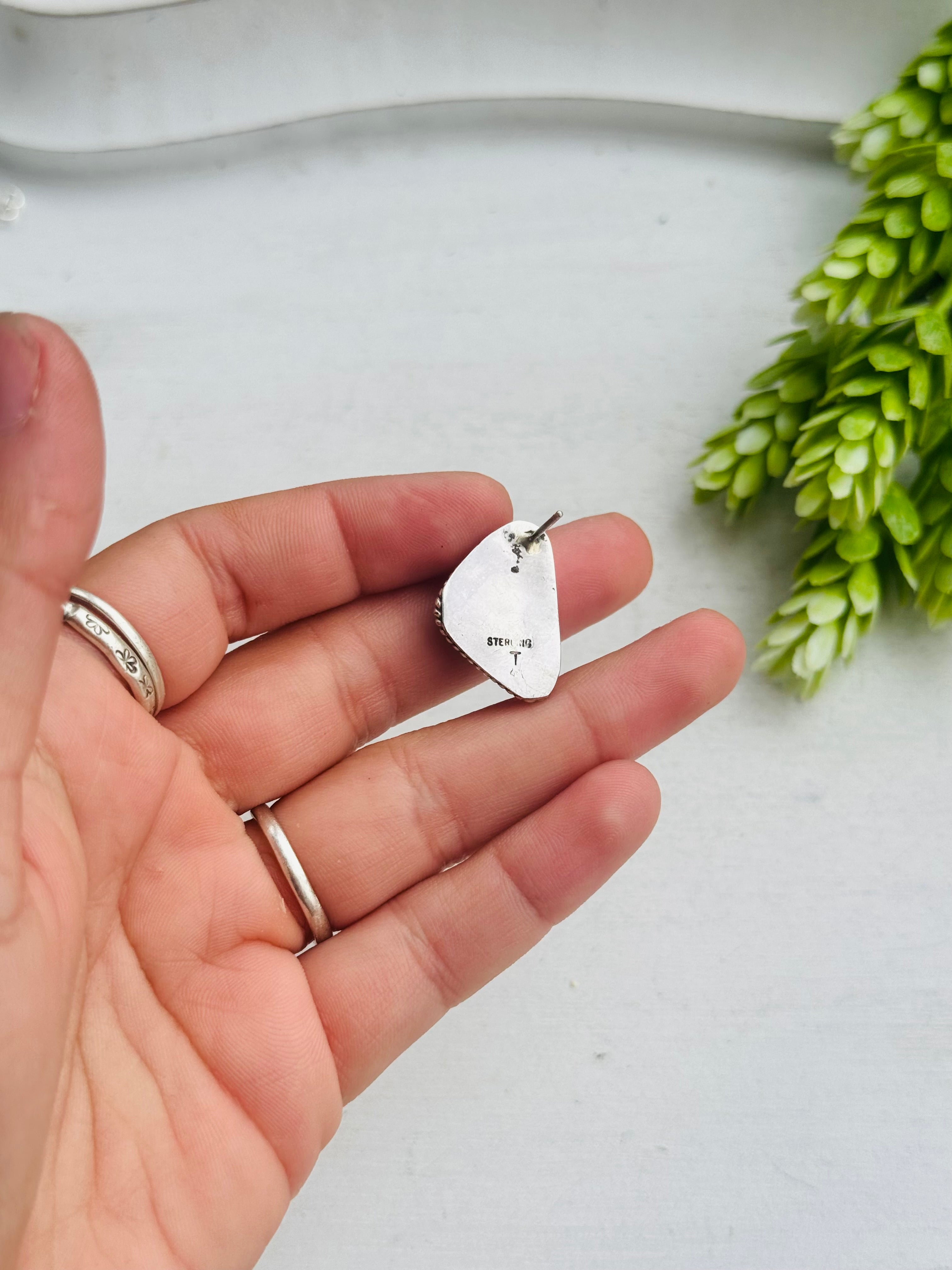 Theresa Smith Lapis & Sterling Silver Post Earrings. It measures 1 inch long and 5/8 of an inch wide. Signed and stamped.