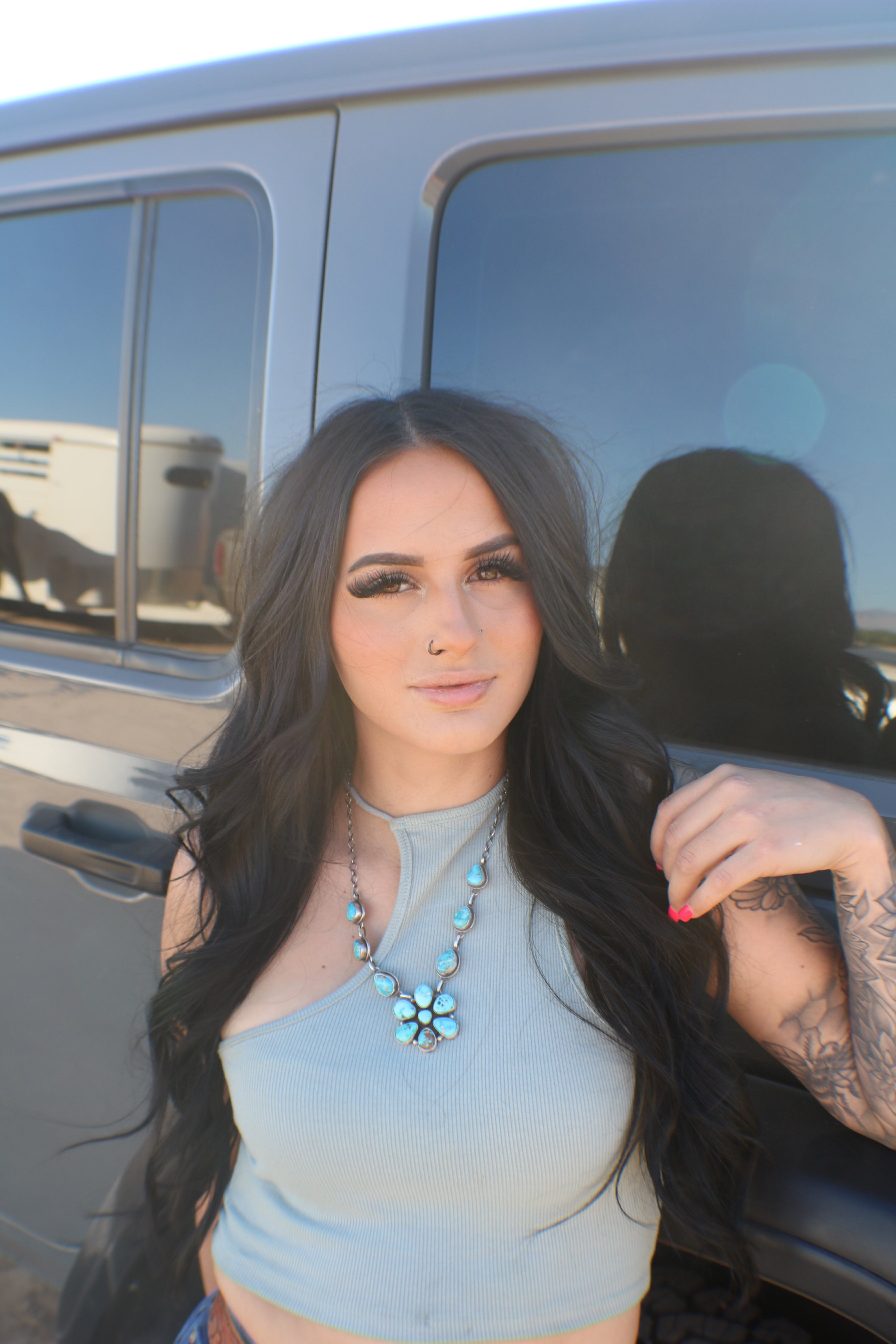 Darrin Livingston Valley Blue Turquoise & Sterling Silver Cluster Necklace Set